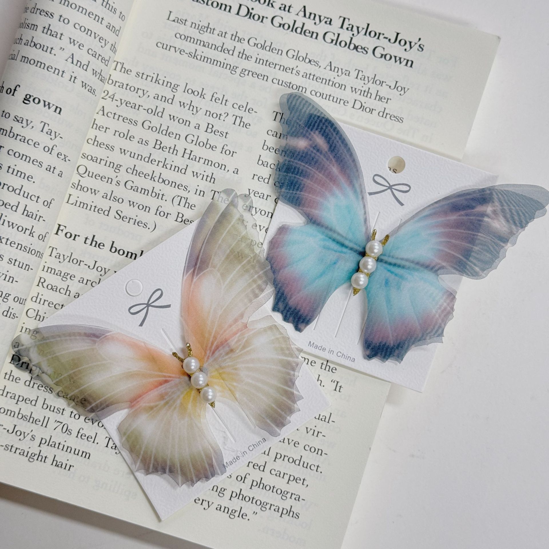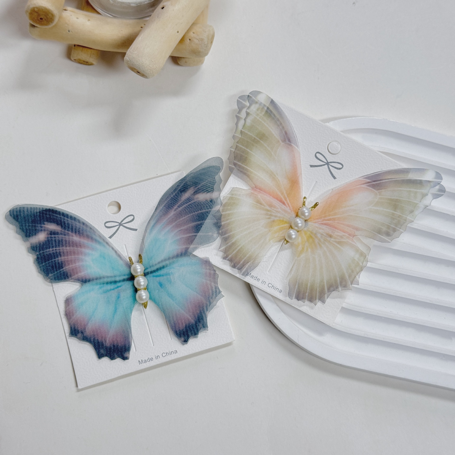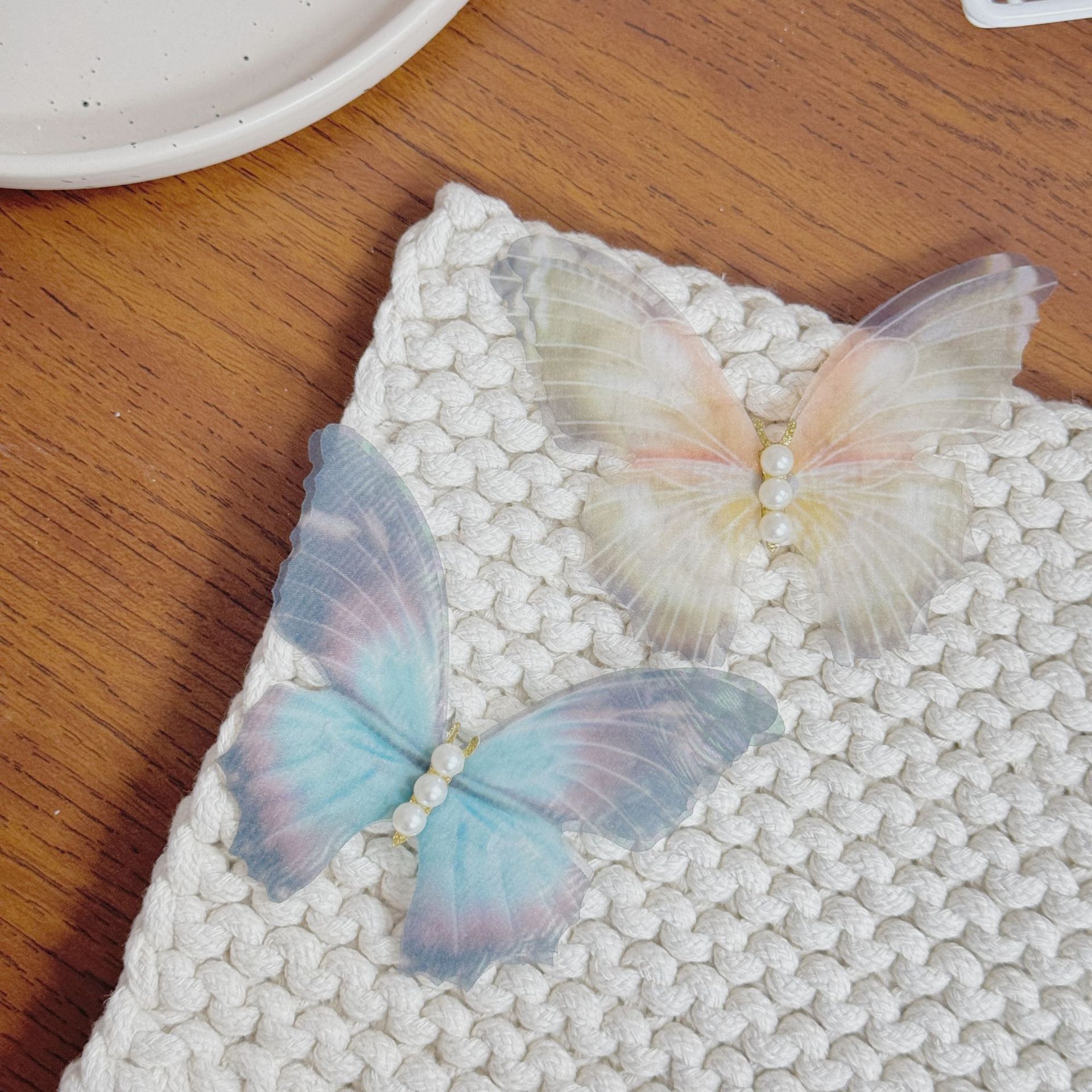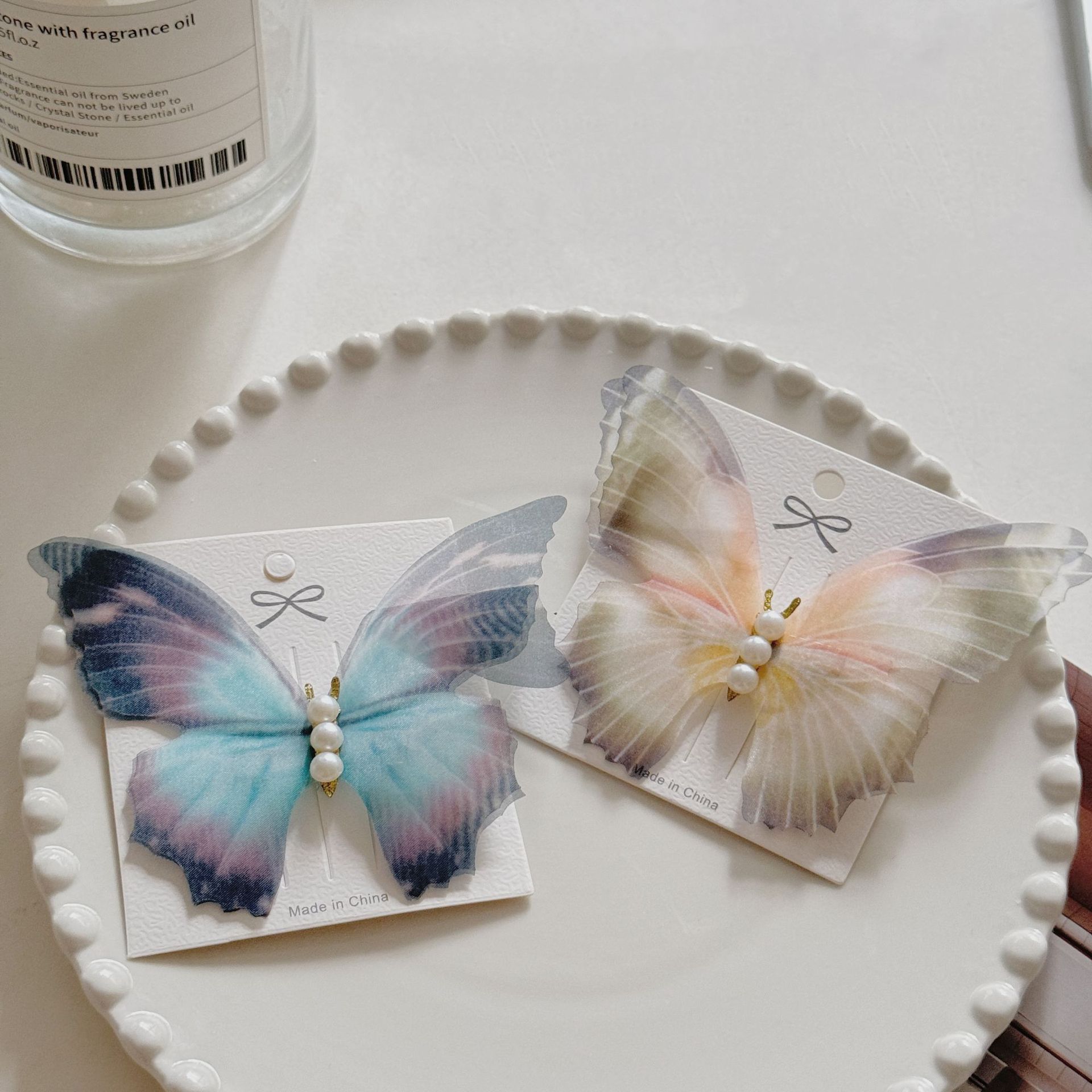 여름 새로운 슈퍼 페어리 더블 레이어 나비 툴레 헤어핀 빈티지 하이 엔드 사이드 클립 해변 사진 헤어핀 헤어 액세서리