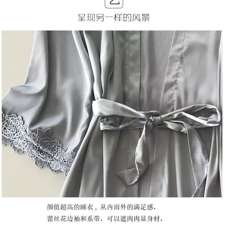 여성용 여름 아이스 실크 핫 잠옷, 성인용 봄/가을 긴팔 얇은 홈웨어 여성용 잠옷 5종 세트, 외부에서 착용 가능스토어 가기