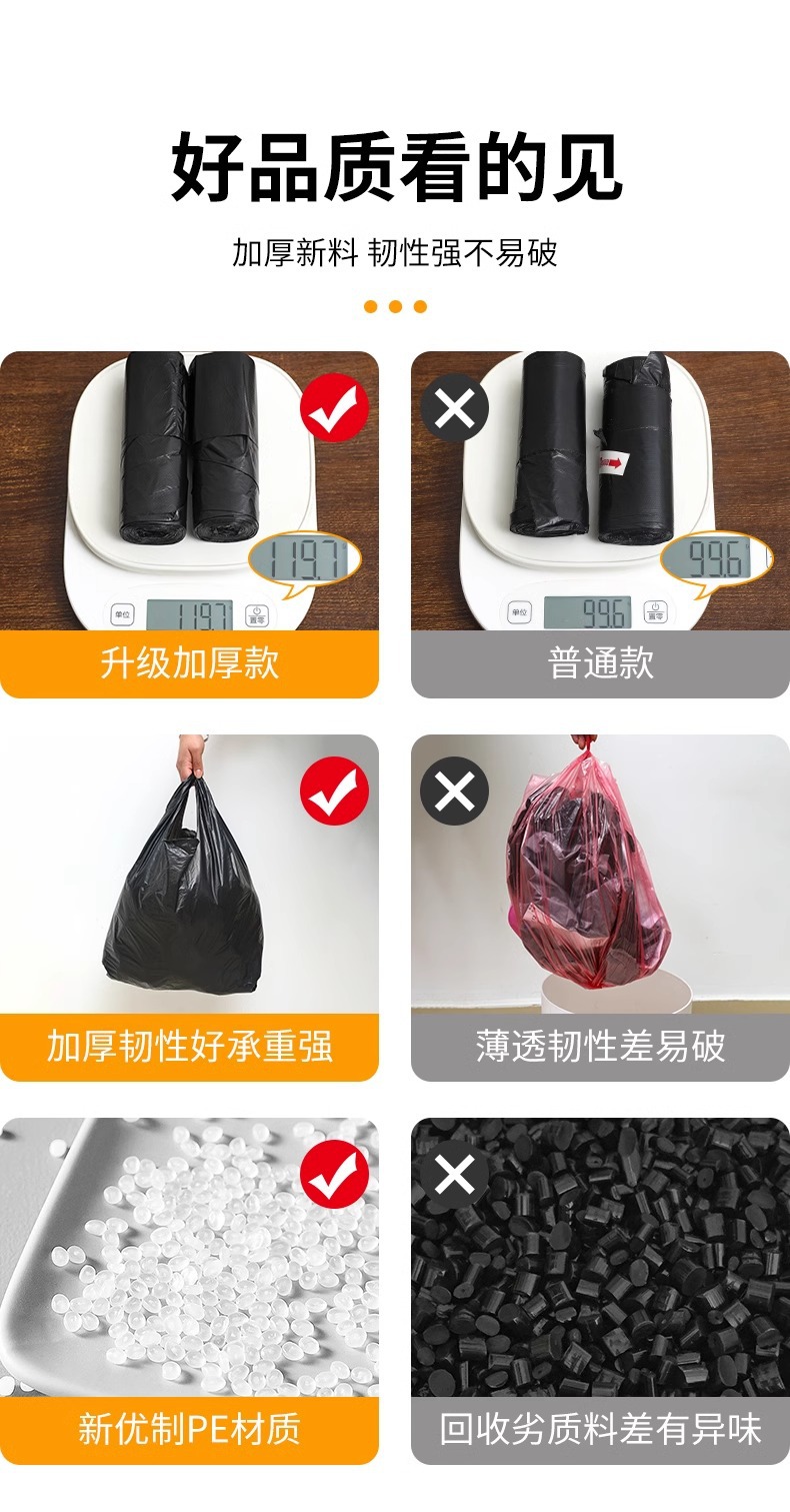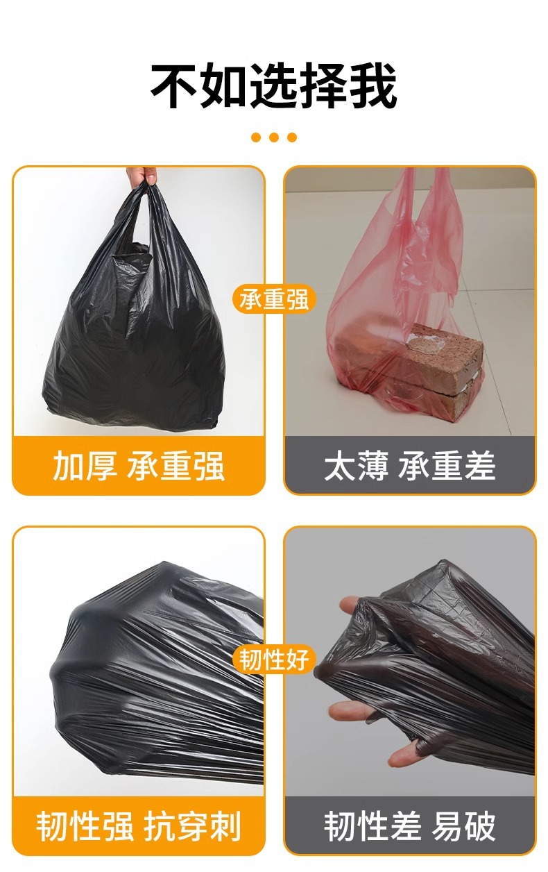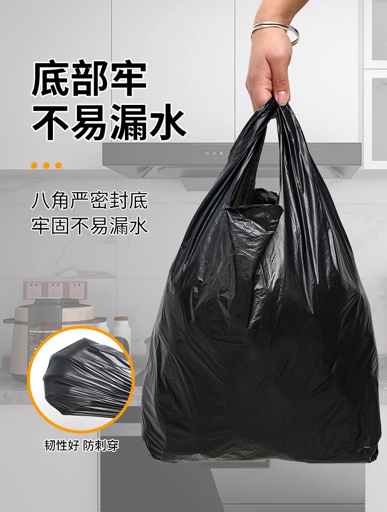 쓰레기 봉투 가정용 휴대용 두꺼운 대형 주방 양동이 검은 조끼 사무실 당기기 끈 비닐 봉지스토어 가기