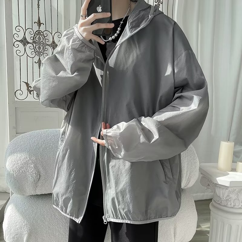 남자와 여자 커플을위한 단색 선 스크린 옷 2024 새로운 패션 브랜드 플러스 사이즈 느슨한 경량 후드 자켓 탑