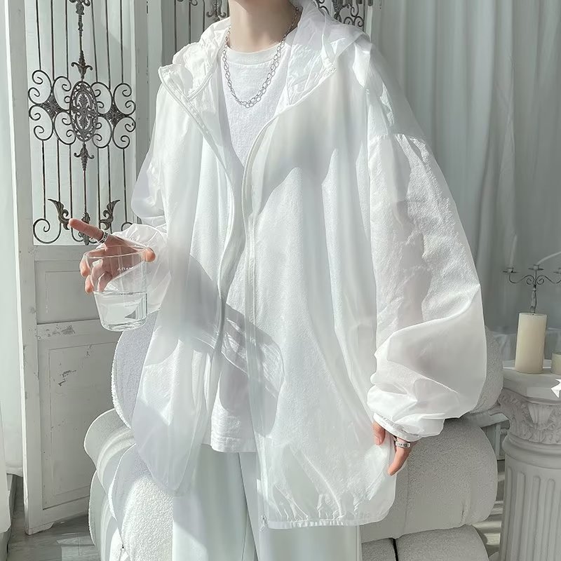 남자와 여자 커플을위한 단색 선 스크린 옷 2024 새로운 패션 브랜드 플러스 사이즈 느슨한 경량 후드 자켓 탑스토어 가기