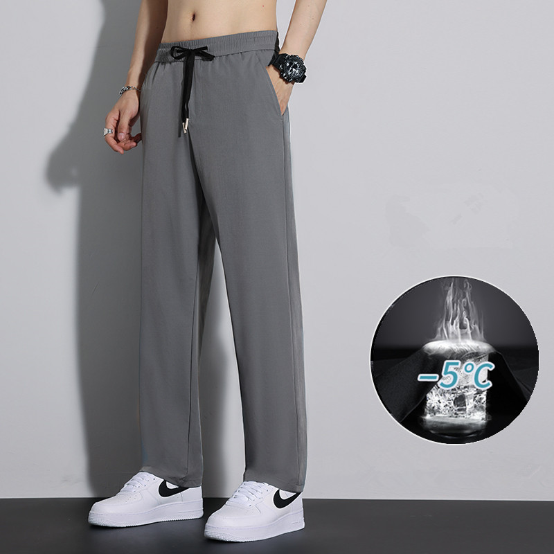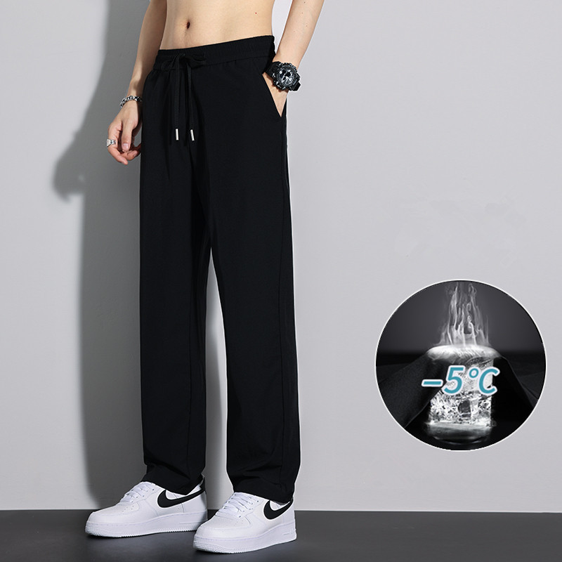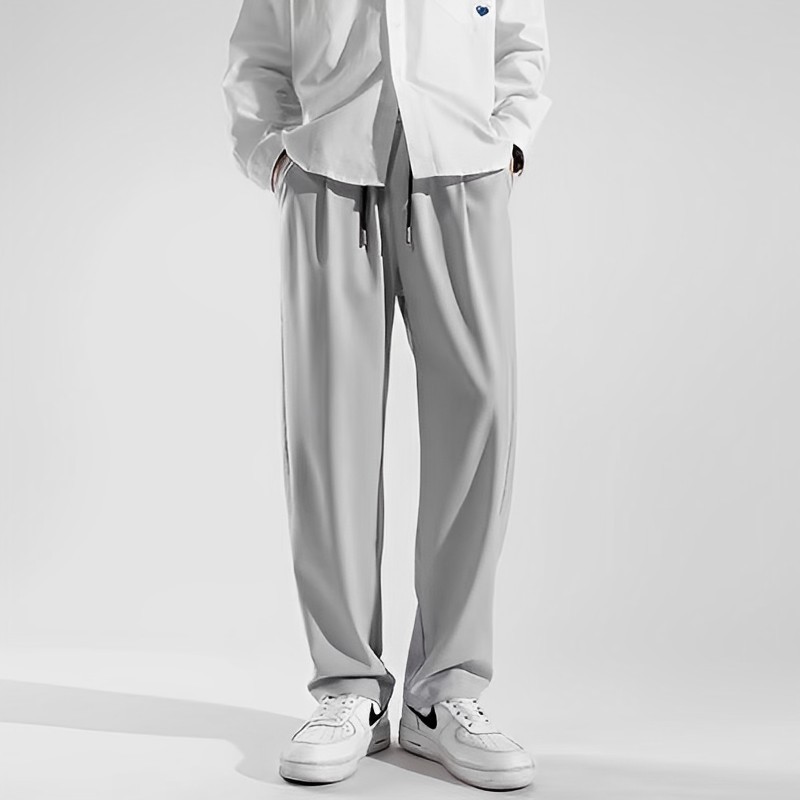 걸레 팬츠 아이스 실크 와이드 레그 팬츠 세련된 페이프 팬츠 남성용 여름 캐주얼 팬츠 실키 루즈 남성용 스트레이트 팬츠스토어 가기