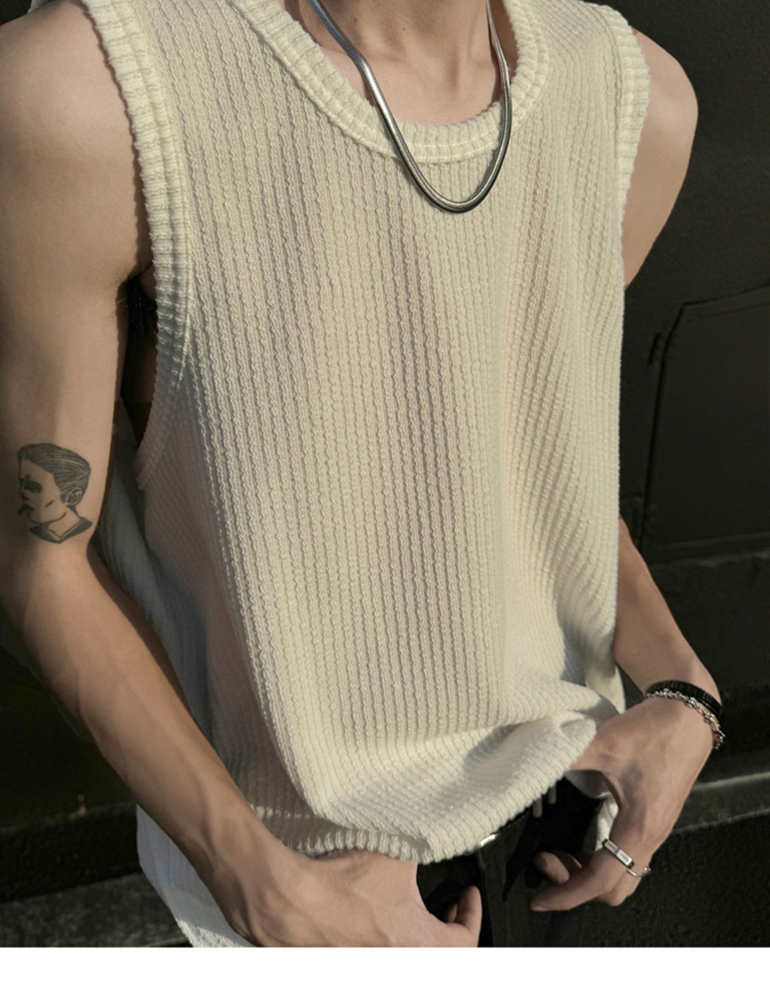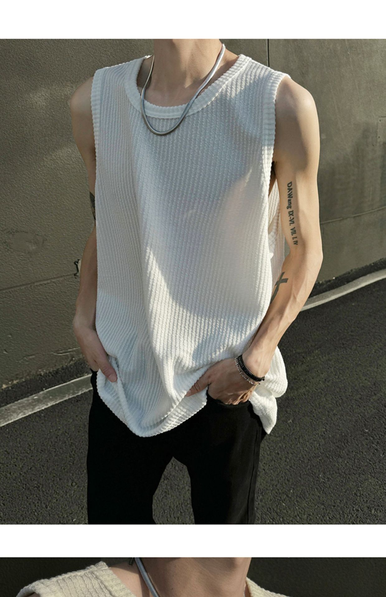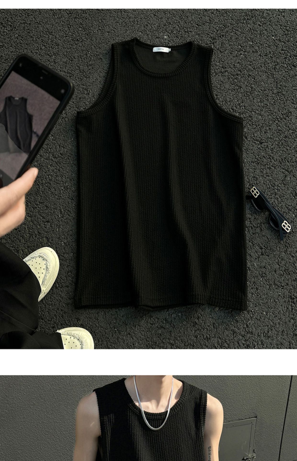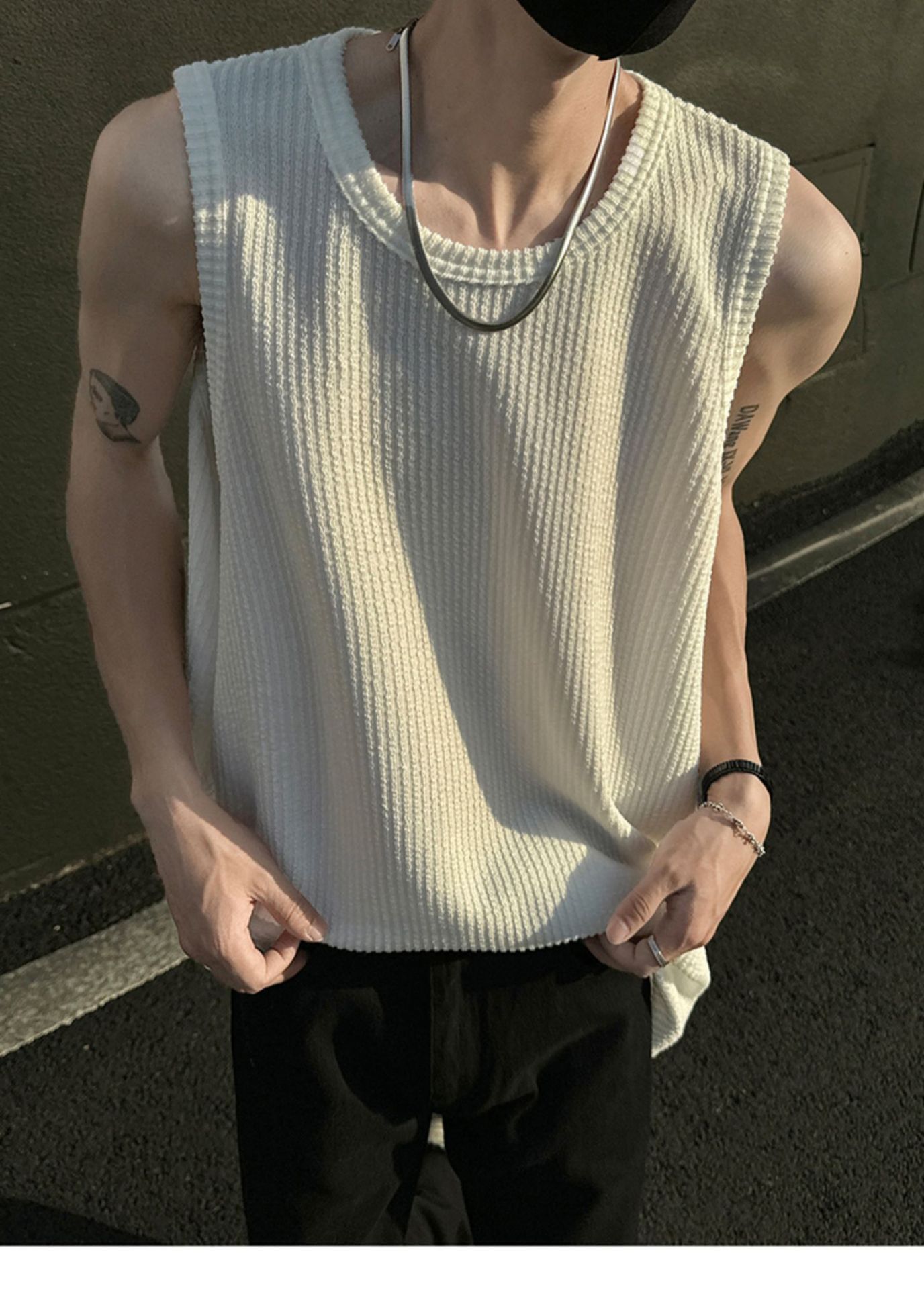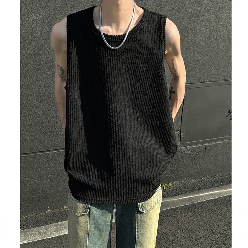 여름 트렌드 루즈한 스포츠 및 피트니스 슬리브리스 남성용 질감 있는 아이스 실크 조끼, 베이스 레이어로 착용 가능한 민소매 티셔츠