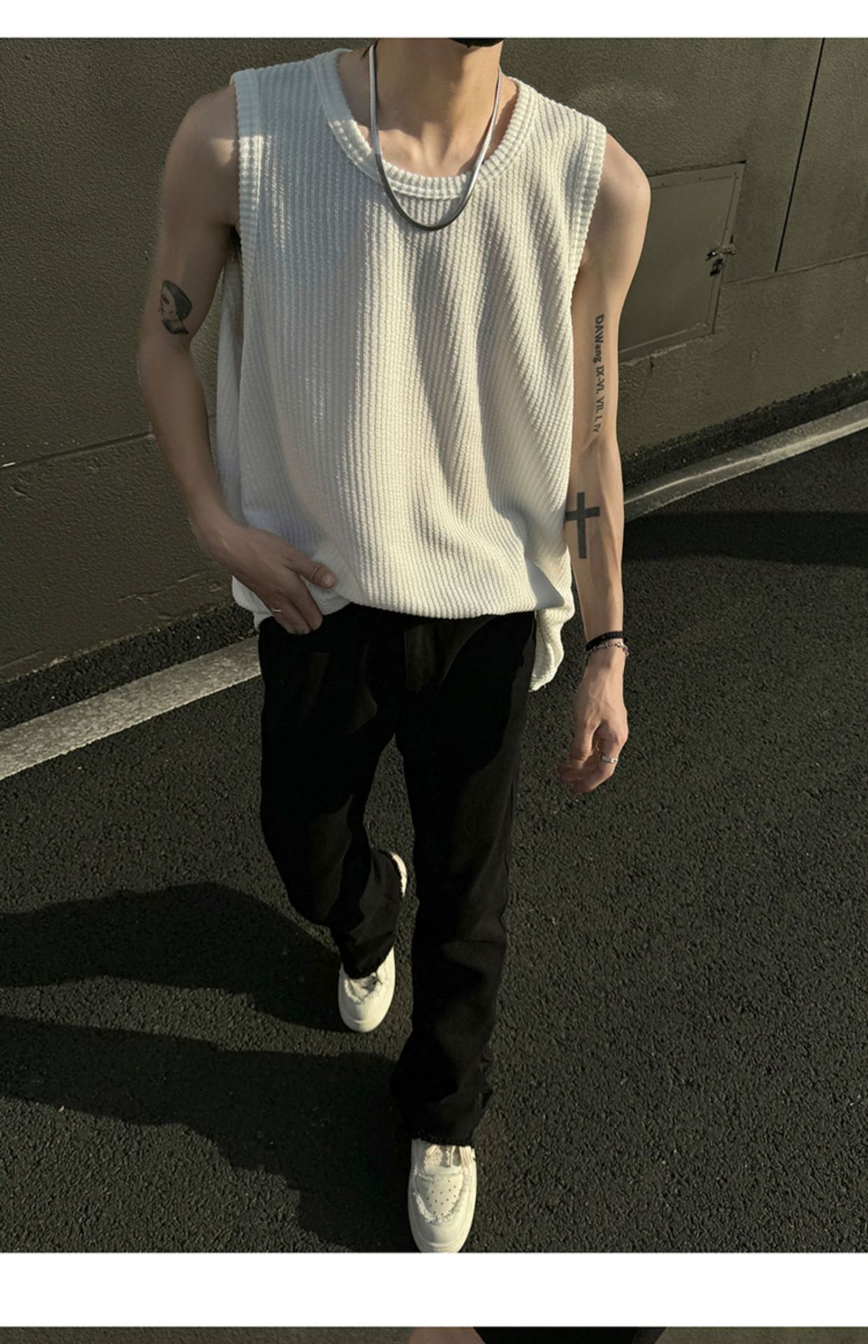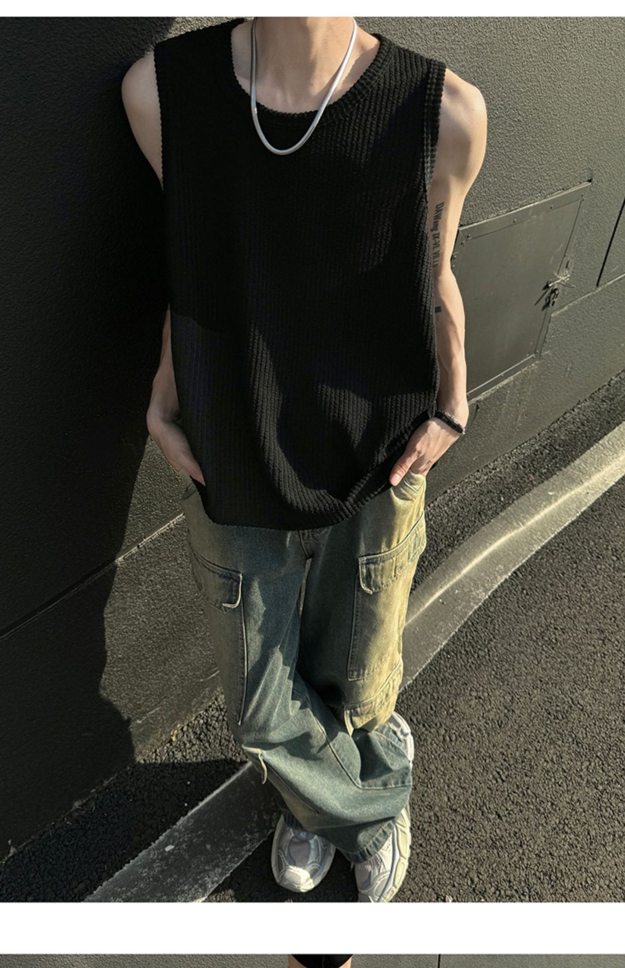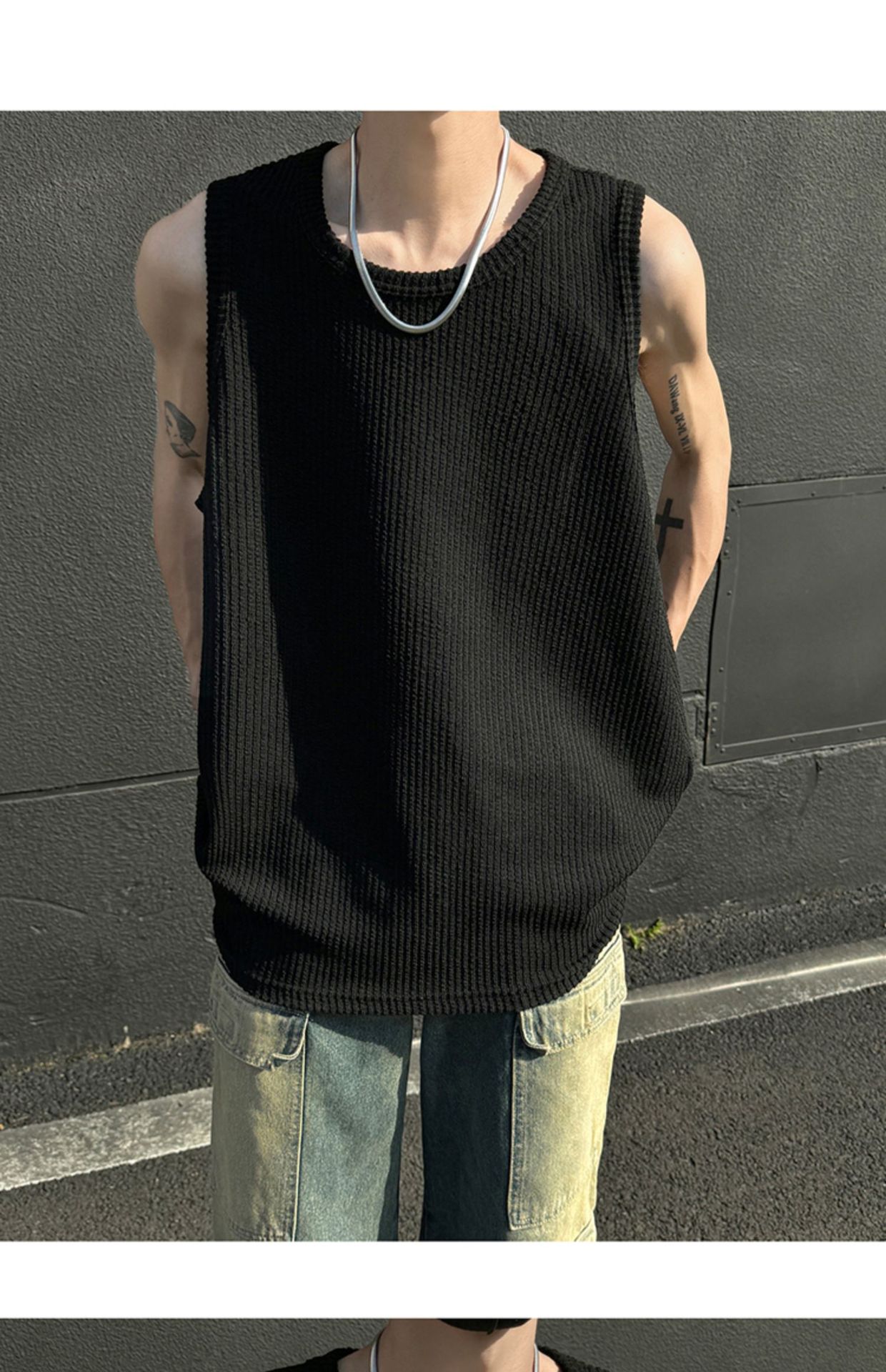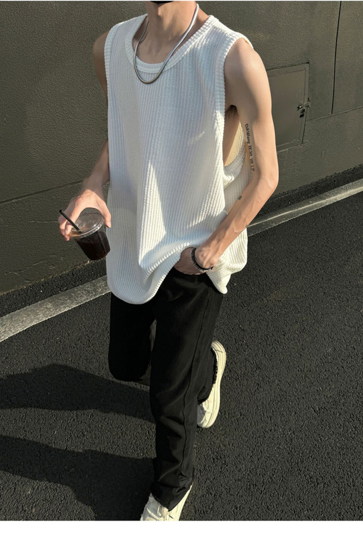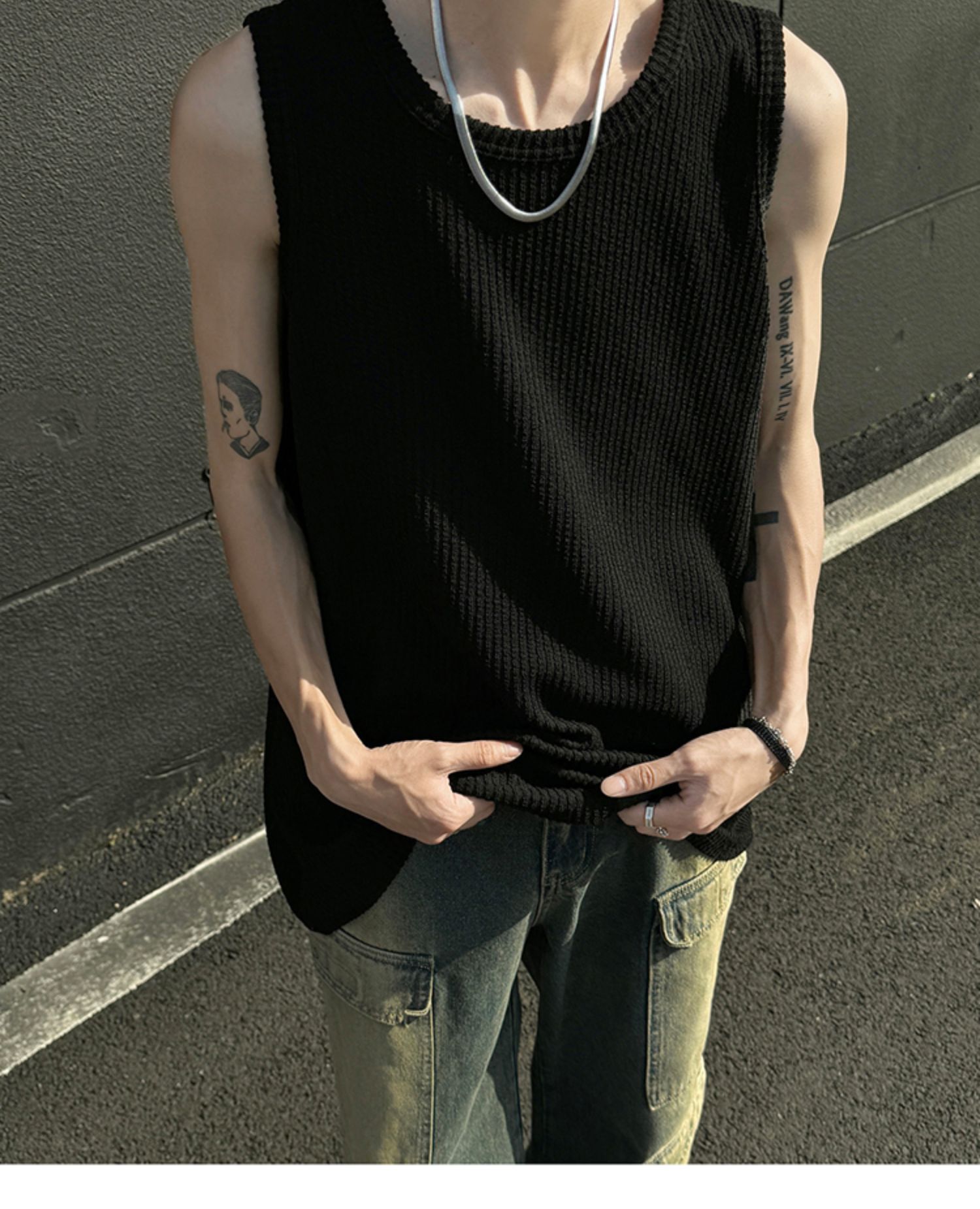 여름 트렌드 루즈한 스포츠 및 피트니스 슬리브리스 남성용 질감 있는 아이스 실크 조끼, 베이스 레이어로 착용 가능한 민소매 티셔츠