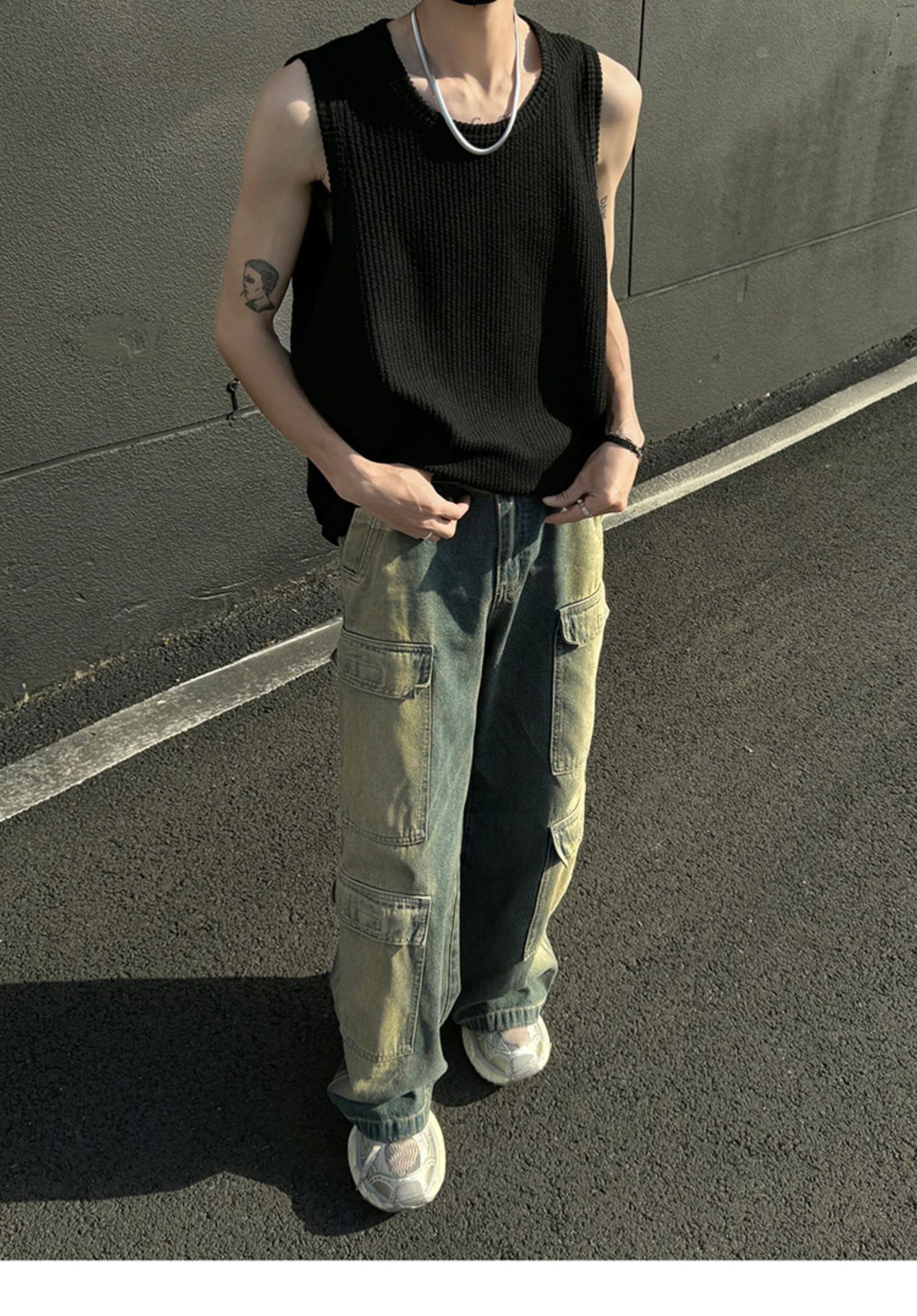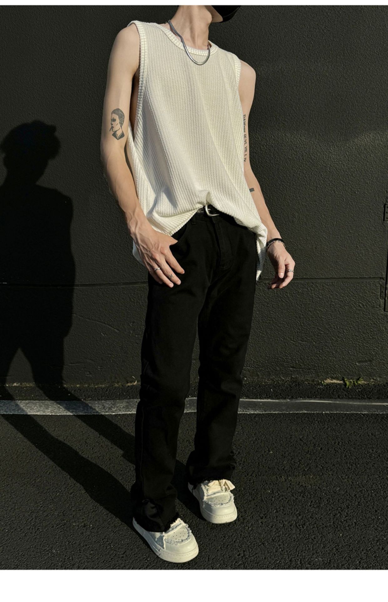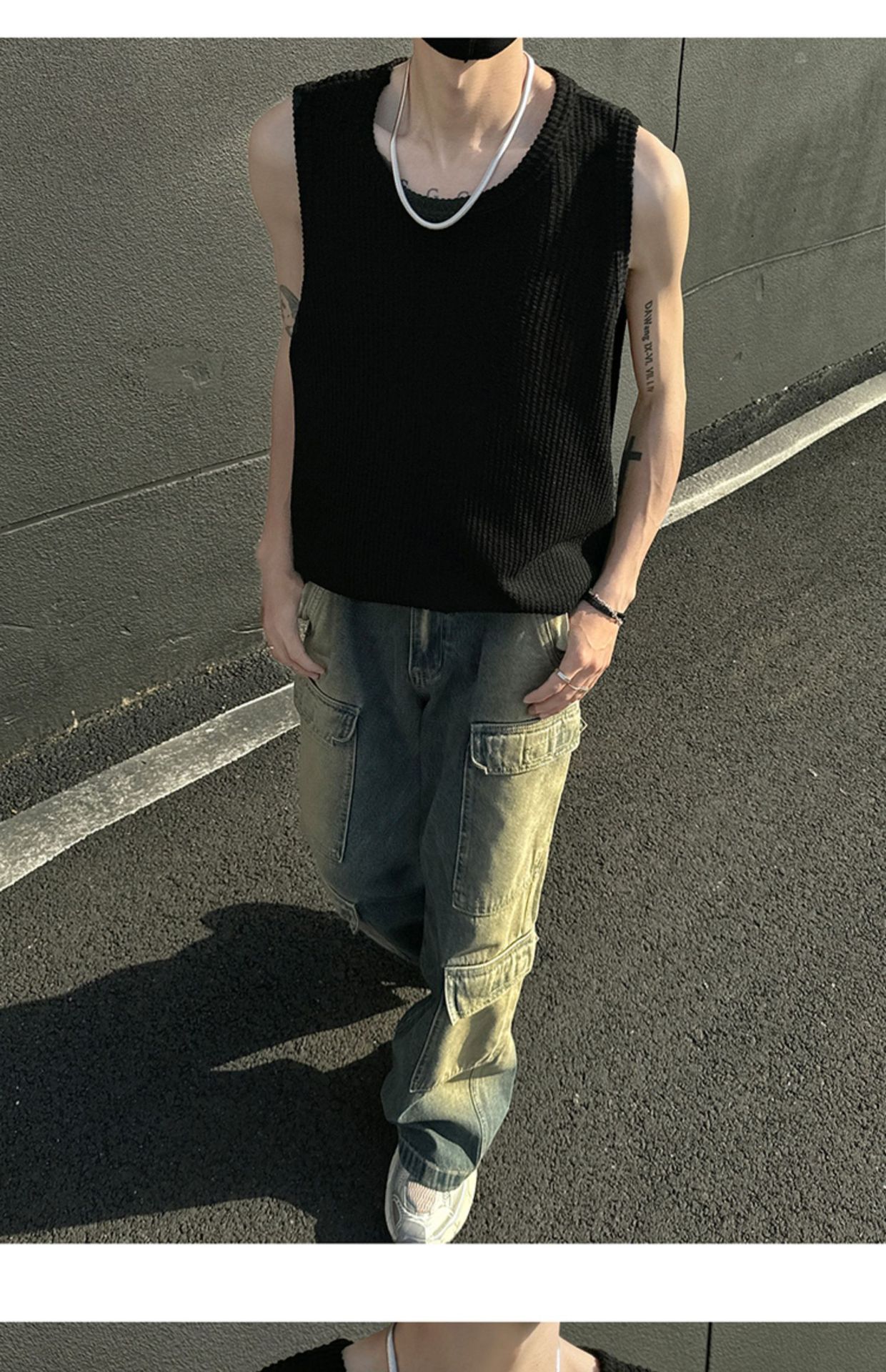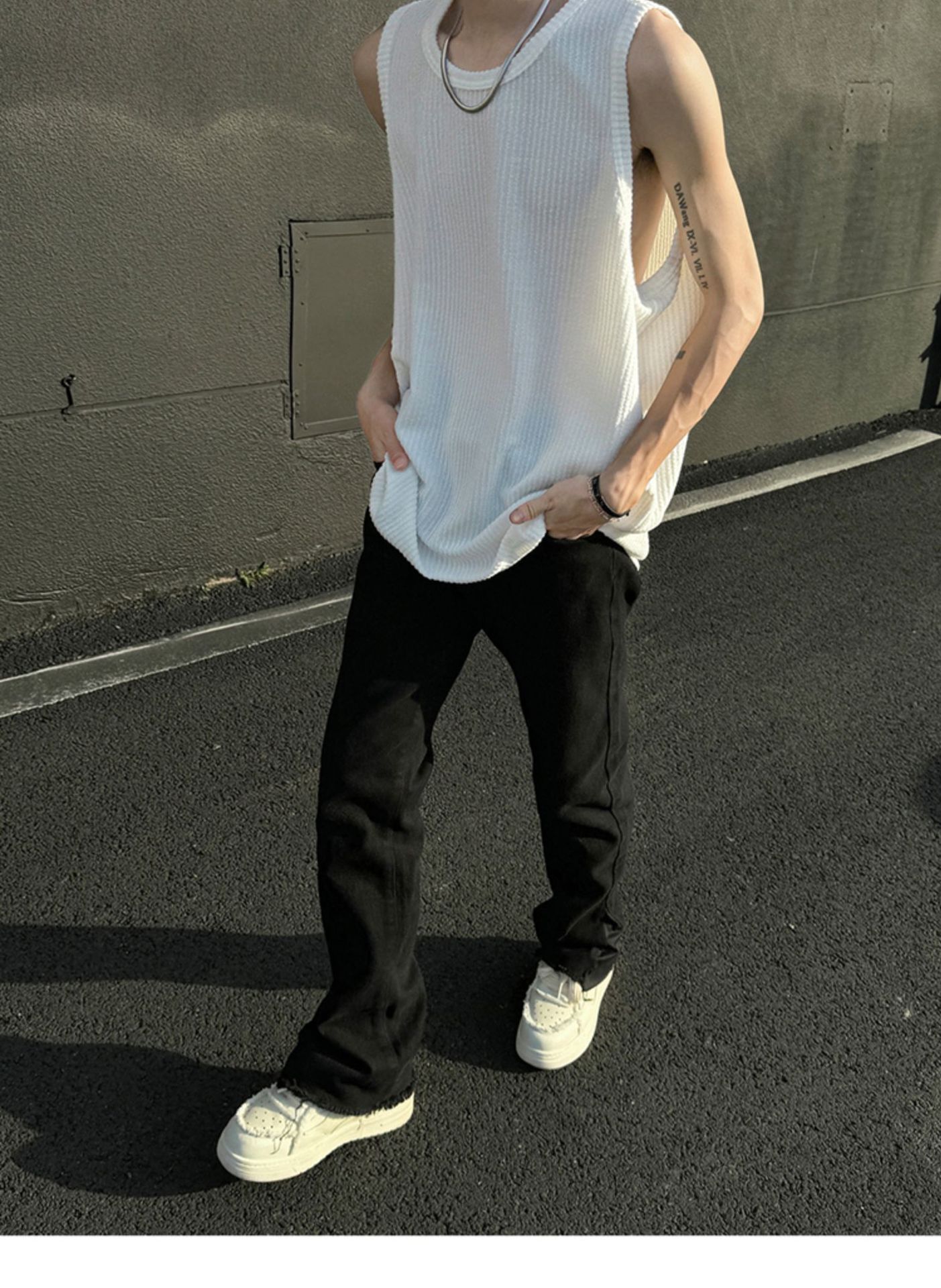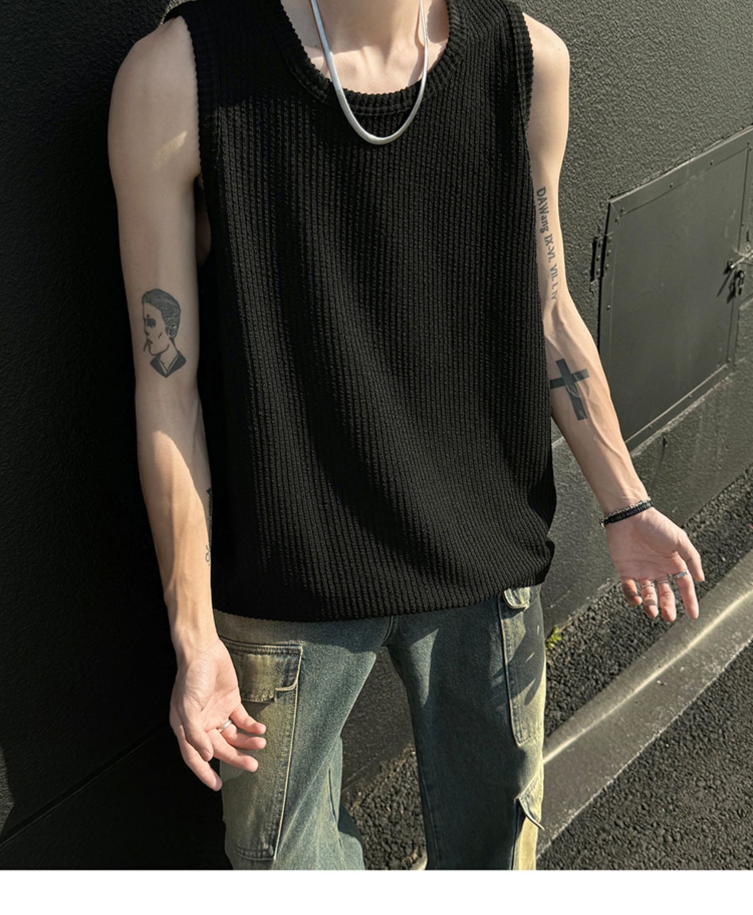 여름 트렌드 루즈한 스포츠 및 피트니스 슬리브리스 남성용 질감 있는 아이스 실크 조끼, 베이스 레이어로 착용 가능한 민소매 티셔츠