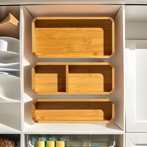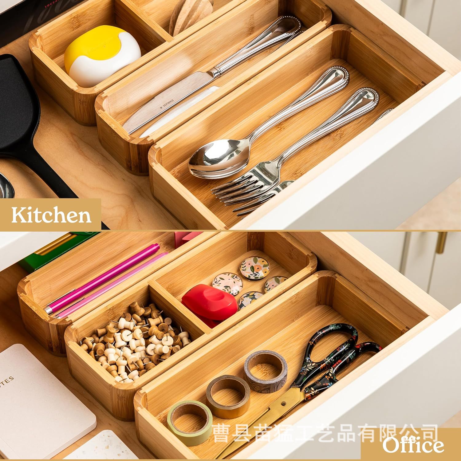 대나무 주방 서랍 저장 상자 세트 다목적 저장 상자 주방 식기 저장 상자 가정용 서랍 트레이