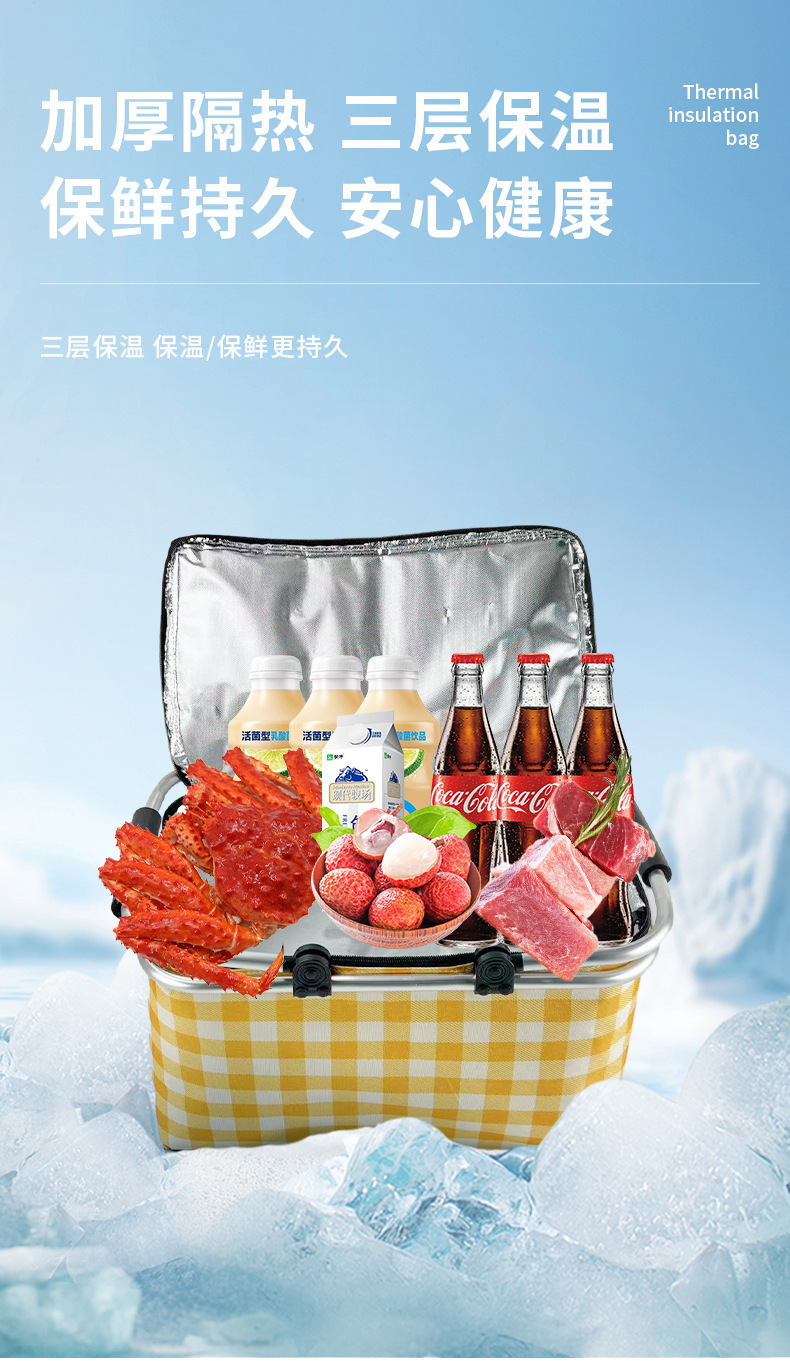 대용량 피크닉 바구니, 휴대용 접이식 손잡이 바구니, 보온 박스, 야외 보냉 패스트푸드 쇼핑 바구니 도매