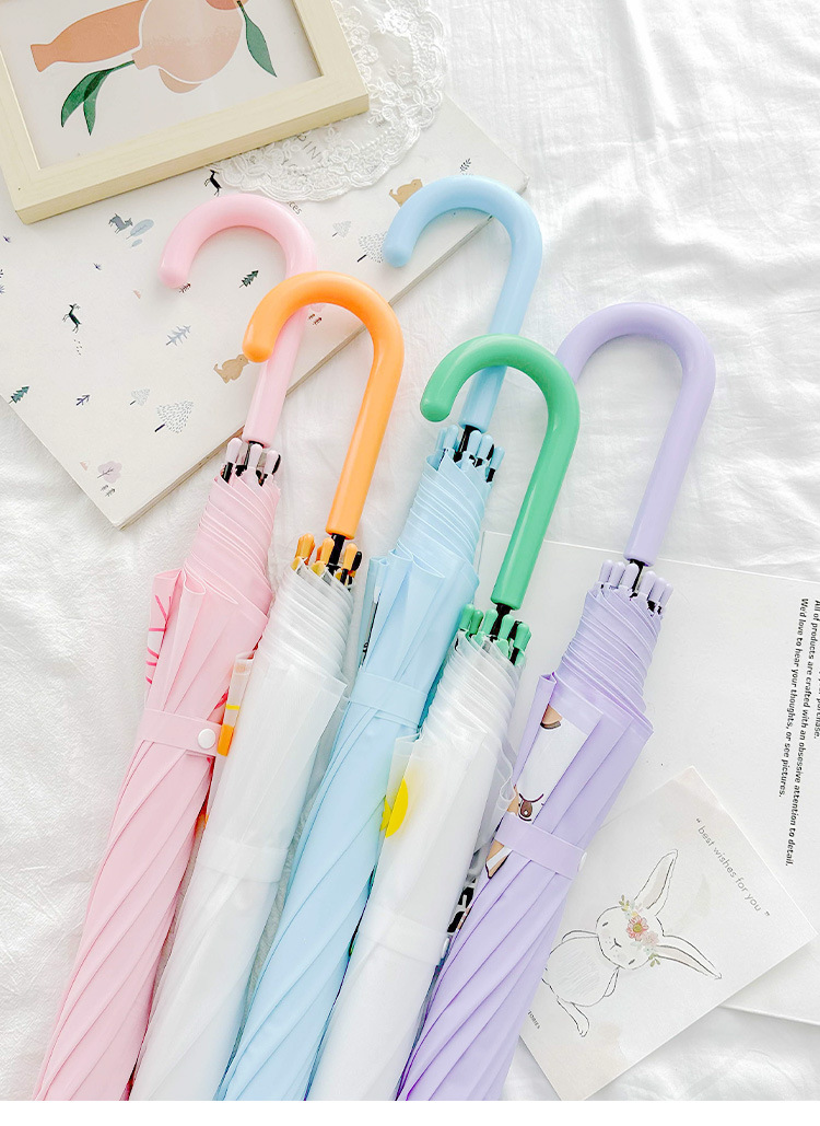 반투명 긴 손잡이 어린이 우산 소녀 소년 귀여운 유치원용 가벼운 양용 우산 학교용스토어 가기