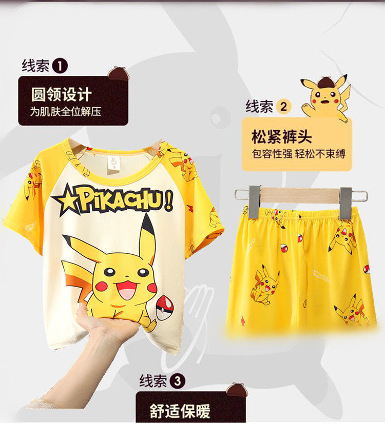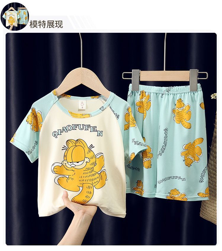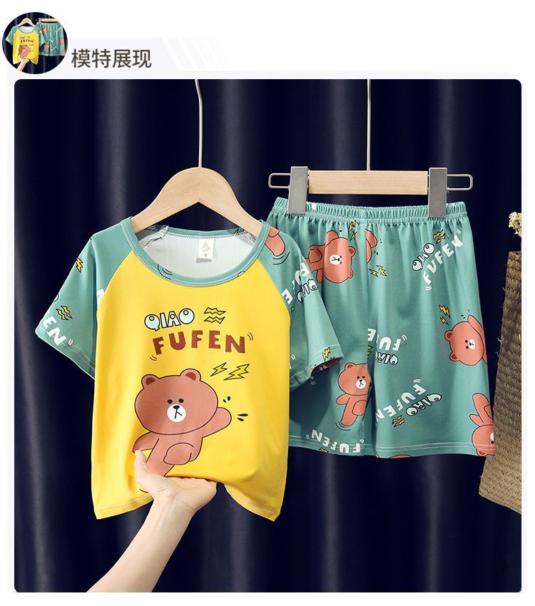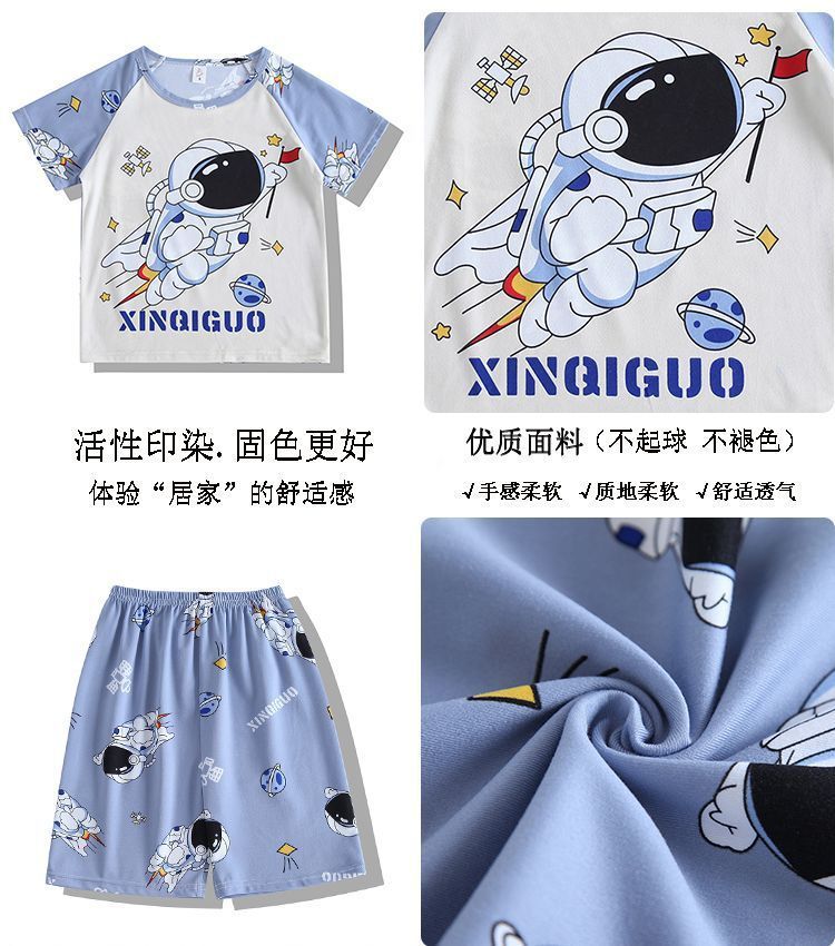 어린이 잠옷 여름 반팔 소년과 소녀 중 큰 어린이 얇은 만화 아기 소년 학생 홈 의류 세트스토어 가기