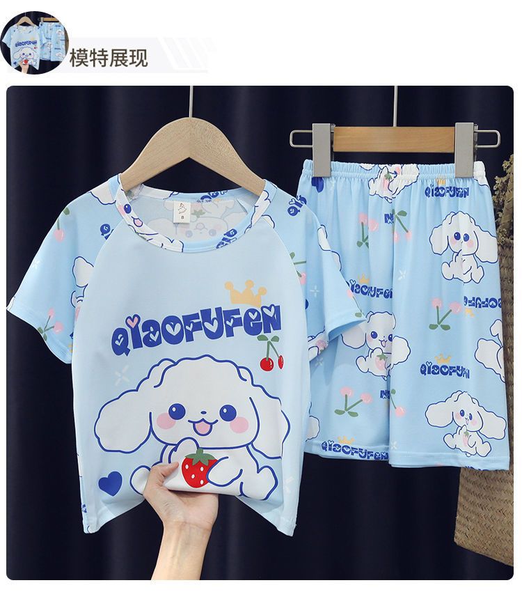 어린이 잠옷 여름 반팔 소년과 소녀 중 큰 어린이 얇은 만화 아기 소년 학생 홈 의류 세트