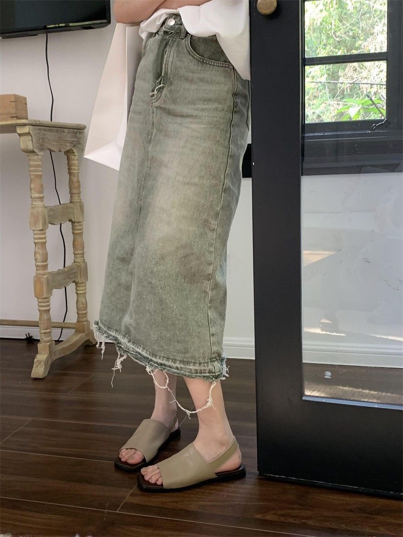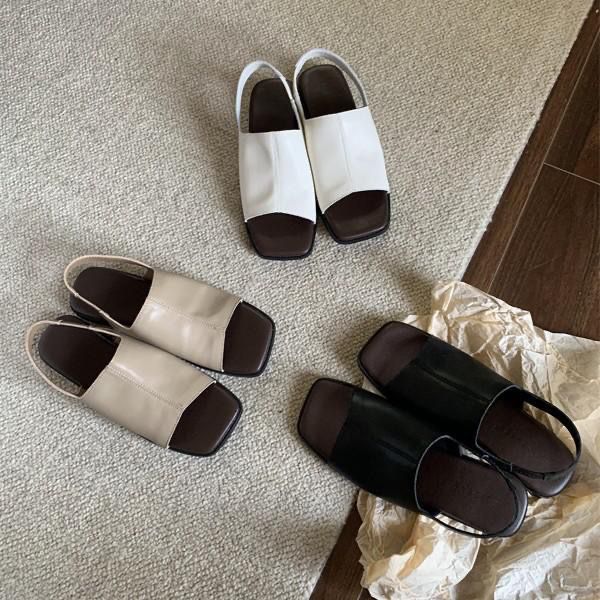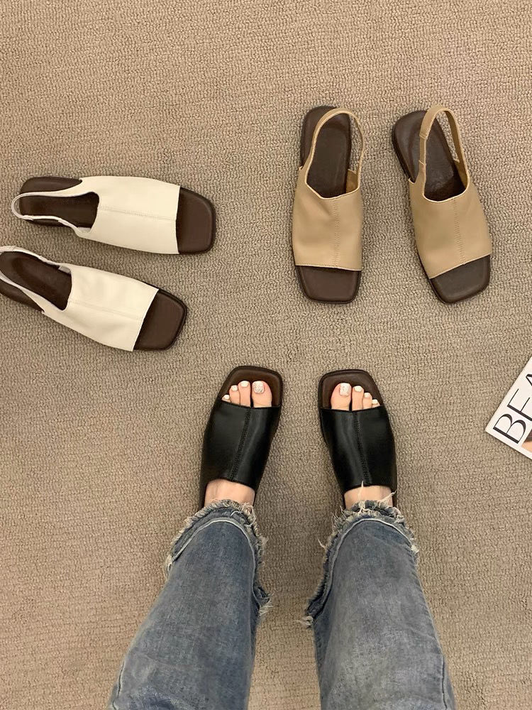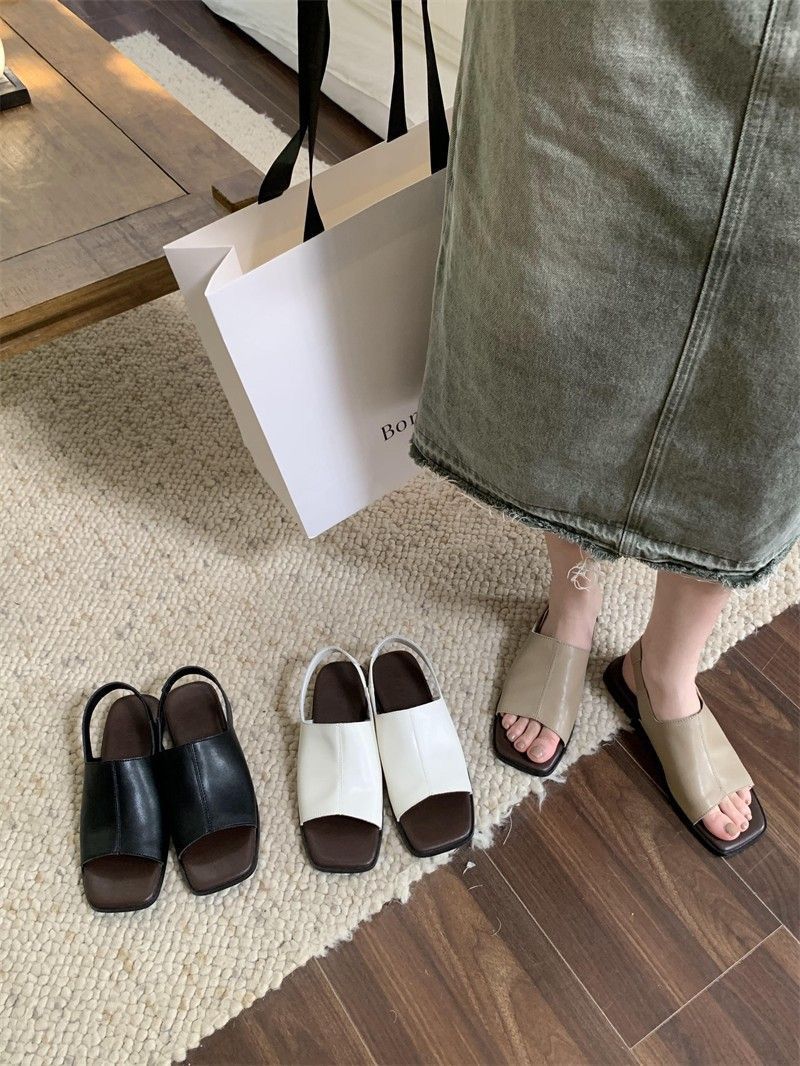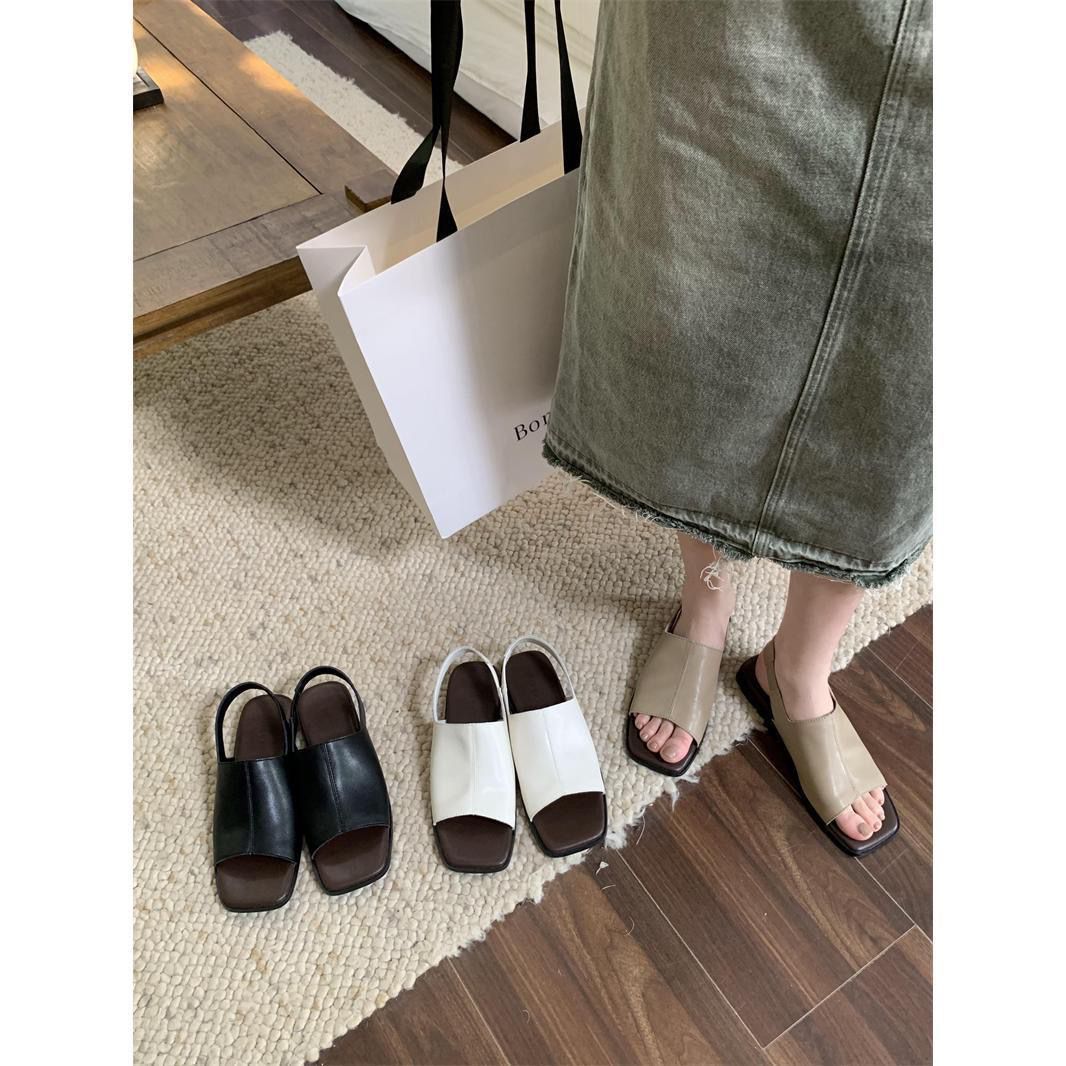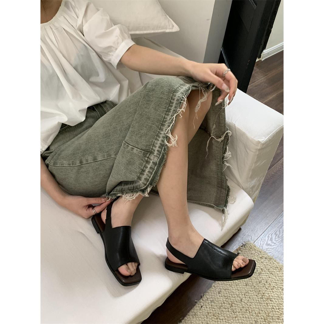플랫 샌들 여자 2024 년 여름 새로운 올 매치 유행 원피스 백 믹스 벨트 착용 로우 힐 워크 샌들스토어 가기