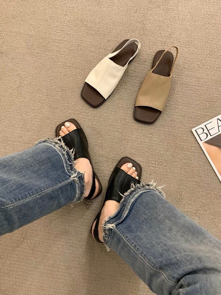 플랫 샌들 여자 2024 년 여름 새로운 올 매치 유행 원피스 백 믹스 벨트 착용 로우 힐 워크 샌들