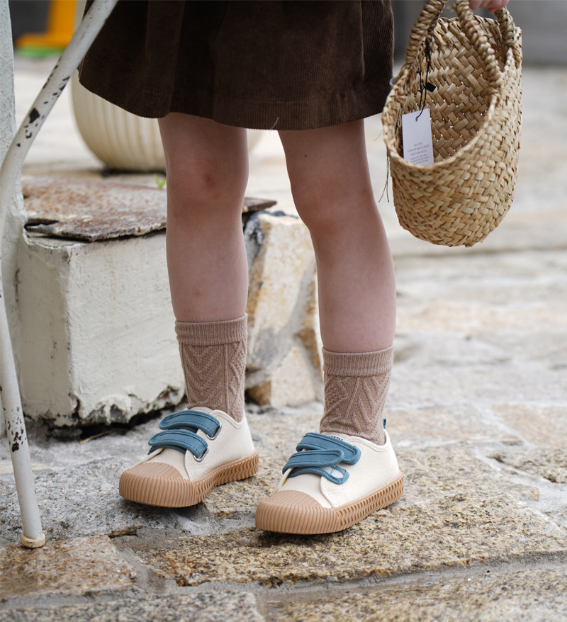 TS 정품 어린이 캔버스 신발 2023 가을 소년 소녀 벨크로 운동화 유아 실내 신발 아기 비스킷 신발스토어 가기