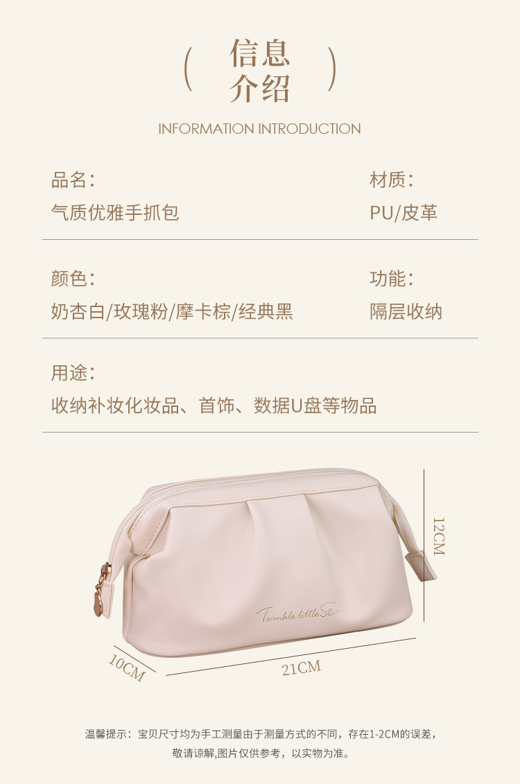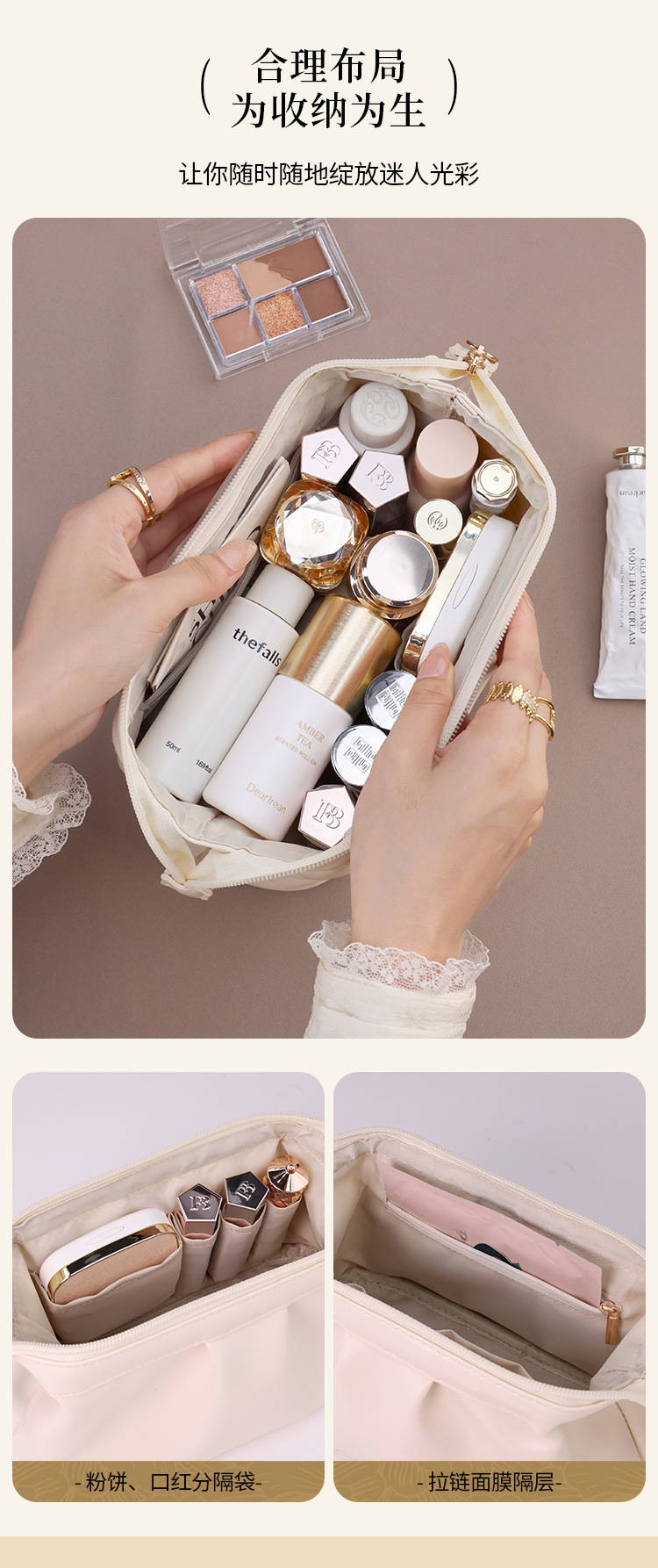 로즈 스토리 PU 방수 화장품 가방 대용량 고급 센스 여행 작은 캐리 온 여성용 휴대용 Ins 스타일 핸드 클러치 백