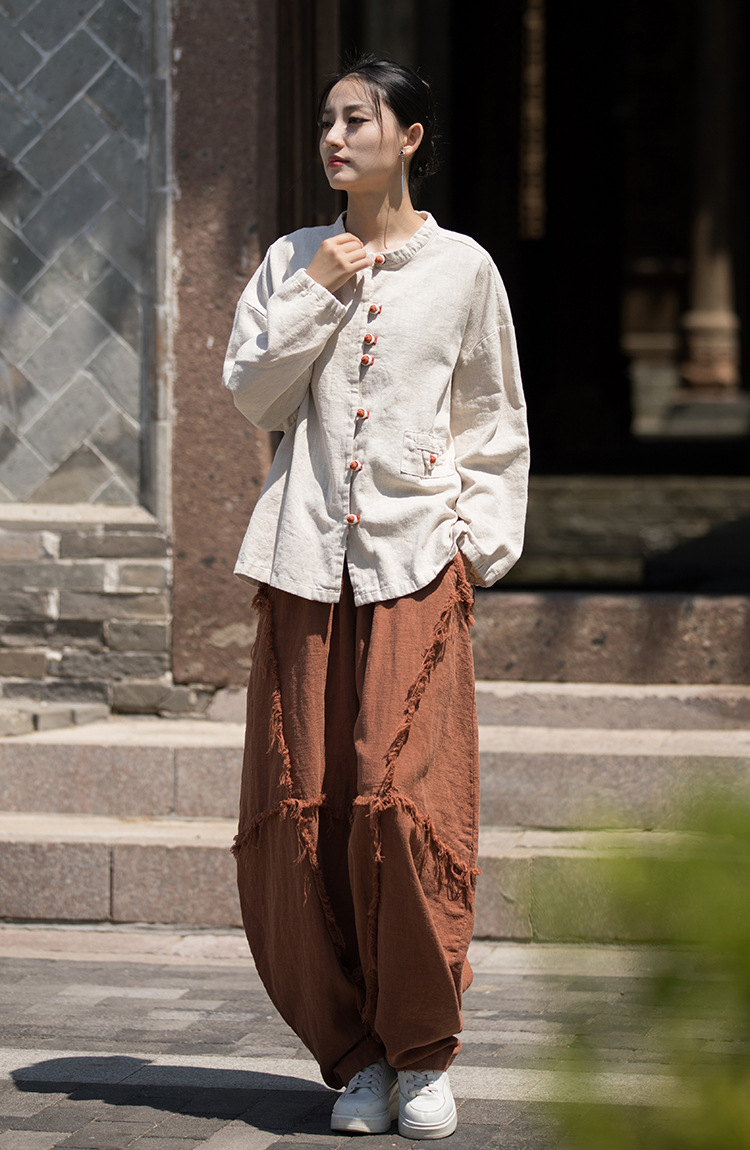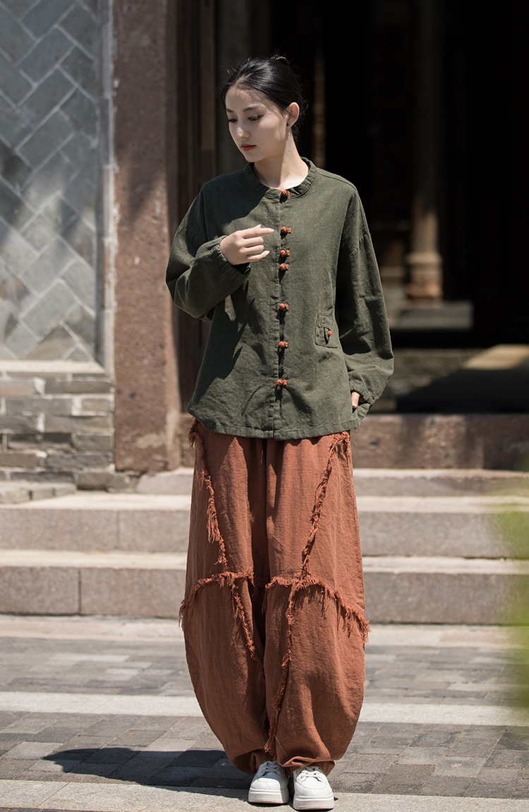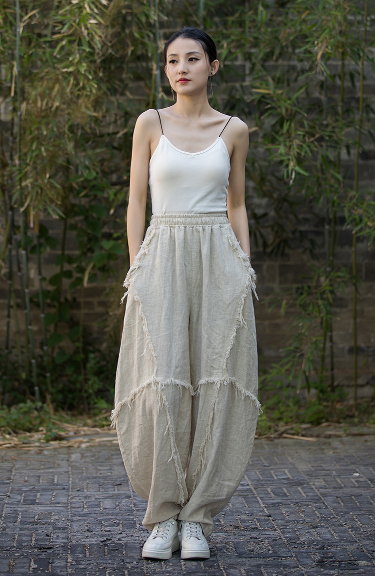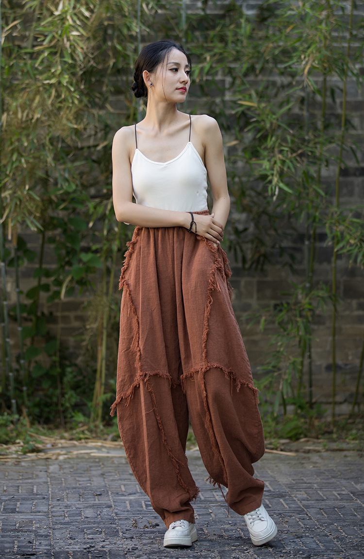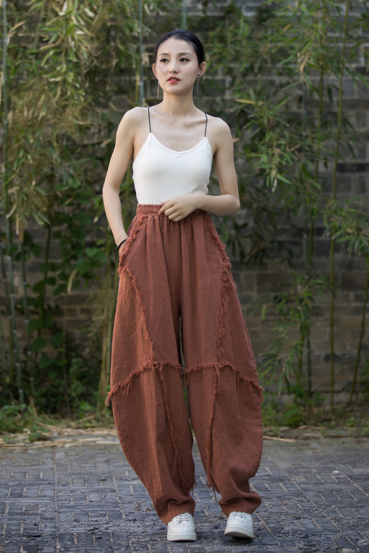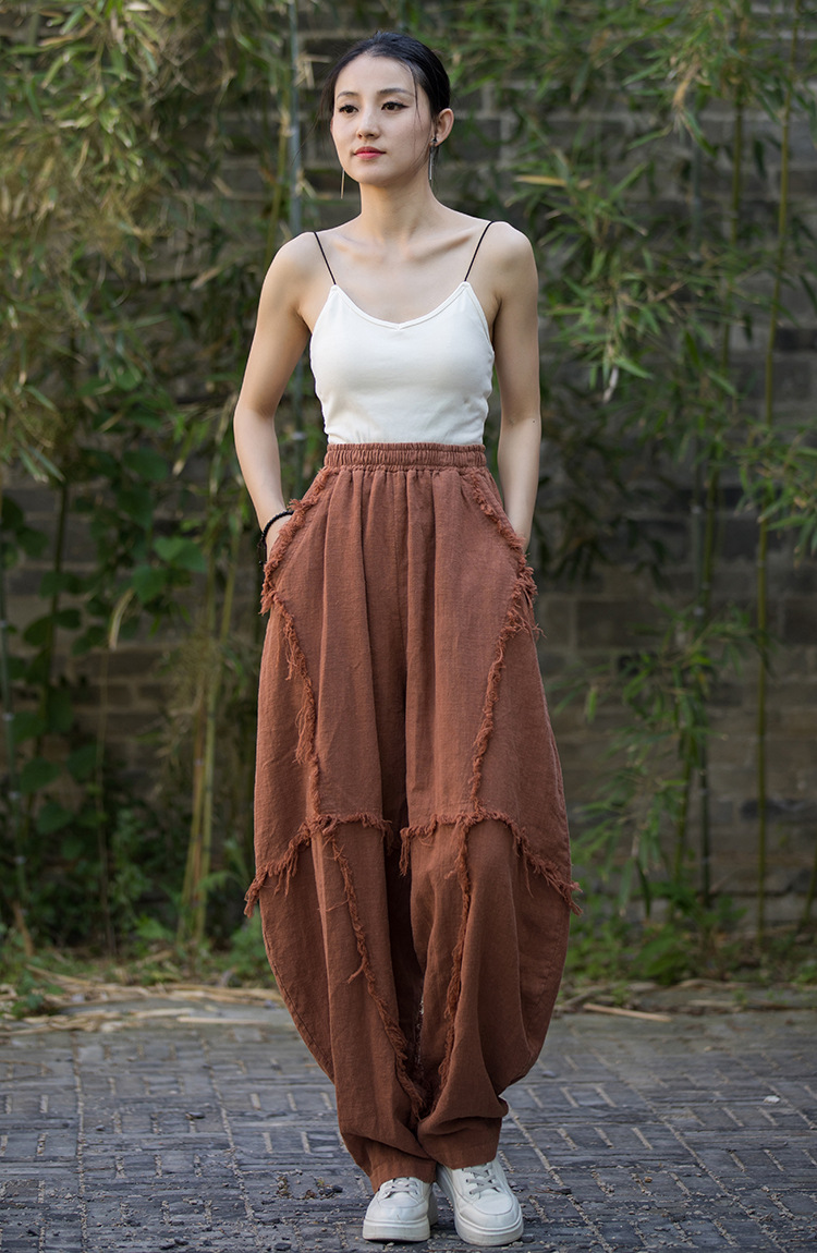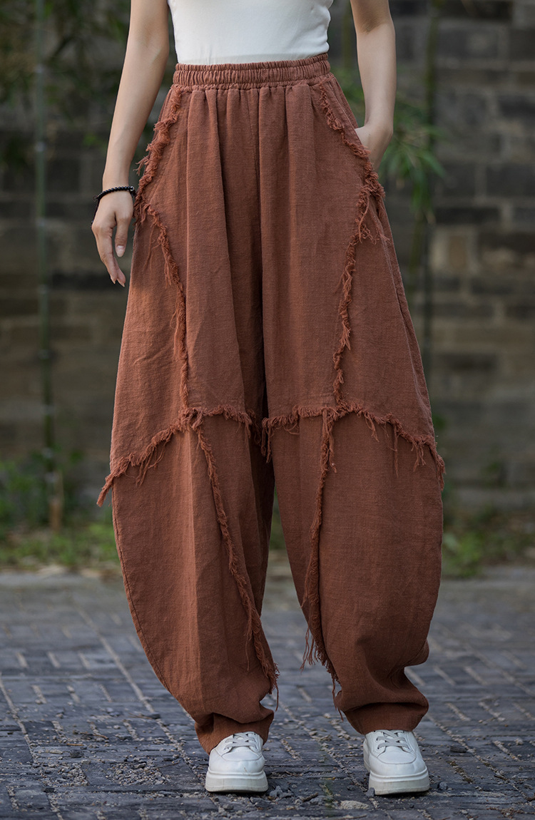 25 가을 겨울 오리지널 린넨 기모 바지 캐주얼 다용도 랜턴 팬츠 면마 빅사이즈 빈티지 스타일 여성 바지