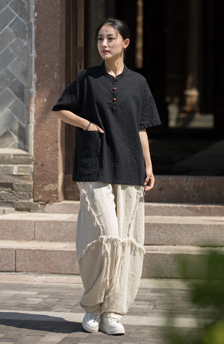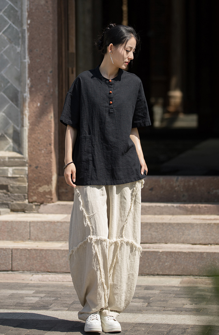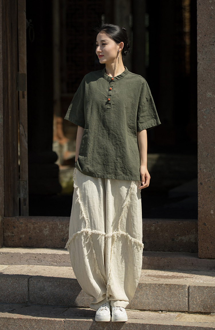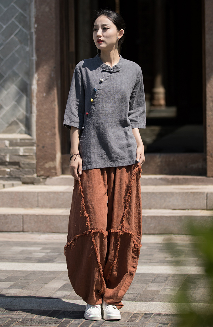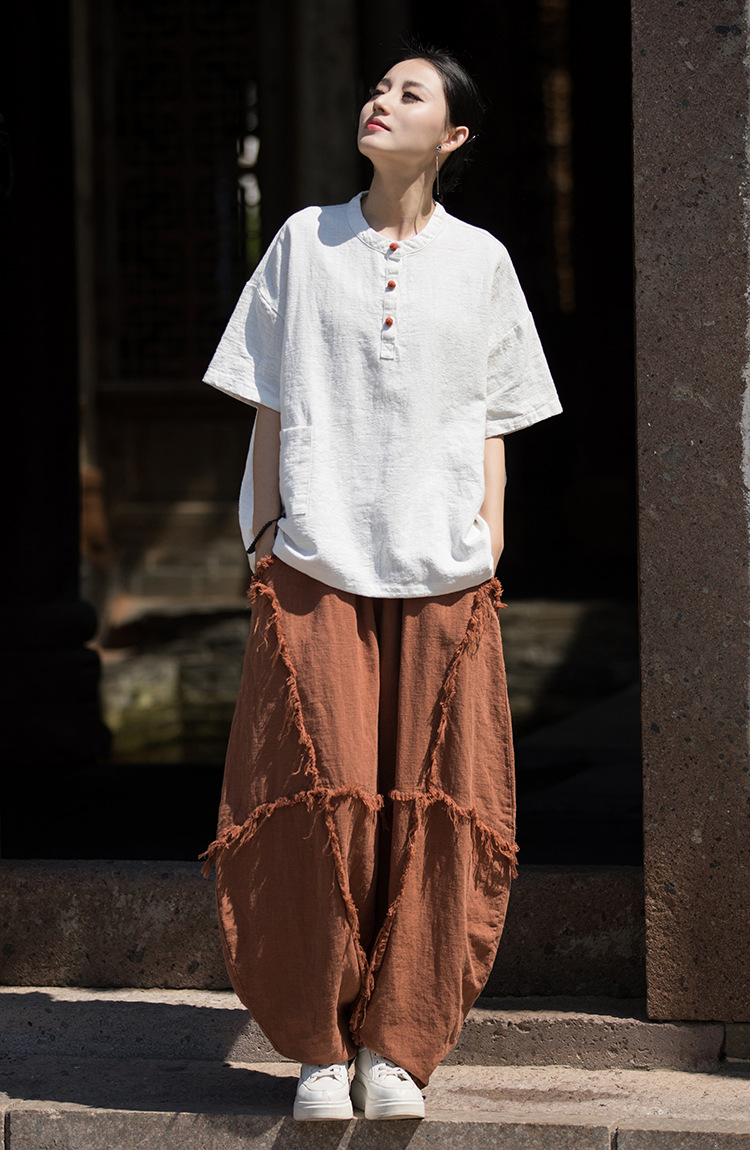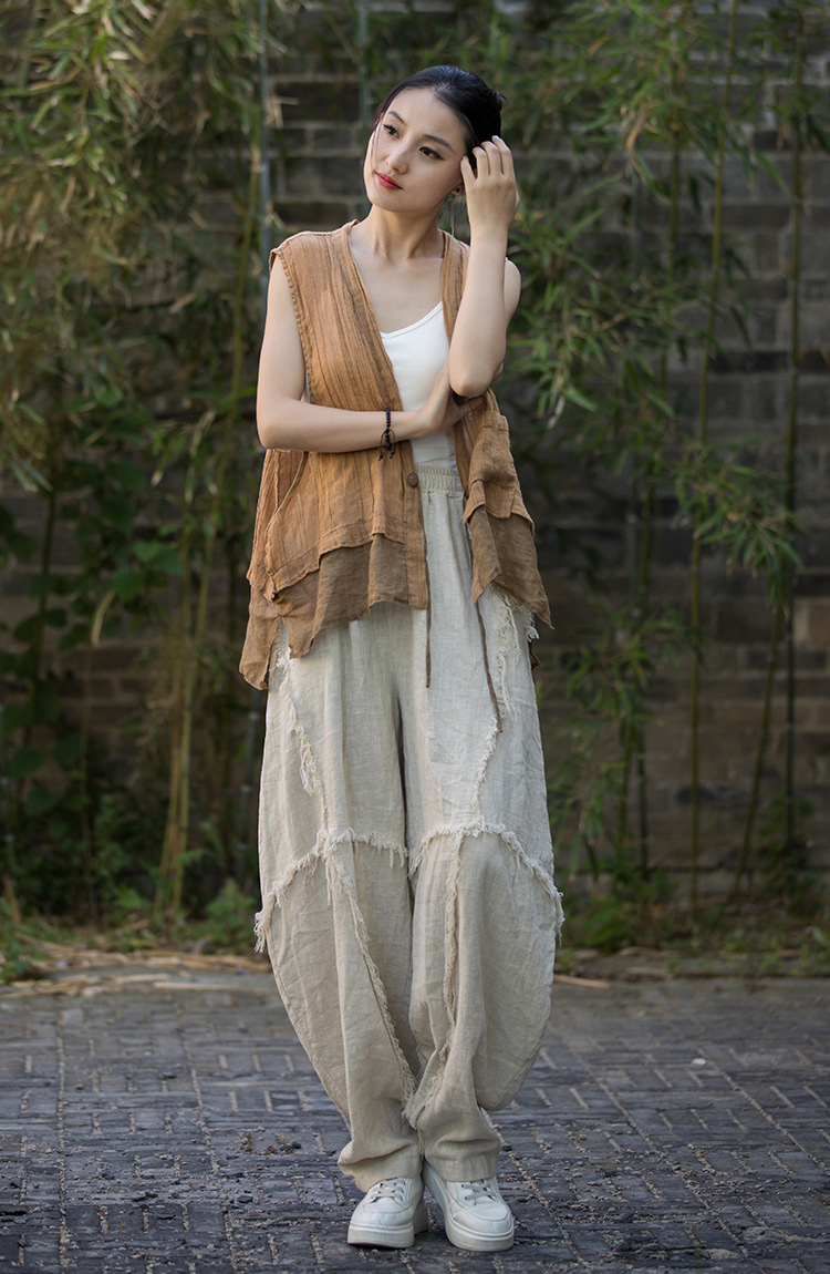 25 가을 겨울 오리지널 린넨 기모 바지 캐주얼 다용도 랜턴 팬츠 면마 빅사이즈 빈티지 스타일 여성 바지