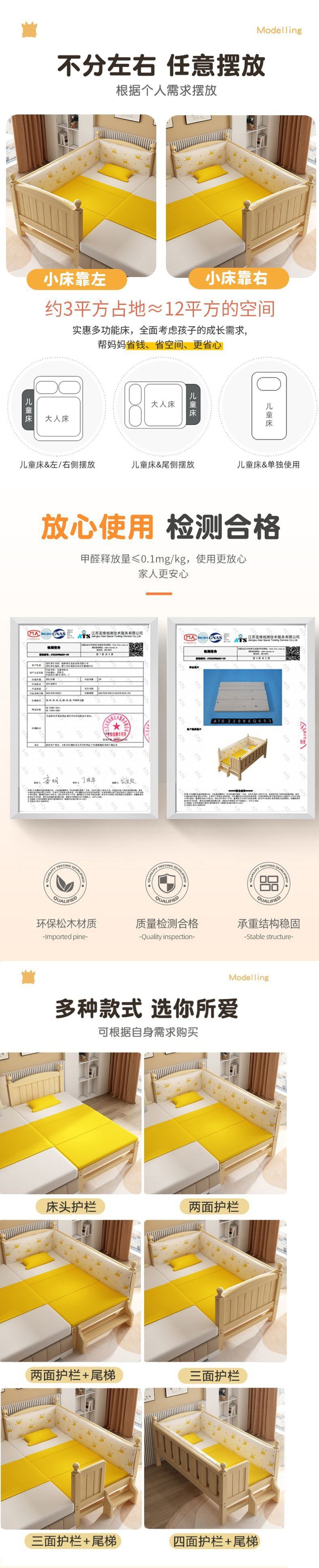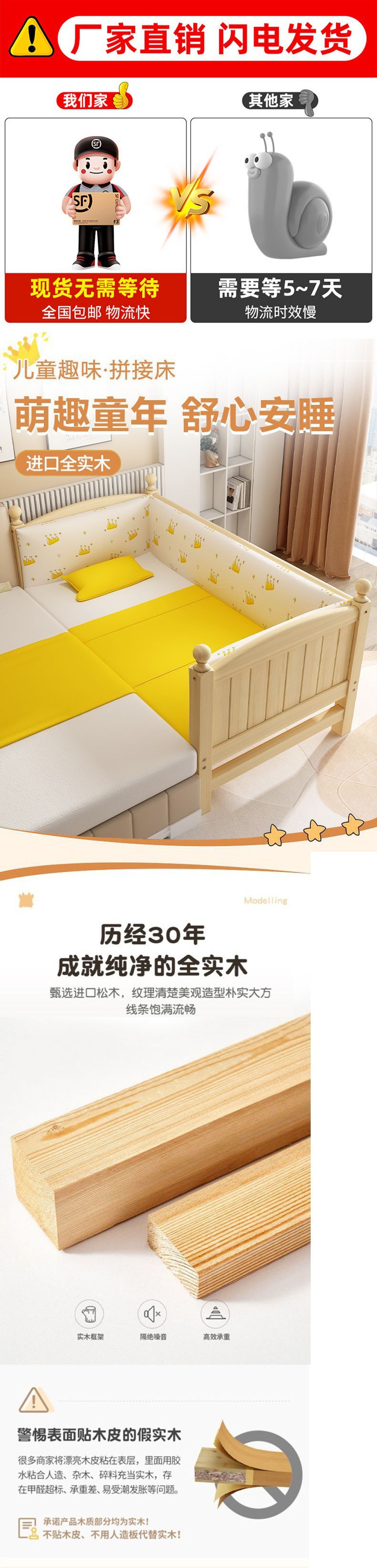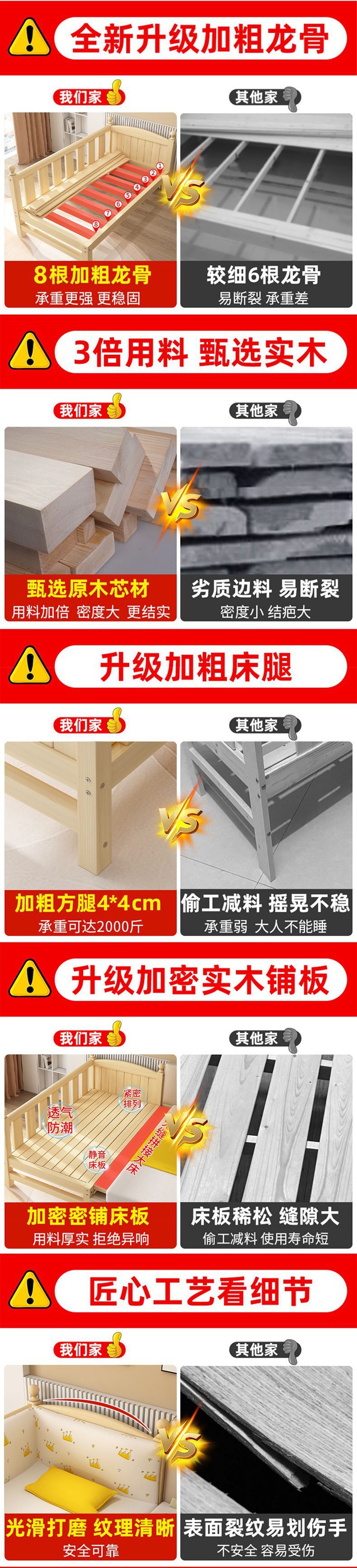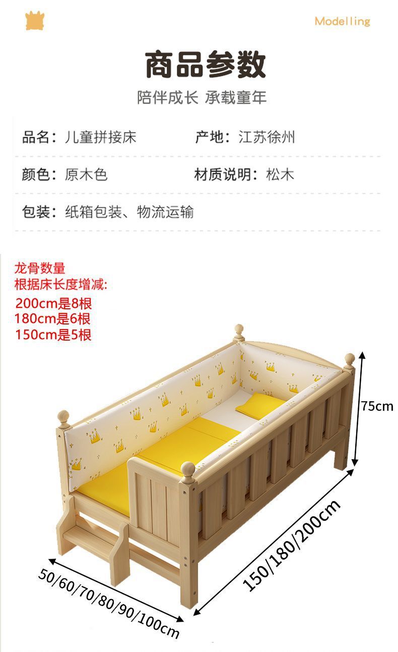 침대 침대 침대 유아용 침대 스티칭 어린이 단단한 나무 침대 사이드가 두껍게 두꺼운 연변 사이드 스티칭 큰 침대 싱글 침대스토어 가기