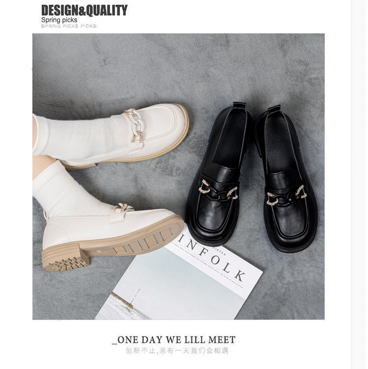 작은 가죽 신발 여성 봄과 여름 2024 새로운 영국 스타일의 낮은 뒤꿈치 부드러운 바닥 다목적 검은 신발 작업 신발 jk 신발스토어 가기