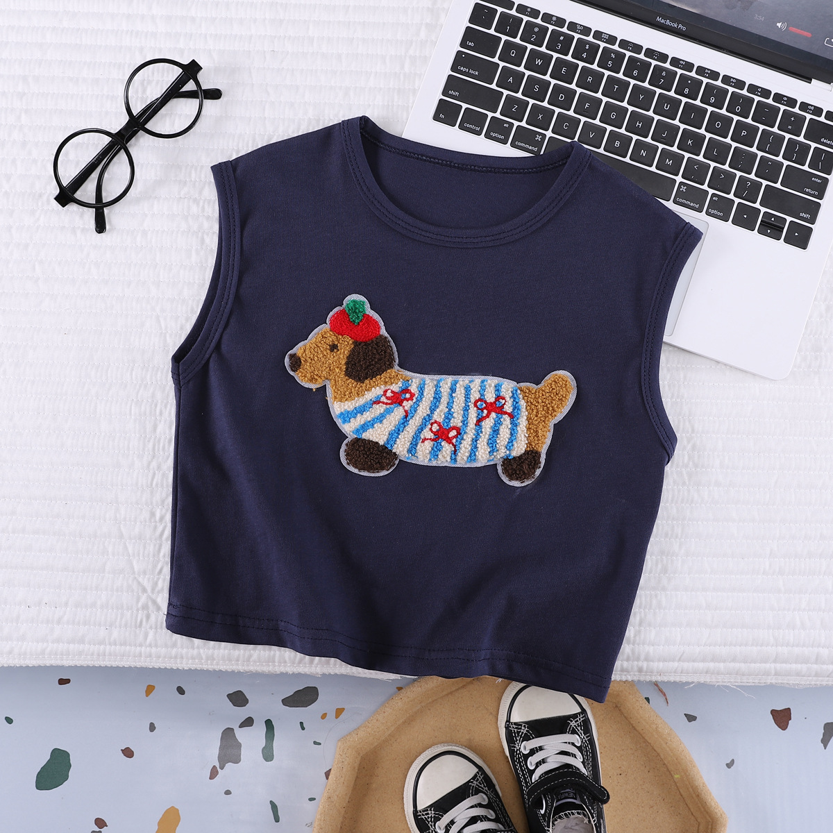 소년의 여름 2024 새로운 소년 아기 조끼 세트 어린이 여름 유행 민소매 만화 투피스 세트