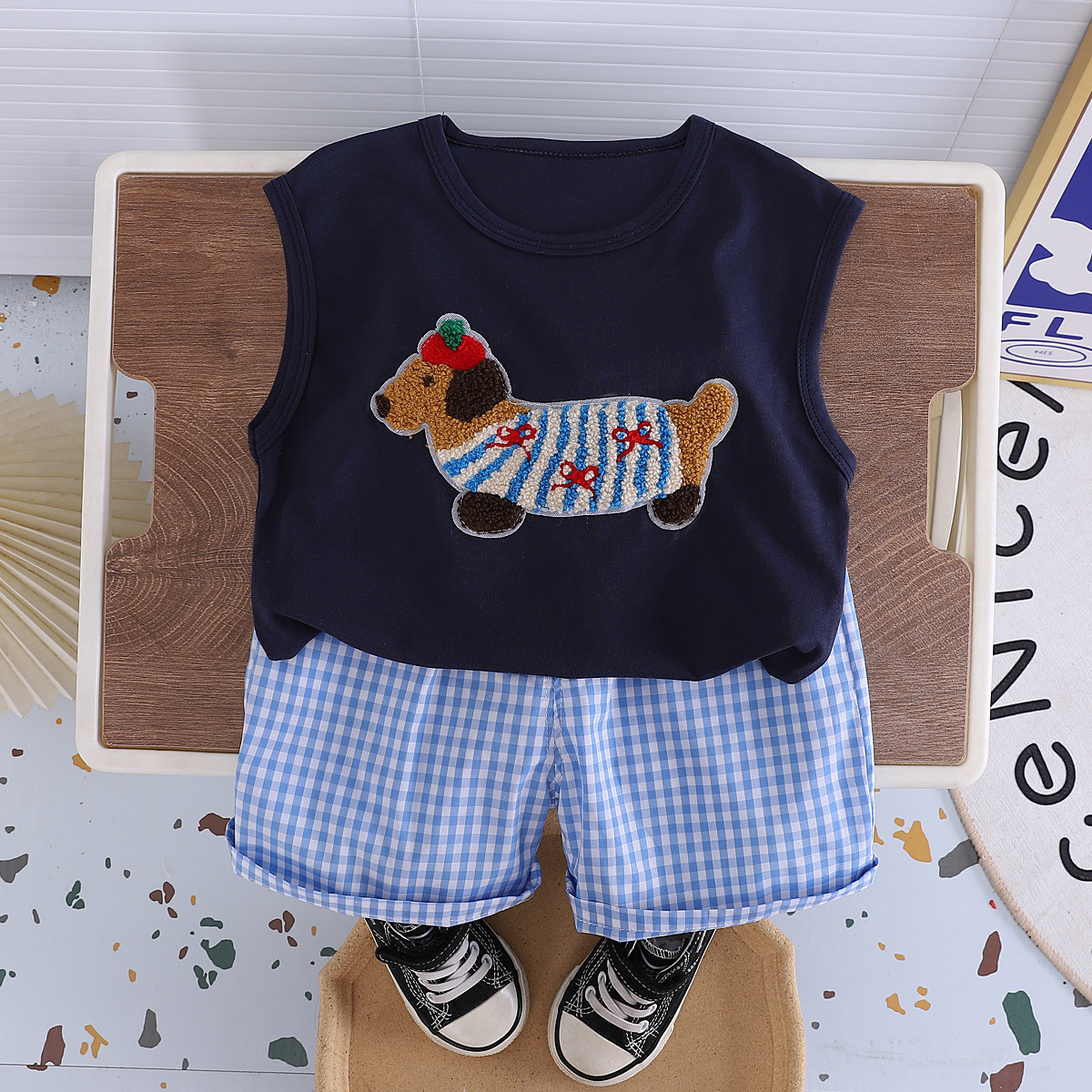 소년의 여름 2024 새로운 소년 아기 조끼 세트 어린이 여름 유행 민소매 만화 투피스 세트스토어 가기