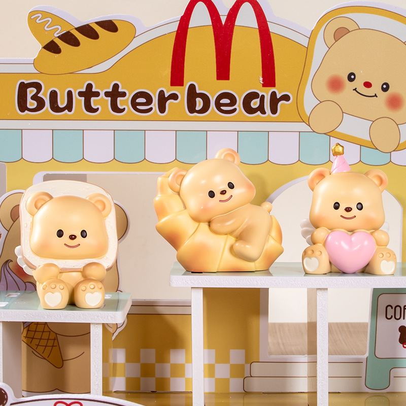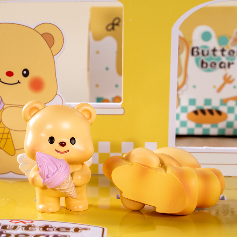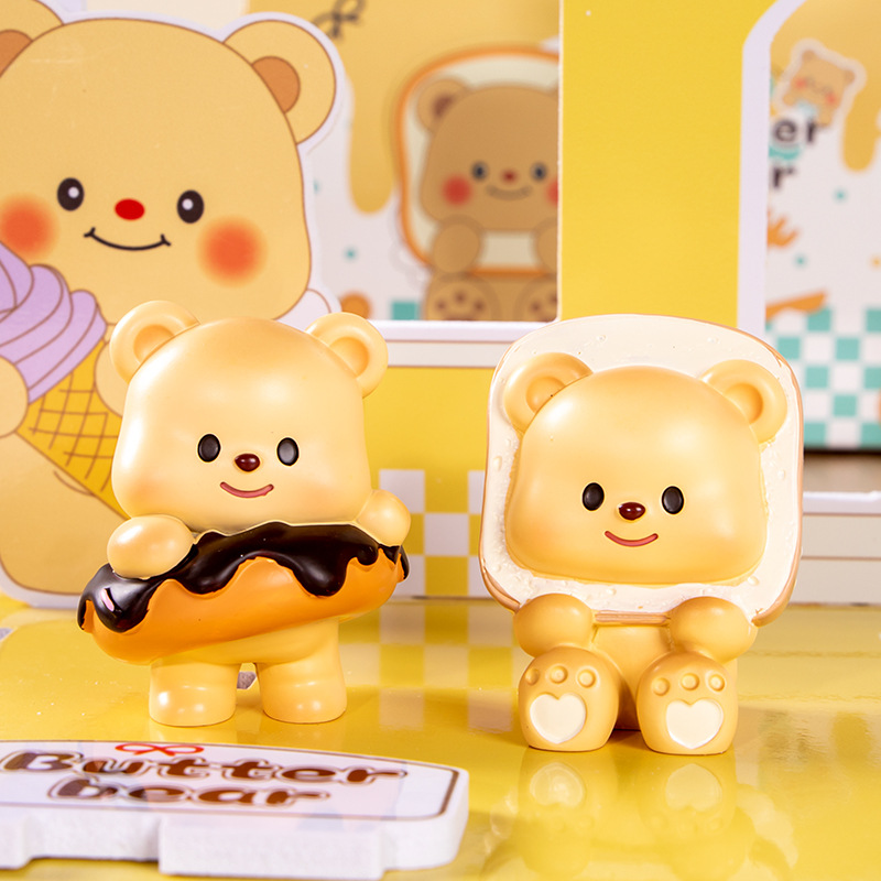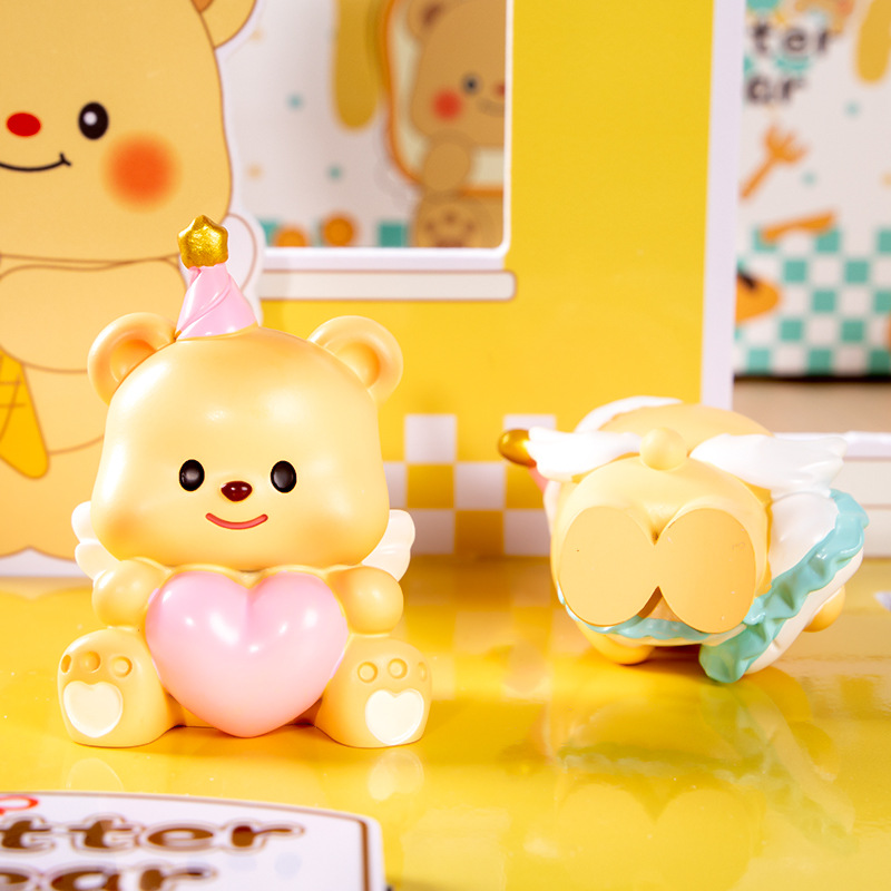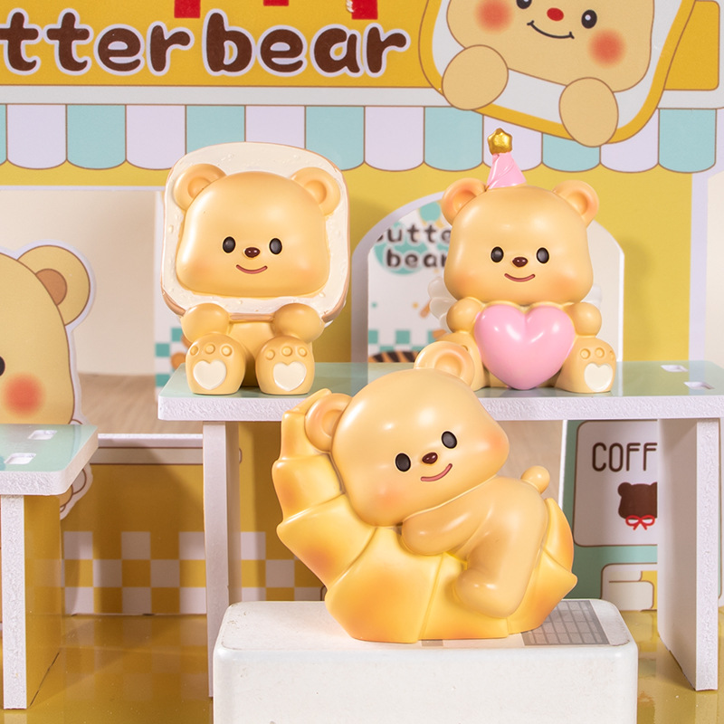 흔들리는 소리 폭발 버터 곰 블라인드 박스 장식품 만화 밀크 구 컵스 귀여운 애완 동물 데스크탑 장식 작은 빨간 책스토어 가기