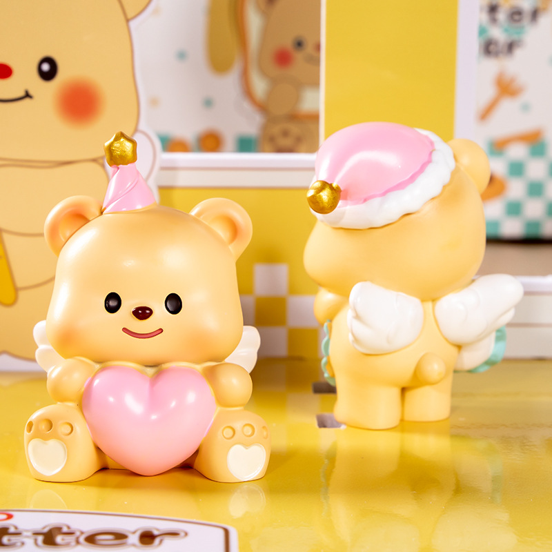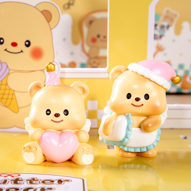 흔들리는 소리 폭발 버터 곰 블라인드 박스 장식품 만화 밀크 구 컵스 귀여운 애완 동물 데스크탑 장식 작은 빨간 책