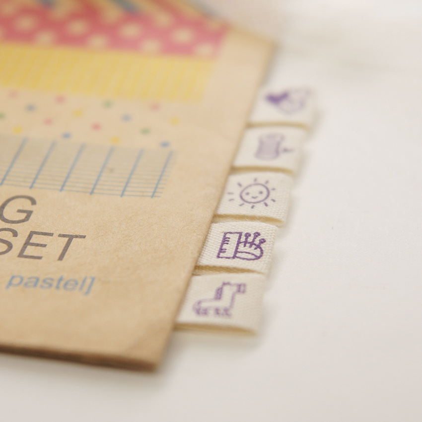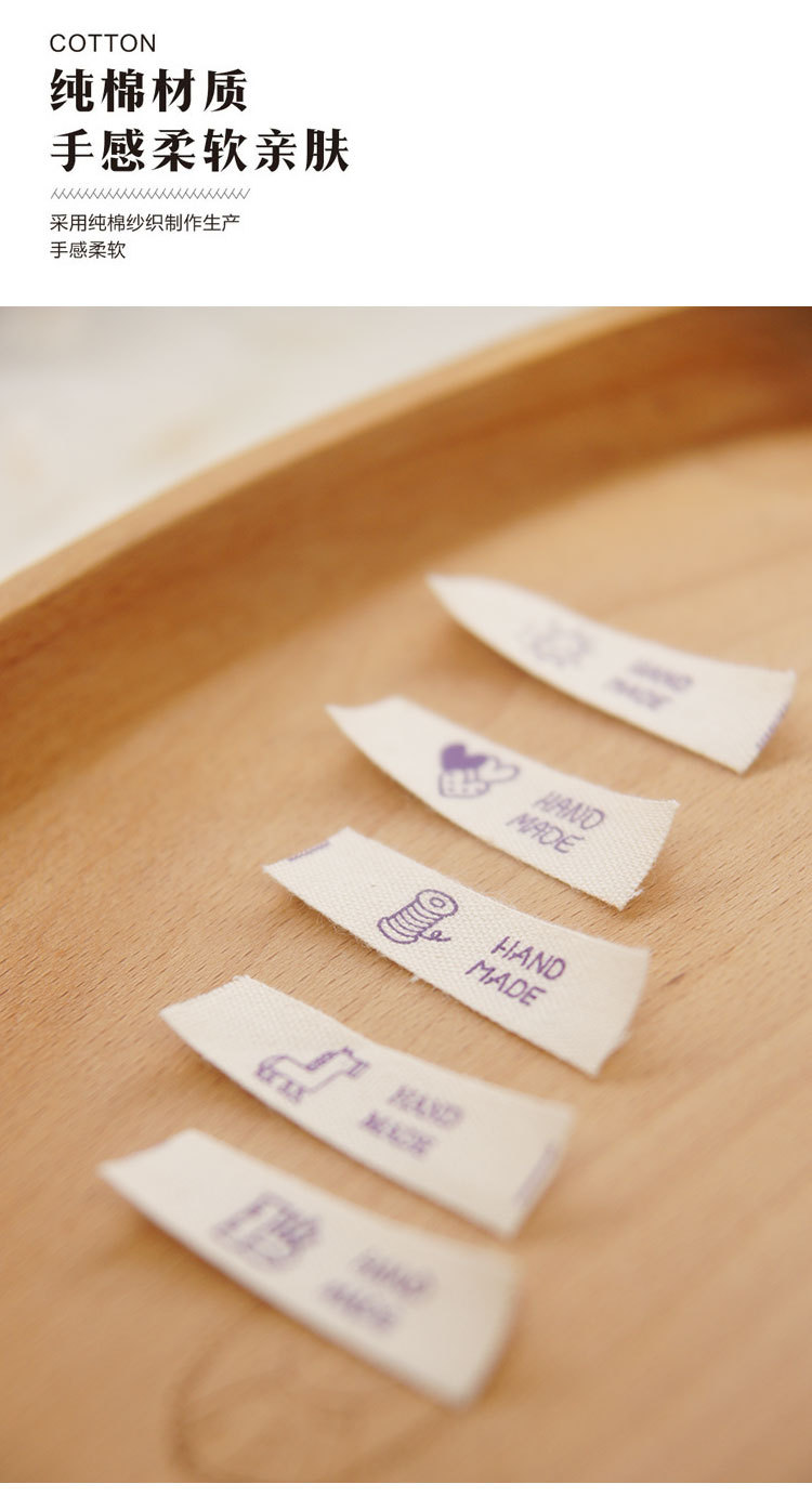 재고 손으로 접은 보라색 천 라벨 zakka 인쇄 라벨 액세서리 재봉 DIY 액세서리 미니 사이드 라벨 신제품