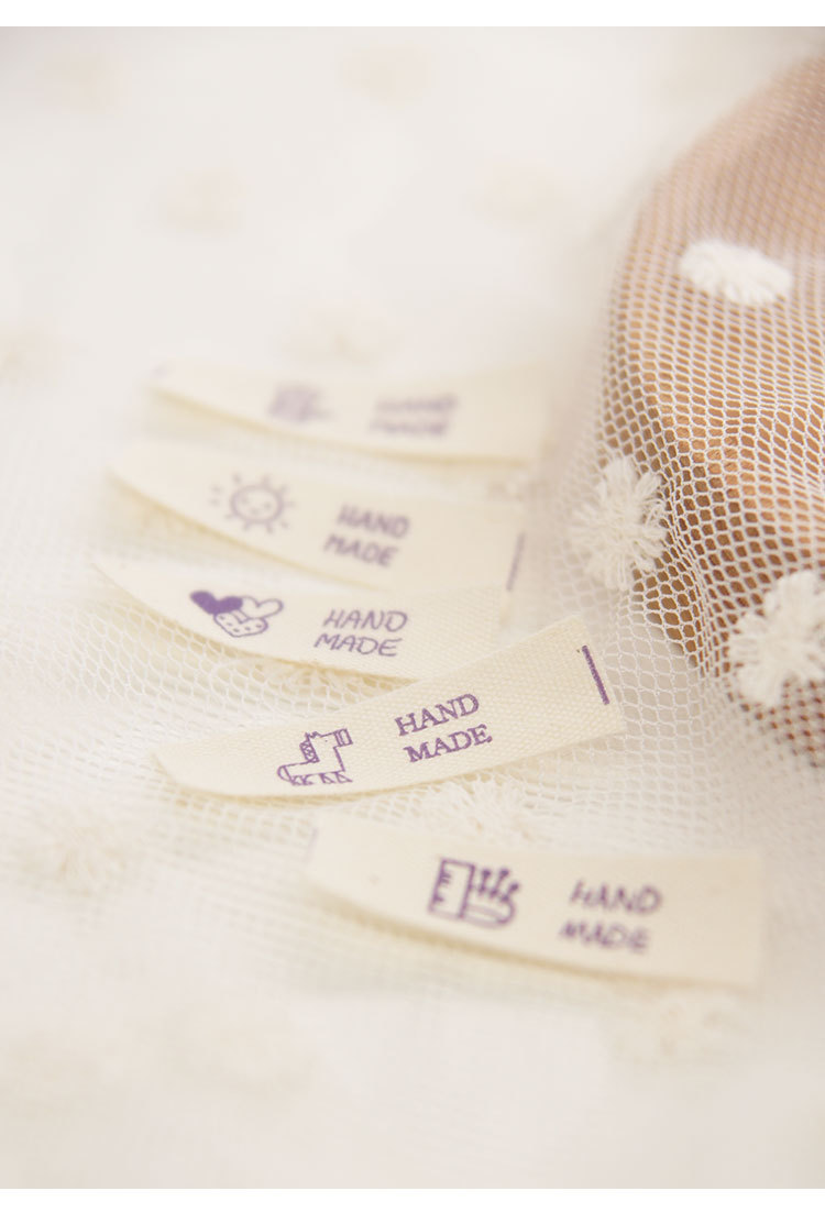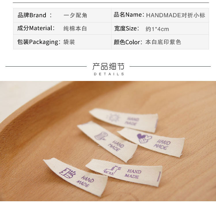 재고 손으로 접은 보라색 천 라벨 zakka 인쇄 라벨 액세서리 재봉 DIY 액세서리 미니 사이드 라벨 신제품스토어 가기