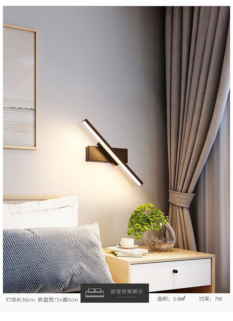 개인 침실 벽 램프 침대 옆 램프 북유럽 현대 간단한 창조적 인 인터넷 연예인 계단 거실 회전 벽 램프