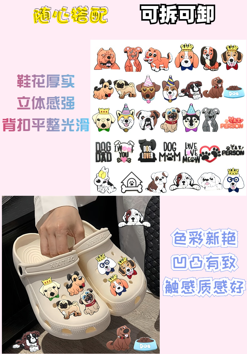 새로운 만화 강아지 시리즈 구멍 신발 장식 액세서리 DIY 탈부착 가능한 신발 장식