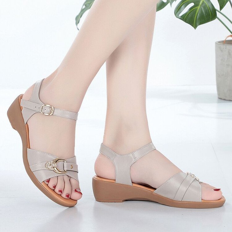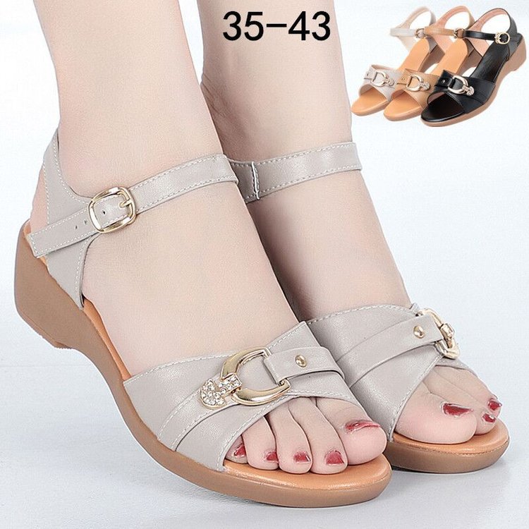 2024 새로운 도착 어머니 샌들 여성 여름 플랫 단독 중년 여성 소프트 솔 안티 슬립 슬리퍼 트렌디 한 외형 샌들