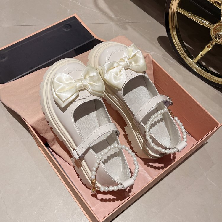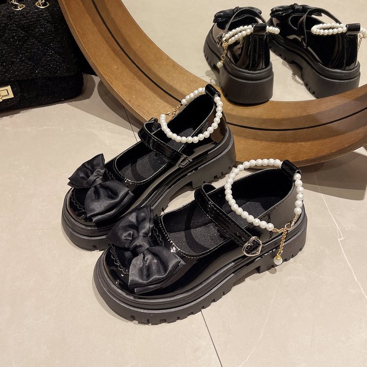 프랑스 스타일 메리 제인 신발 여성의 2024 새로운 여름과 가을 진주 활 신발 유행 얕은 입 두꺼운 신발