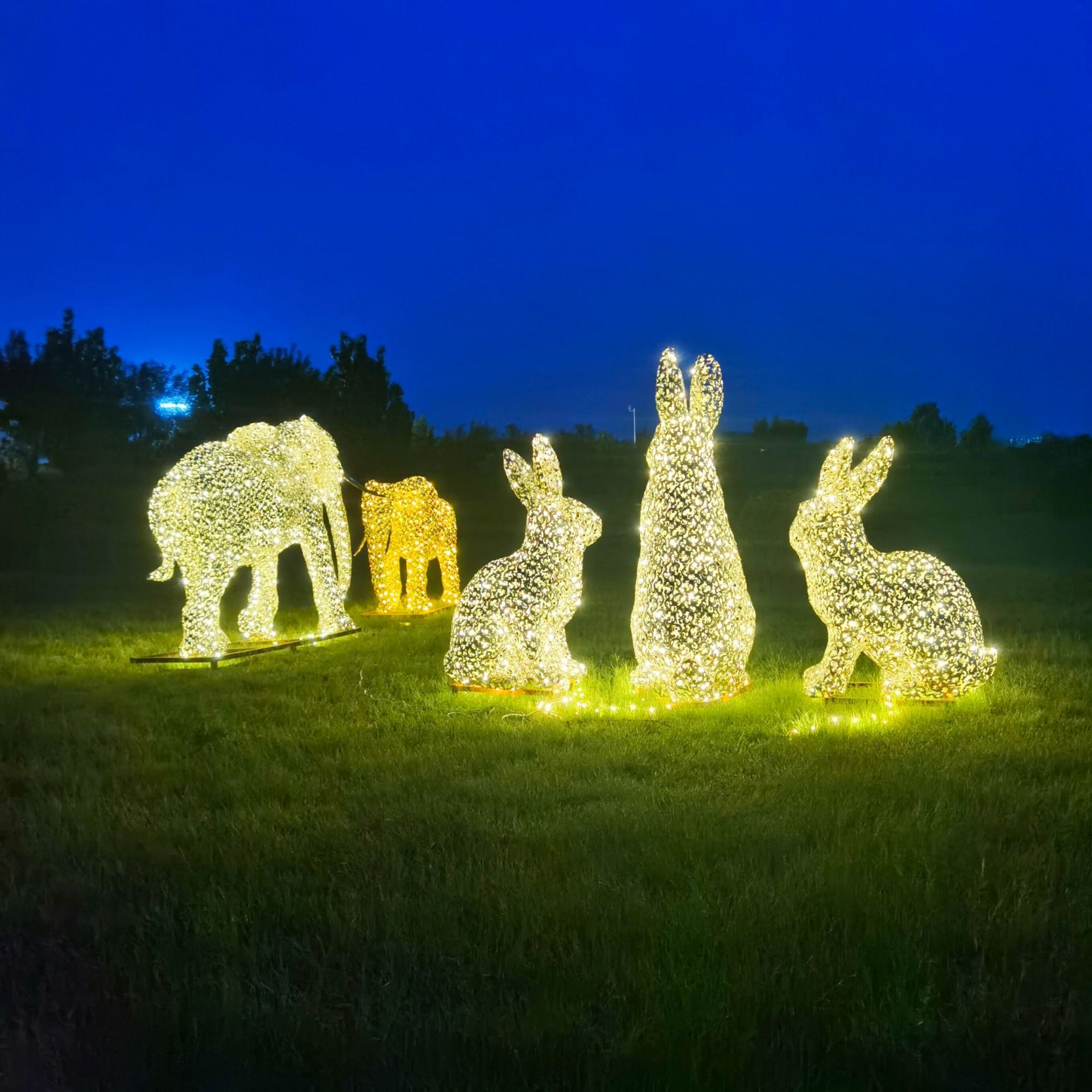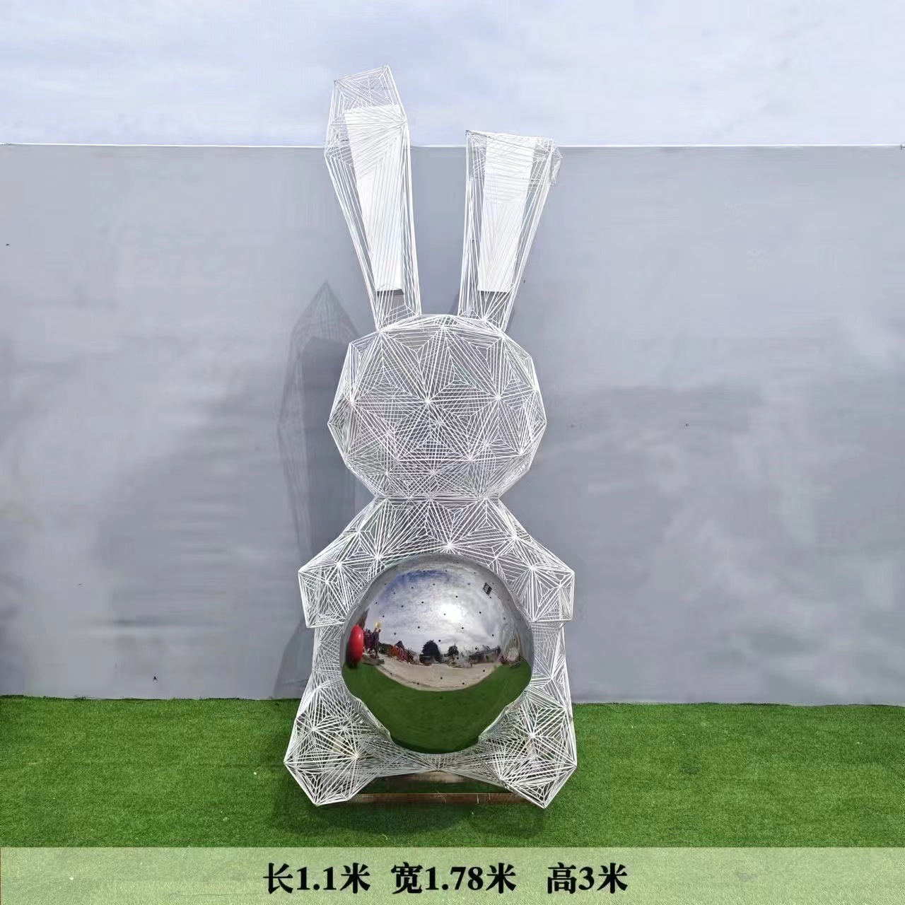 야외 스테인레스 스틸 중공 기하학적 빛나는 토끼 조각 도시 정원 풍경 빈 빛나는 금속 조각