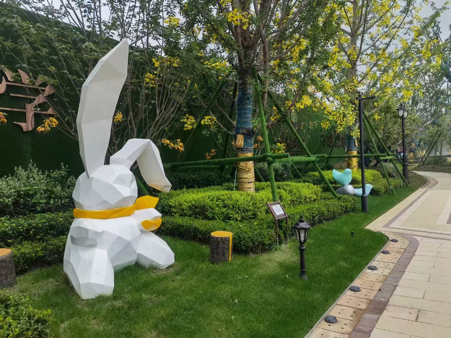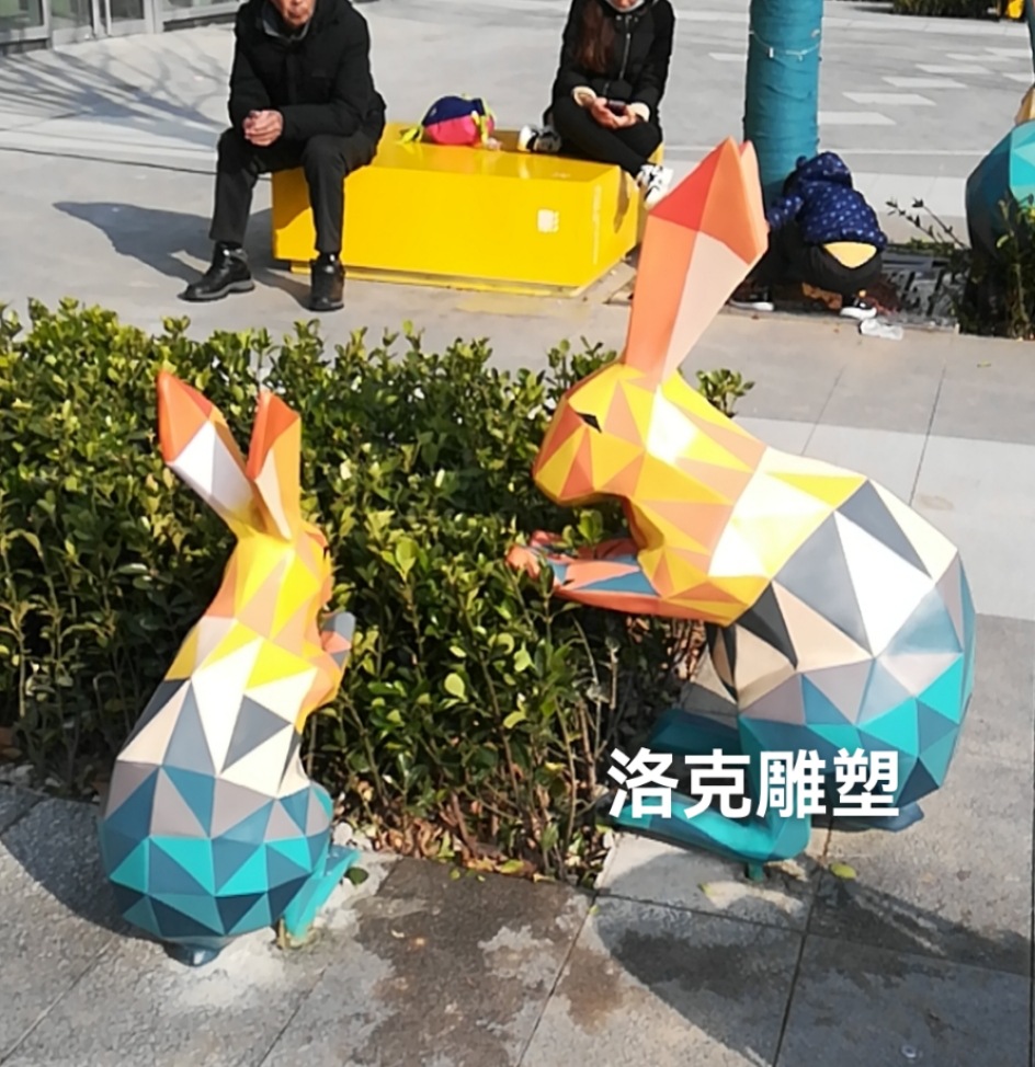 야외 스테인레스 스틸 중공 기하학적 빛나는 토끼 조각 도시 정원 풍경 빈 빛나는 금속 조각스토어 가기