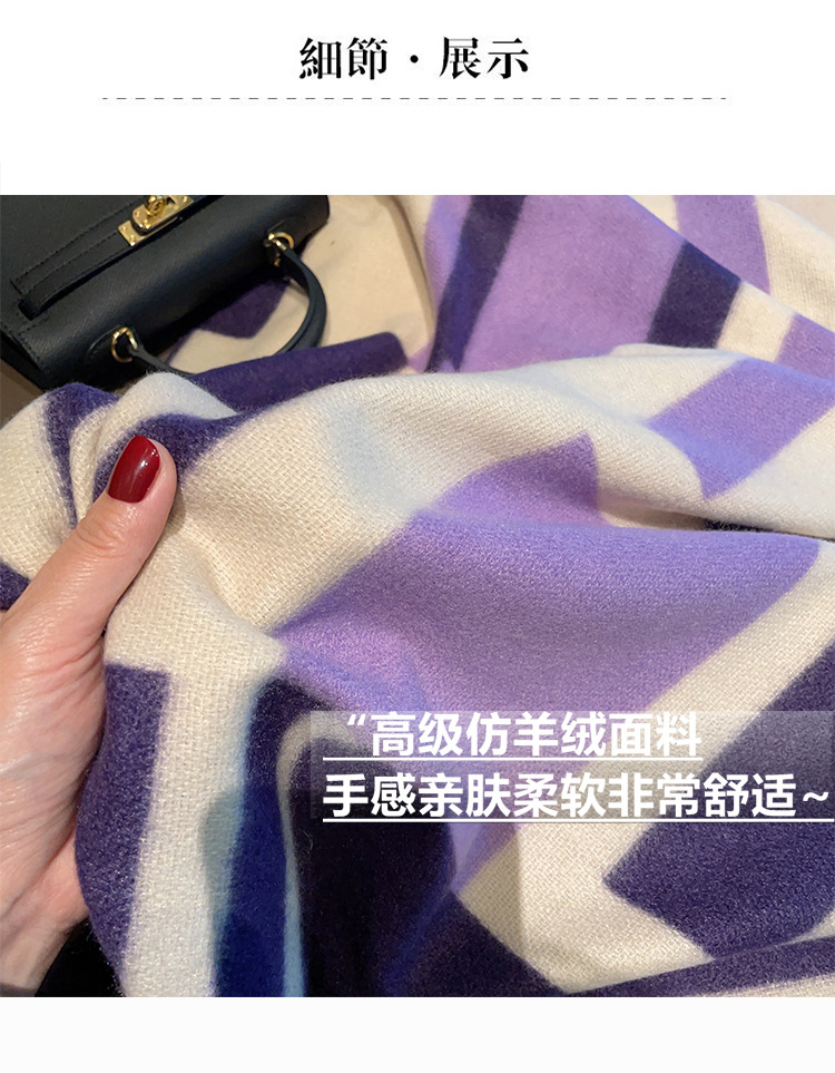 香芋紫条纹仿羊绒围巾女秋冬季韩版百搭加厚保暖围脖两用长款披肩