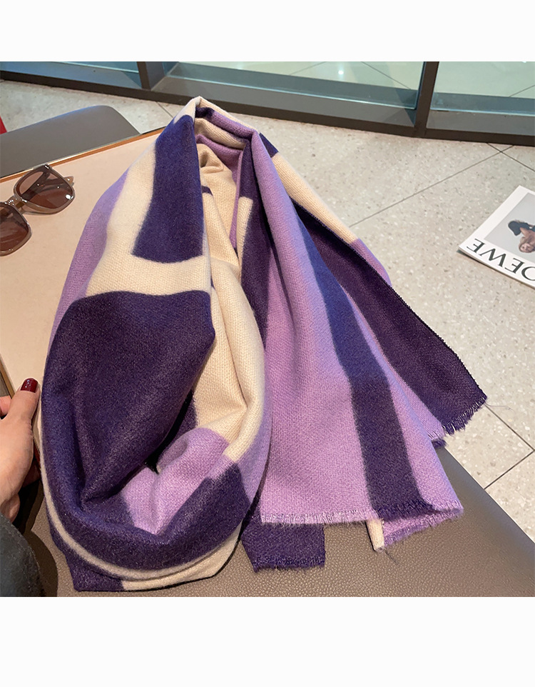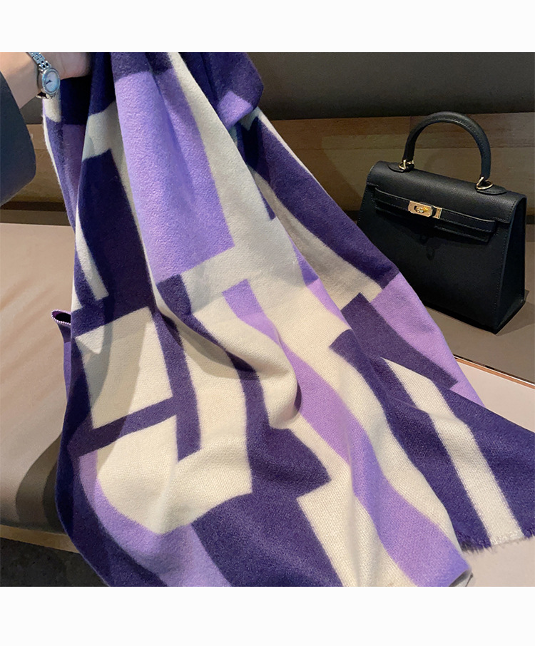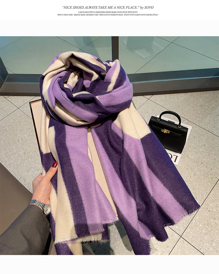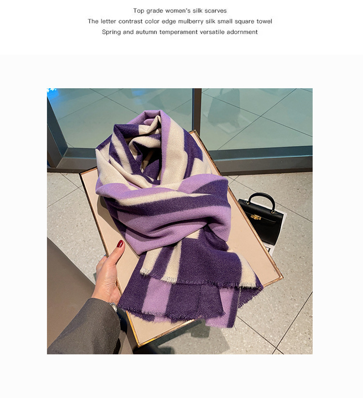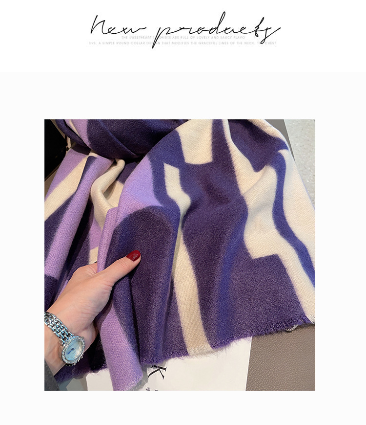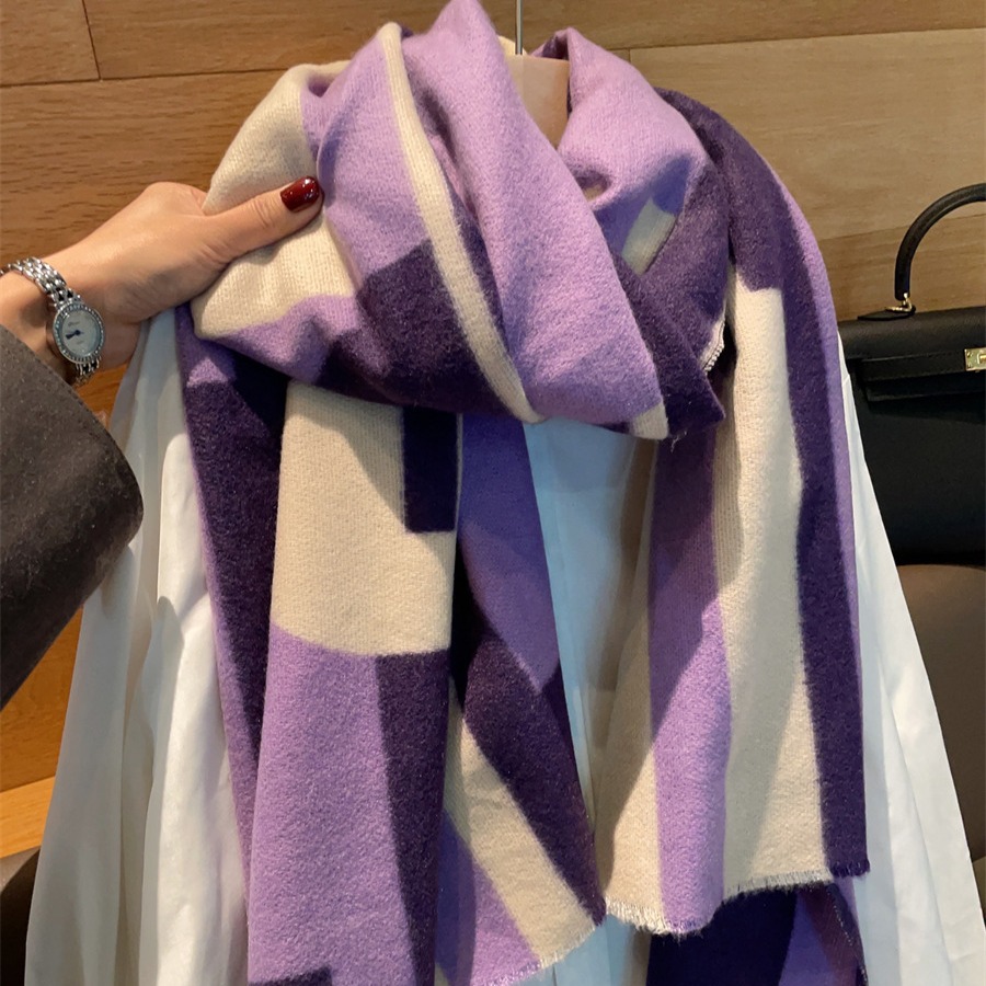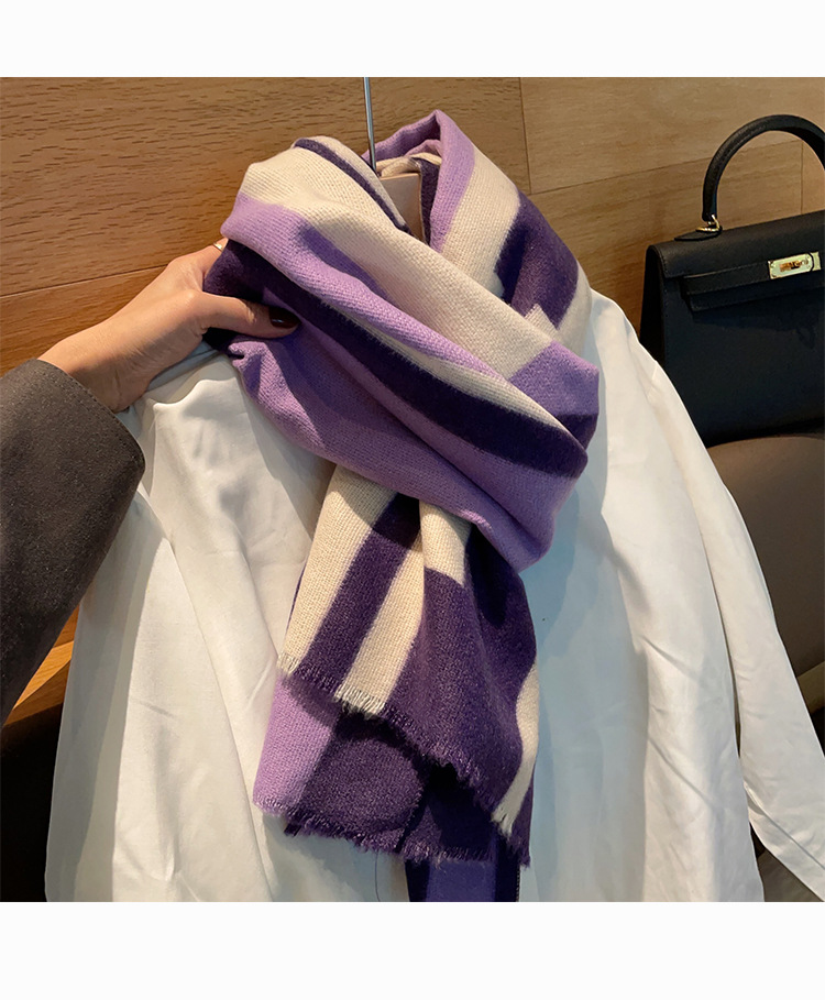 타로 퍼플 스트라이프 캐시미어 스카프 여자 가을과 겨울 한국식 올매치 두꺼운 따뜻한 목 듀얼 사용 긴 목도리