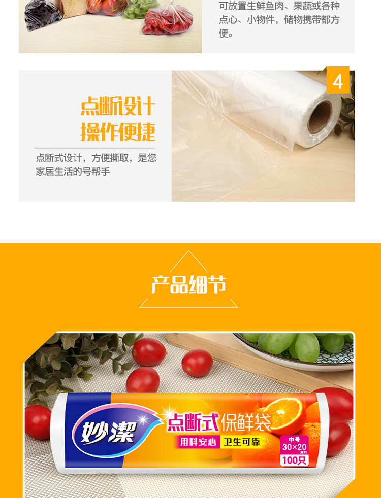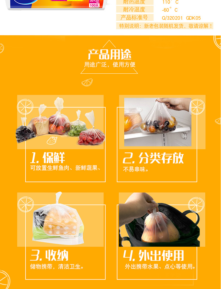 Miaojie 신선한 가방 식품 등급 가정용 가방 냉장고 특수 냉동 고온 저항 가방 주방 비닐 봉투