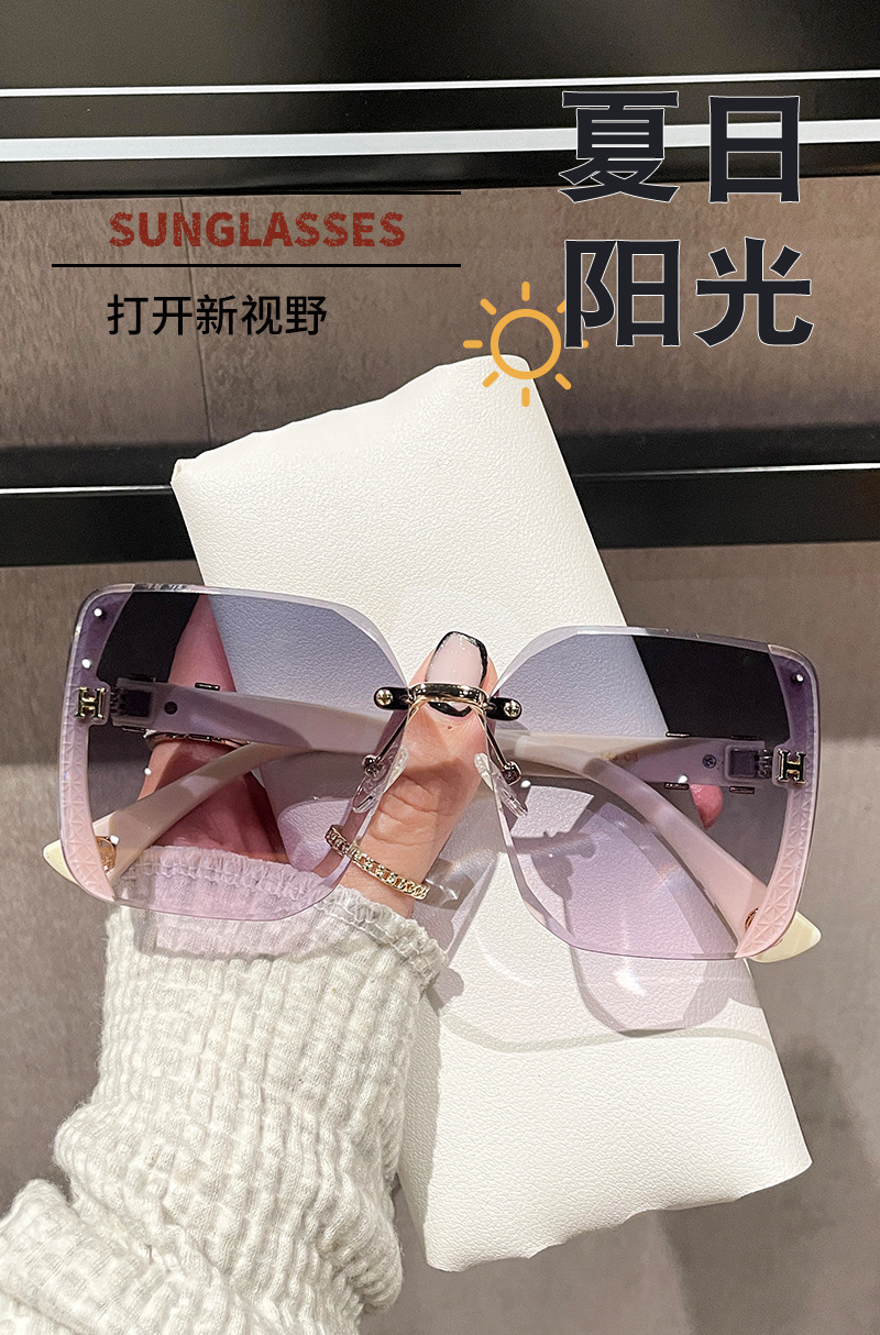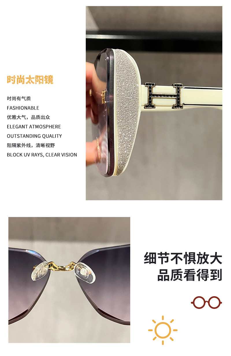 2025년 신상 무테 패션 선글라스 여성용 샤넬 스타일 라이트 럭셔리 대형 프레임 선글라스 얼굴 작아 보이는 다용도 라이브 방송 도매스토어 가기