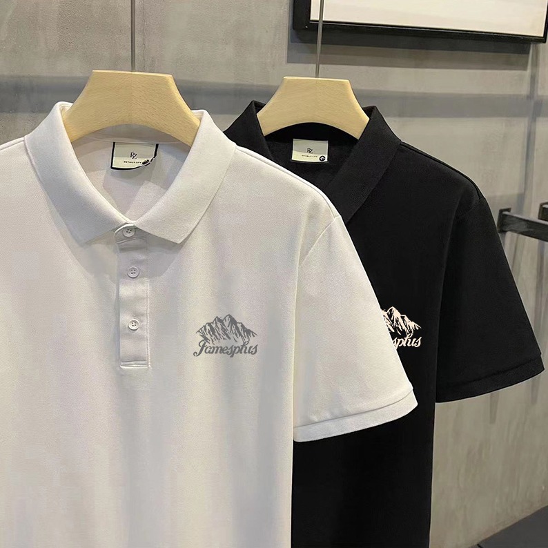 여름 남자 아이스 실크 폴로 셔츠 반팔 티셔츠 펄 코튼 패션 브랜드 청소년 반소매 남자 올 매치 옷깃 탑