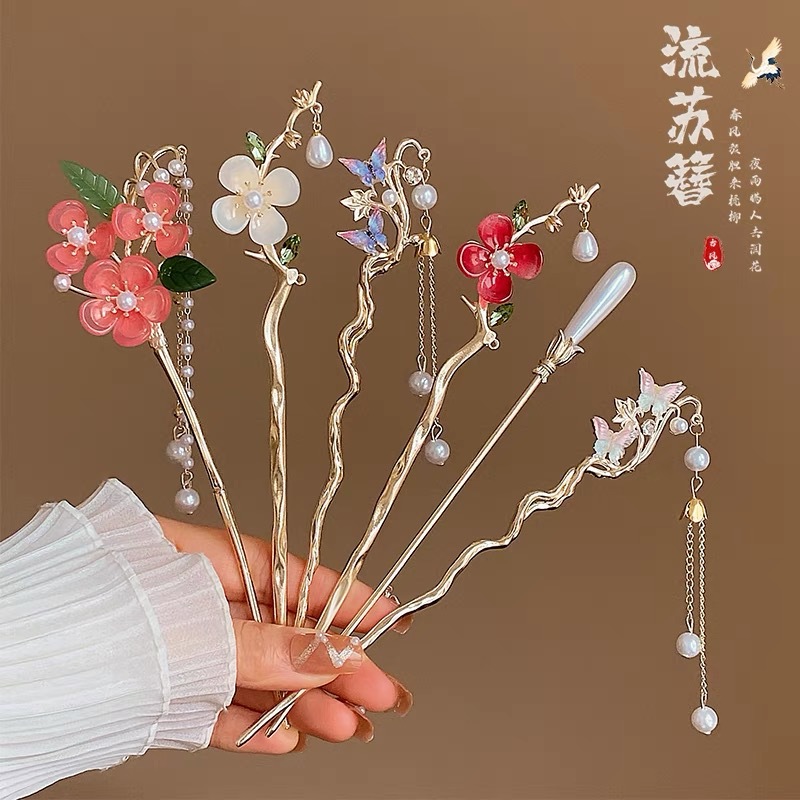 새로운 중국 스타일 꽃 헤어핀 여성용 골동품 하이 엔드 스타일 워킹 디스크 헤어 핀 헤어핀 한푸 말 얼굴 스커트 액세서리 헤드웨어스토어 가기