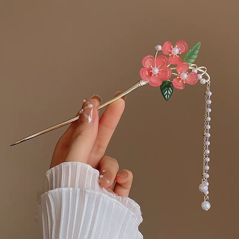 • 담홍색 진주 펜던트 머리핀