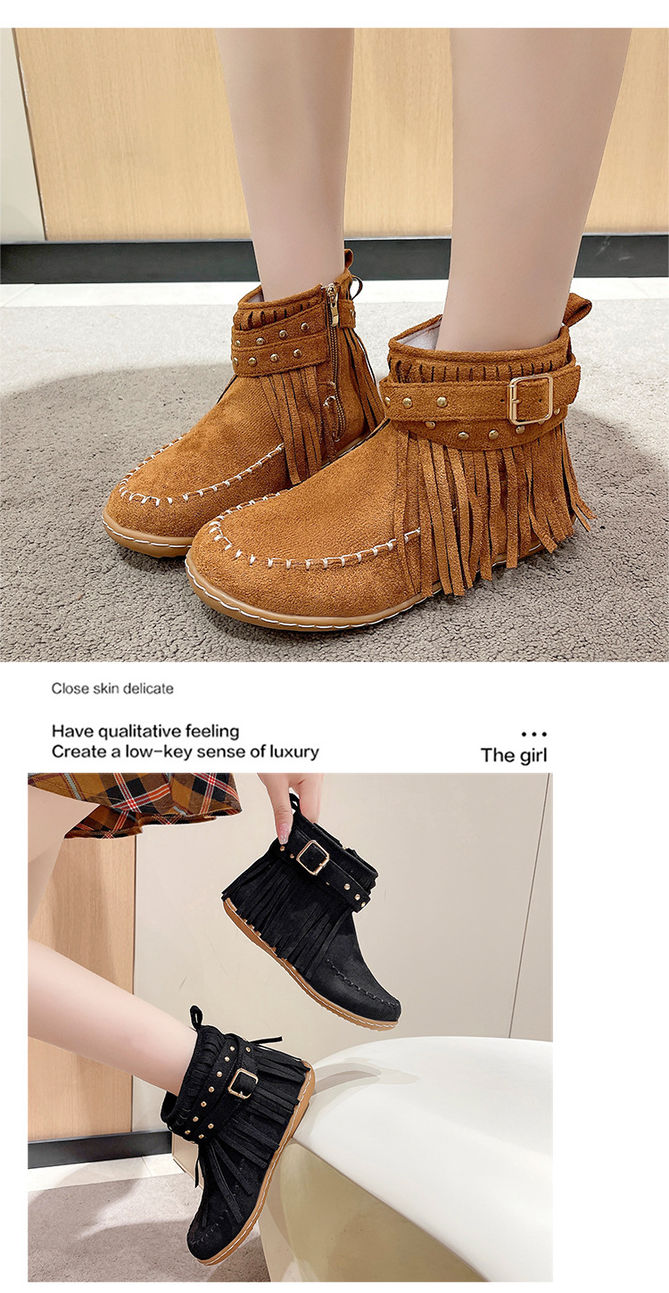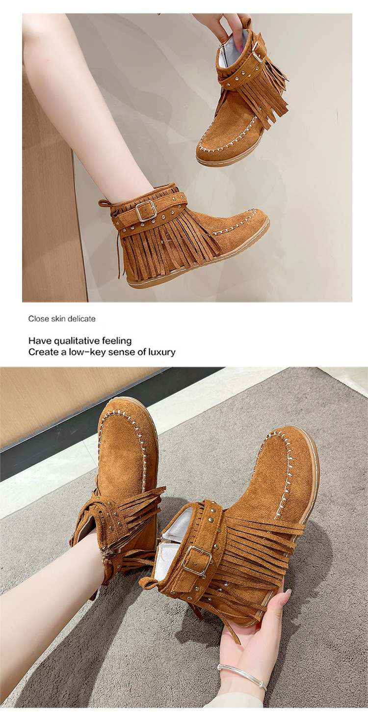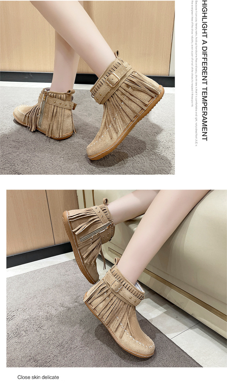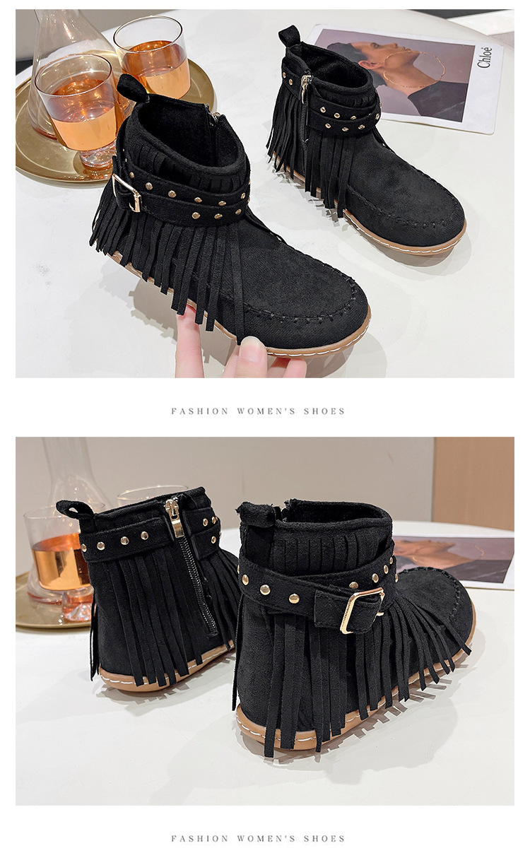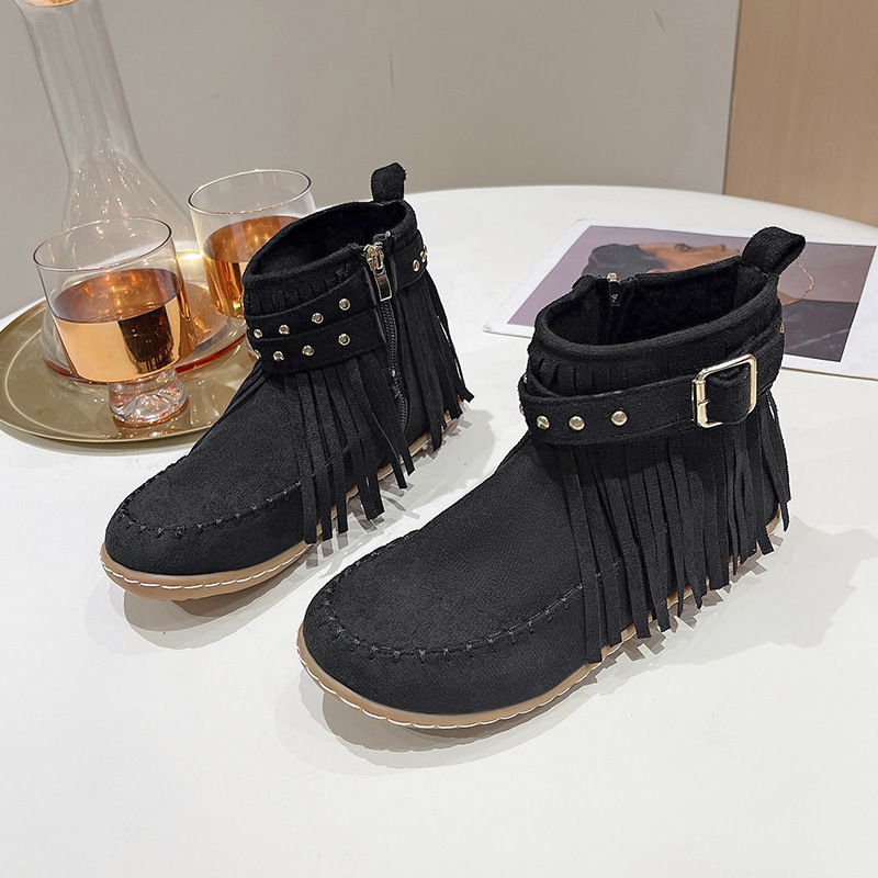 대외 무역 유럽과 미국 국경 플러스 사이즈 독립 역 헤드 라운드 플랫 바닥 술 목화 새로운 짧은 튜브 라운드 라운드 헤드 스웨이드 마틴 부츠