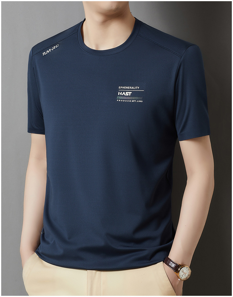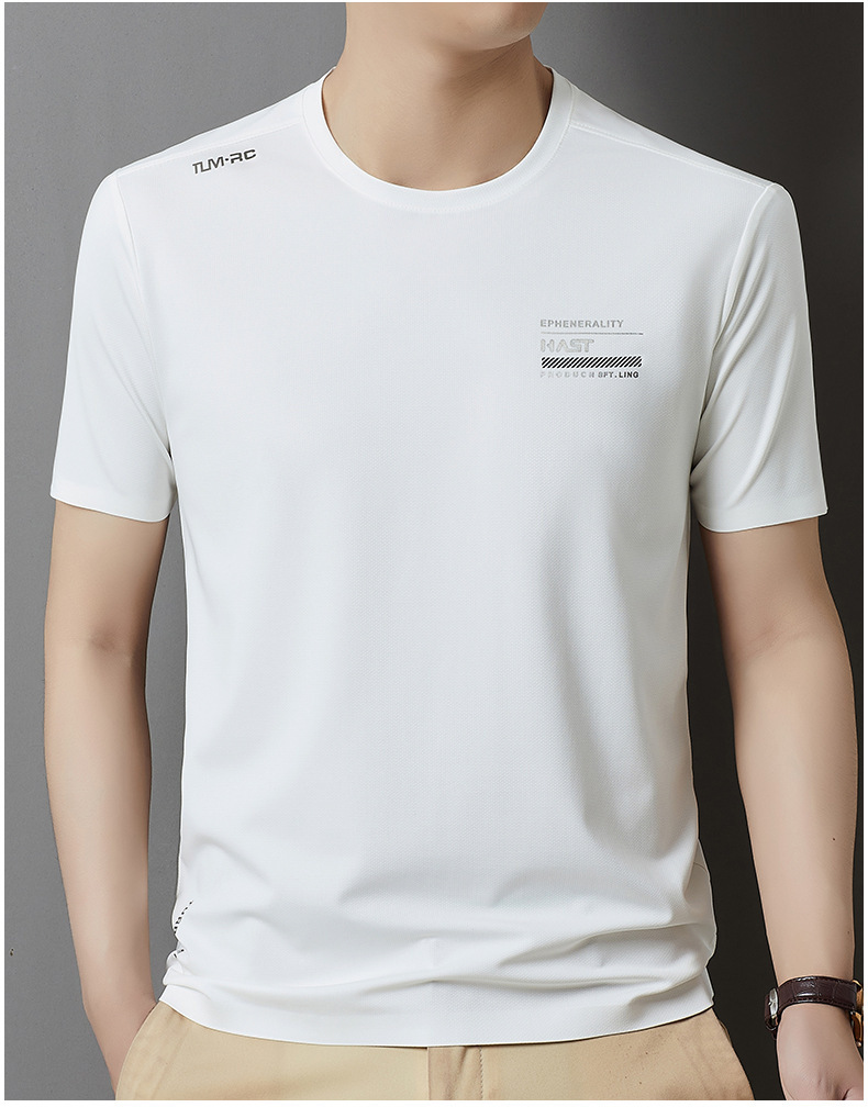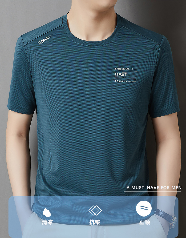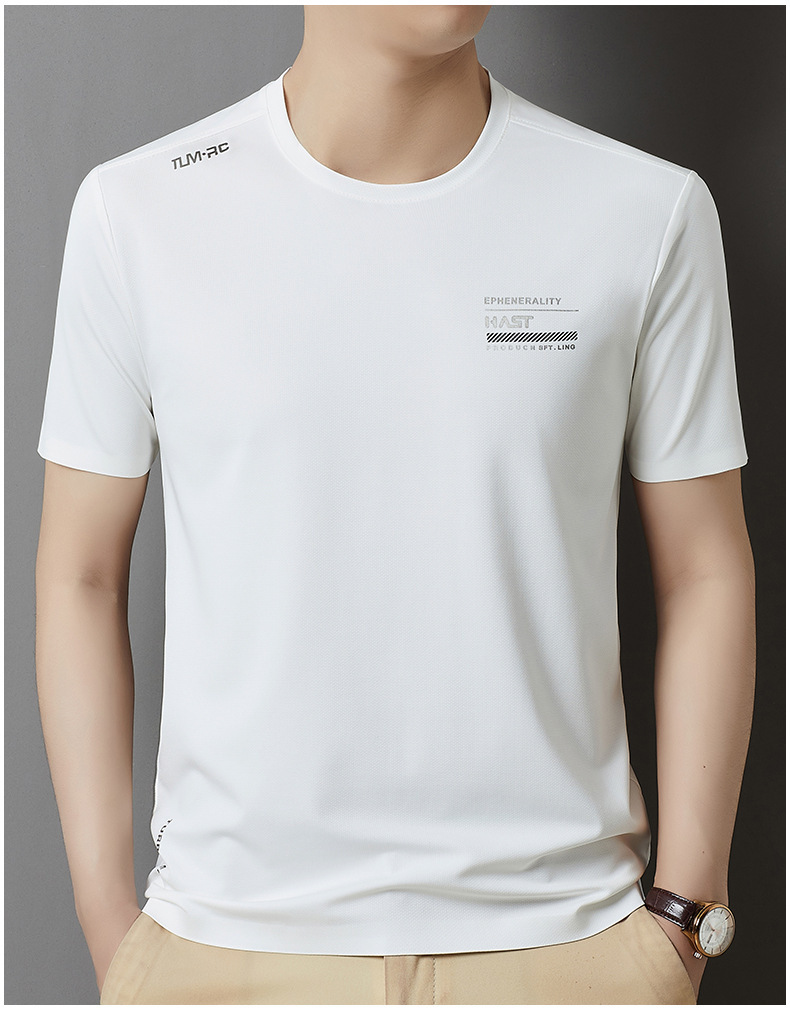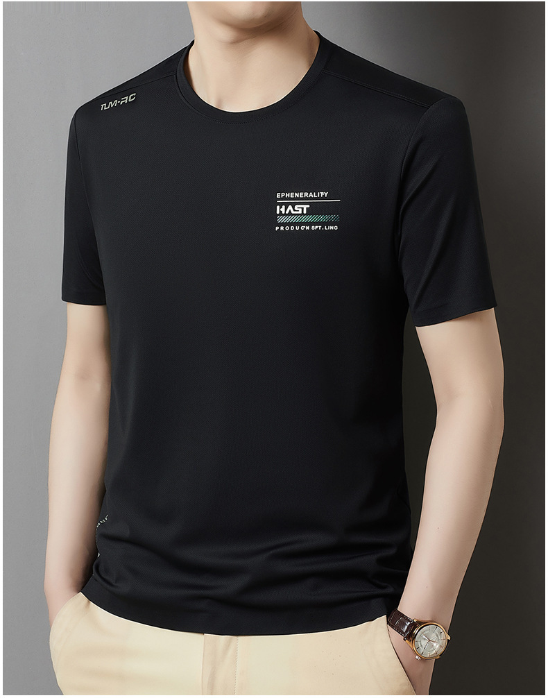 冰丝短袖T恤男士夏季圆领休闲印花上衣薄款弹力简约半袖体恤衫男