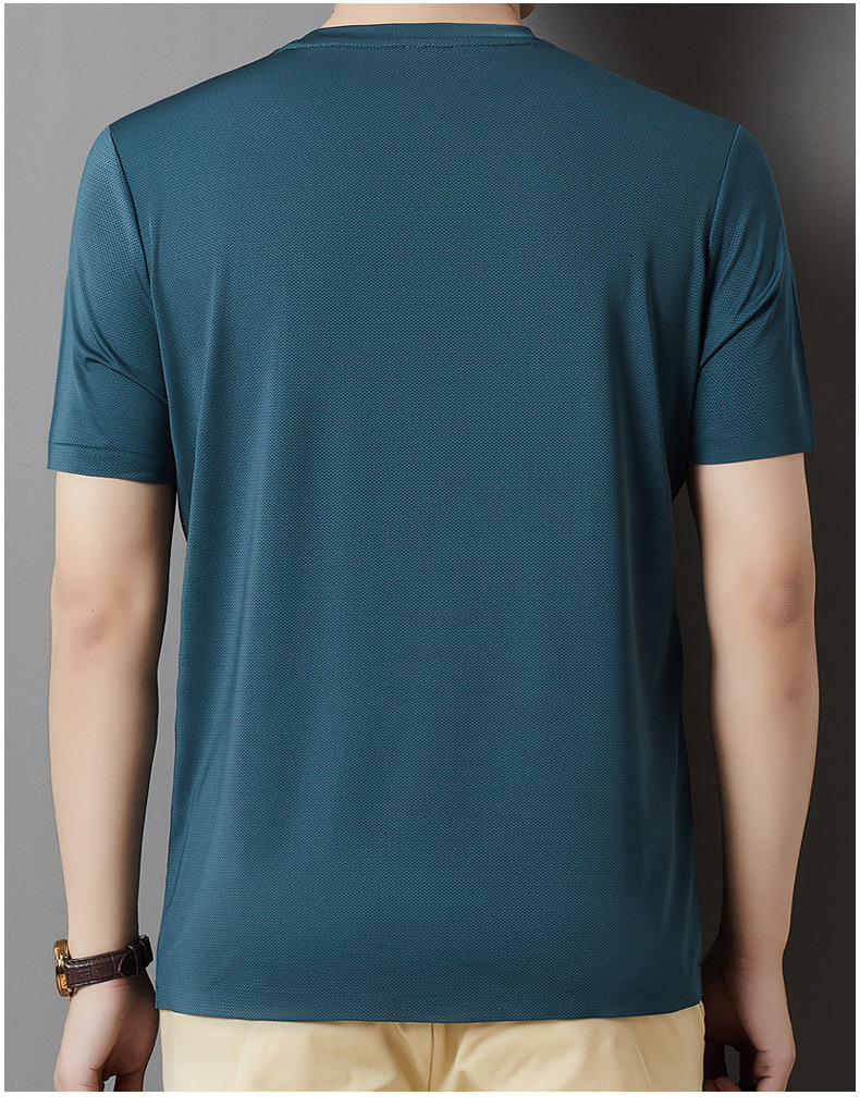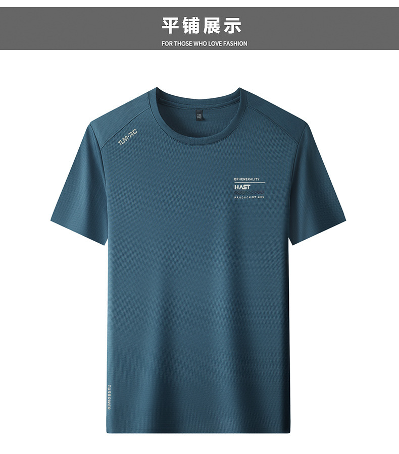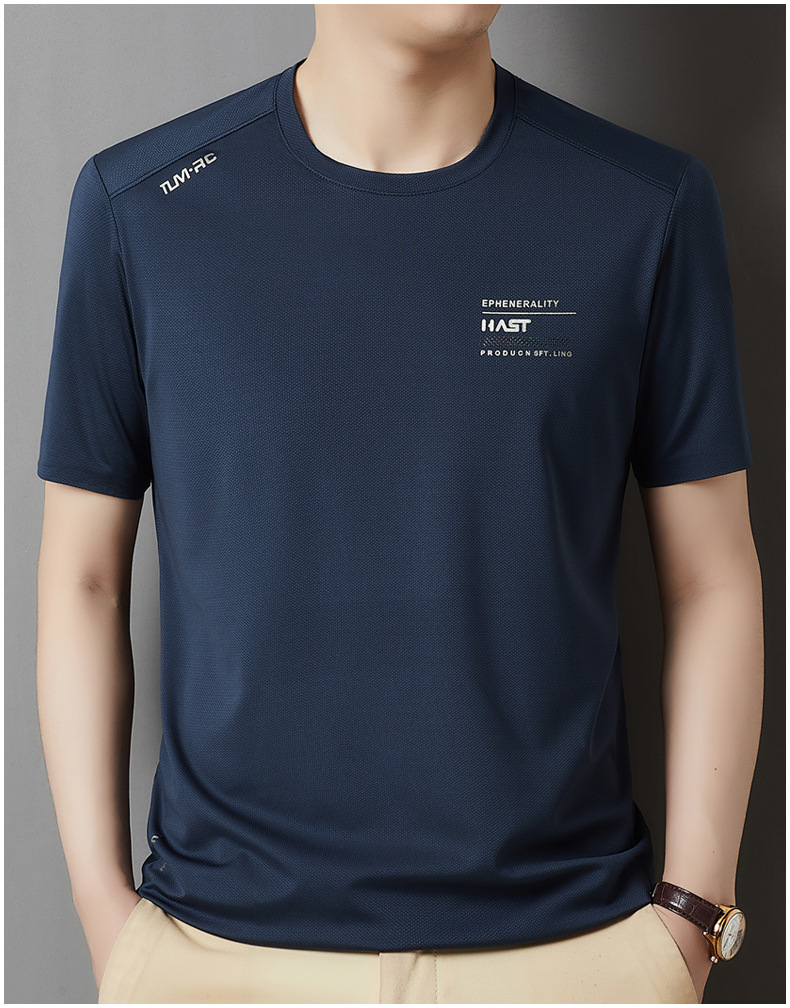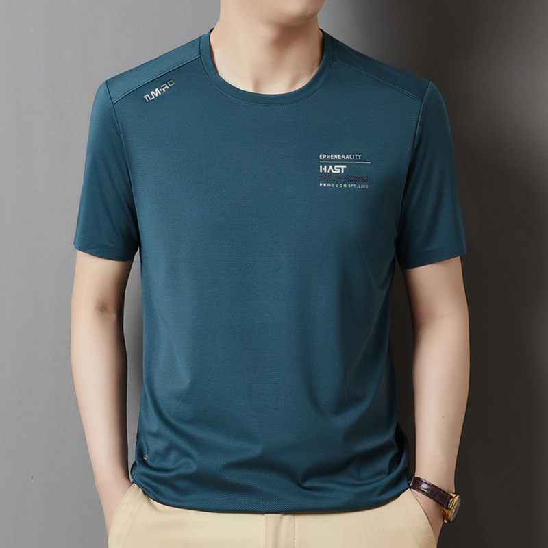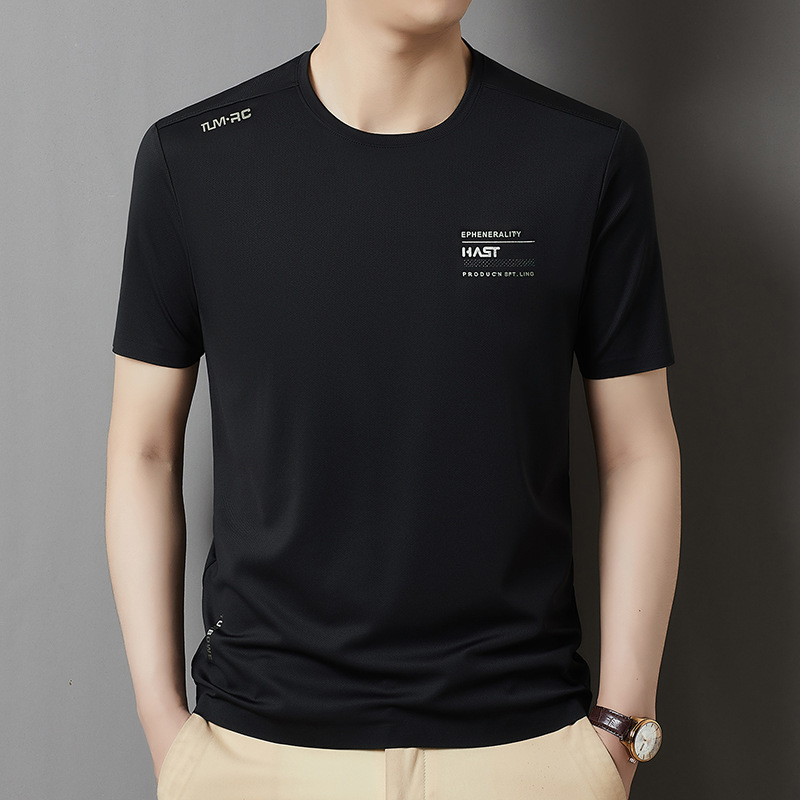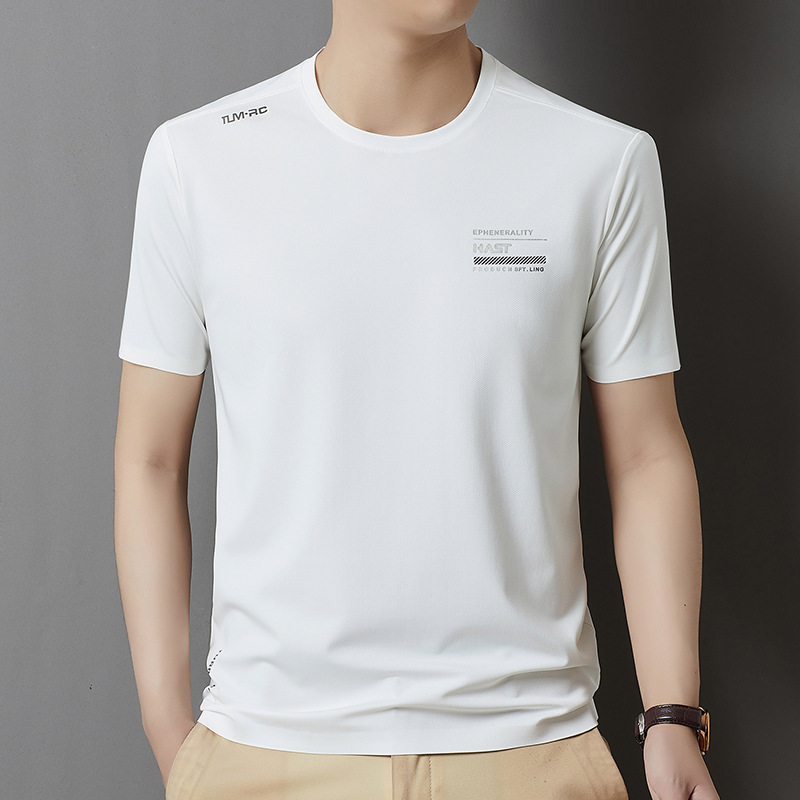 冰丝短袖T恤男士夏季圆领休闲印花上衣薄款弹力简约半袖体恤衫男