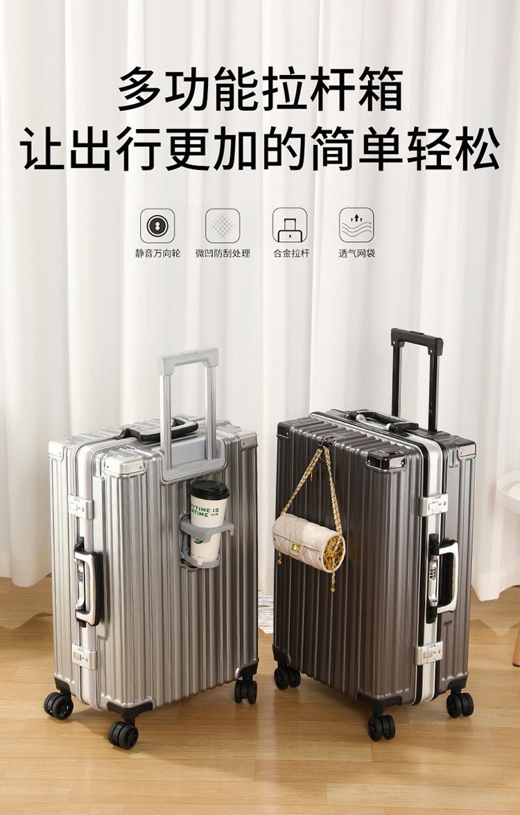 컵 홀더 수하물 케이스 암호 상자 유니버설 휠 알루미늄 프레임 24 새로운 26 가방 대용량스토어 가기