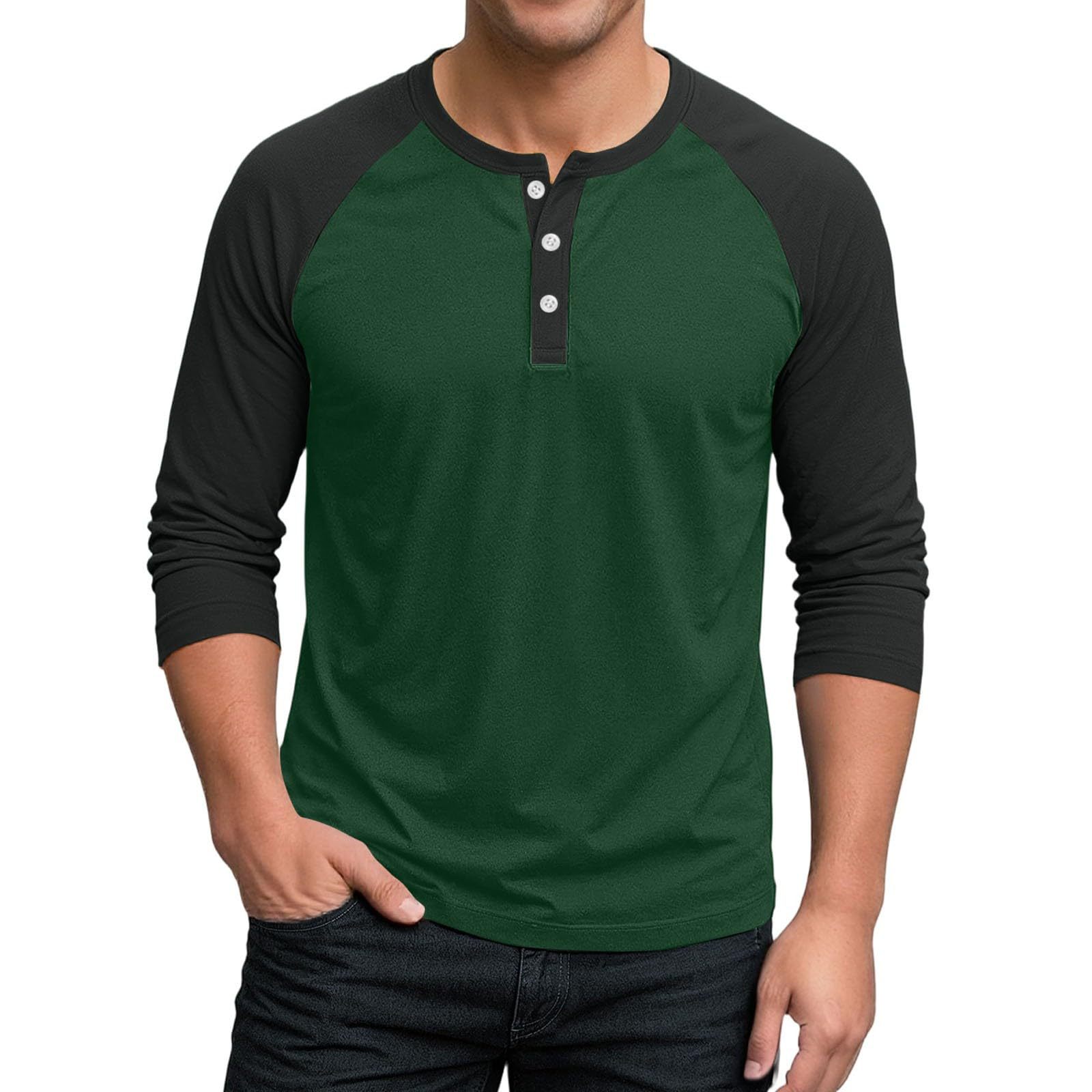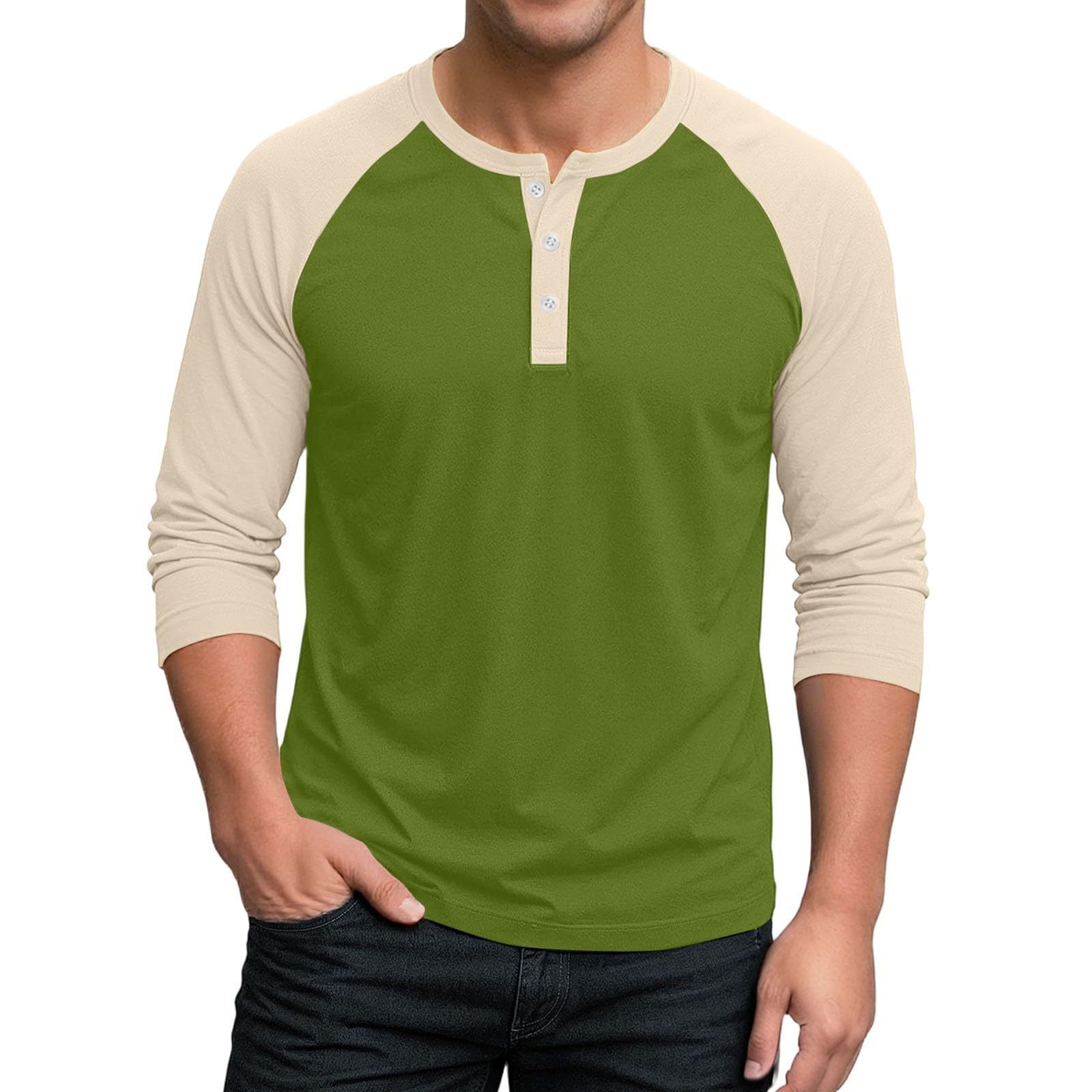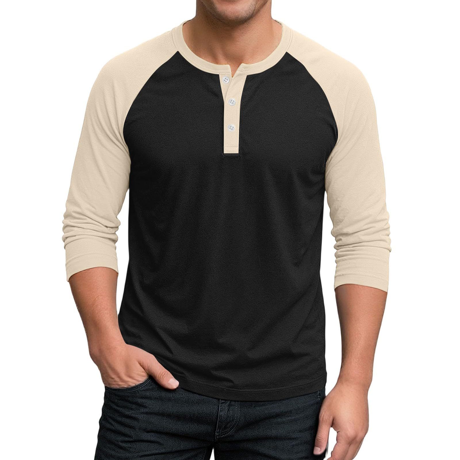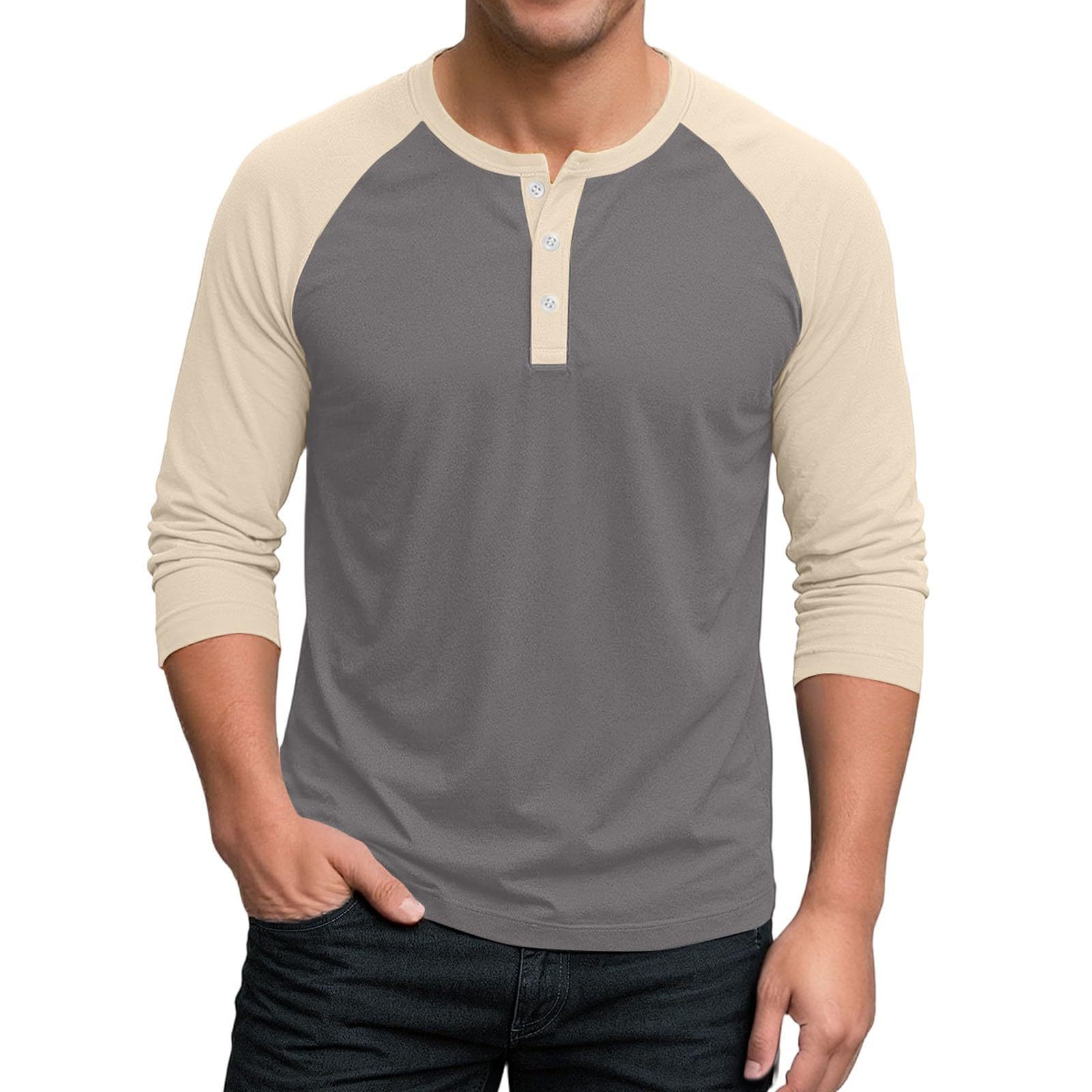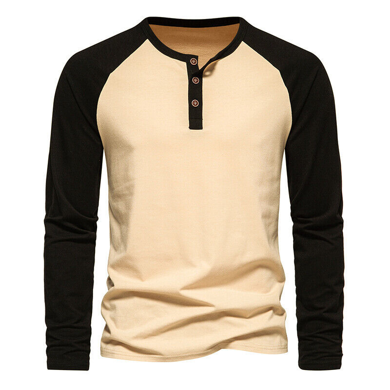 국경 간 남자 긴팔 티셔츠베이스 셔츠 컬러 매칭 3 버튼 라글란 슬리브 헨리 칼라 긴팔 티셔츠 남자 대외 무역 탑