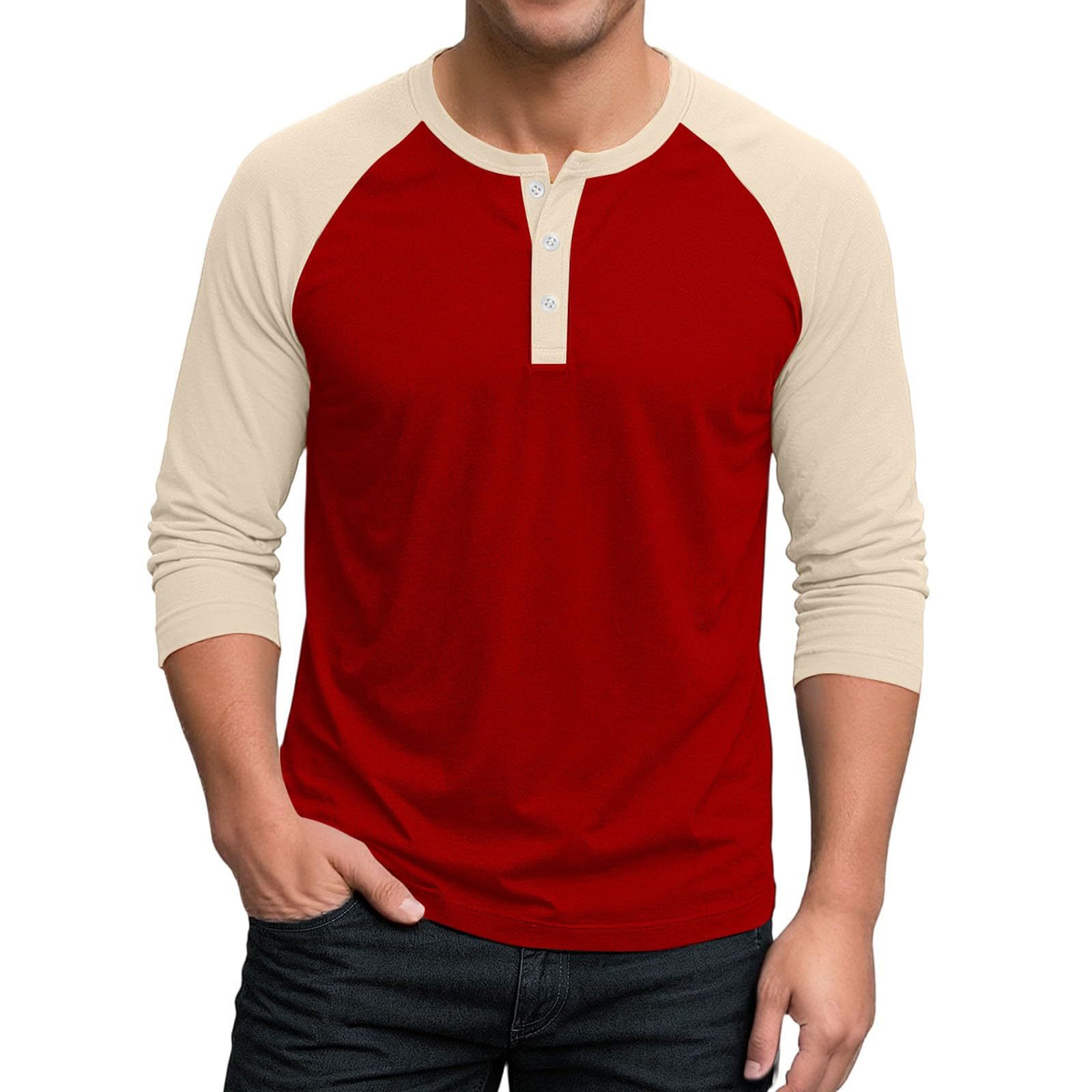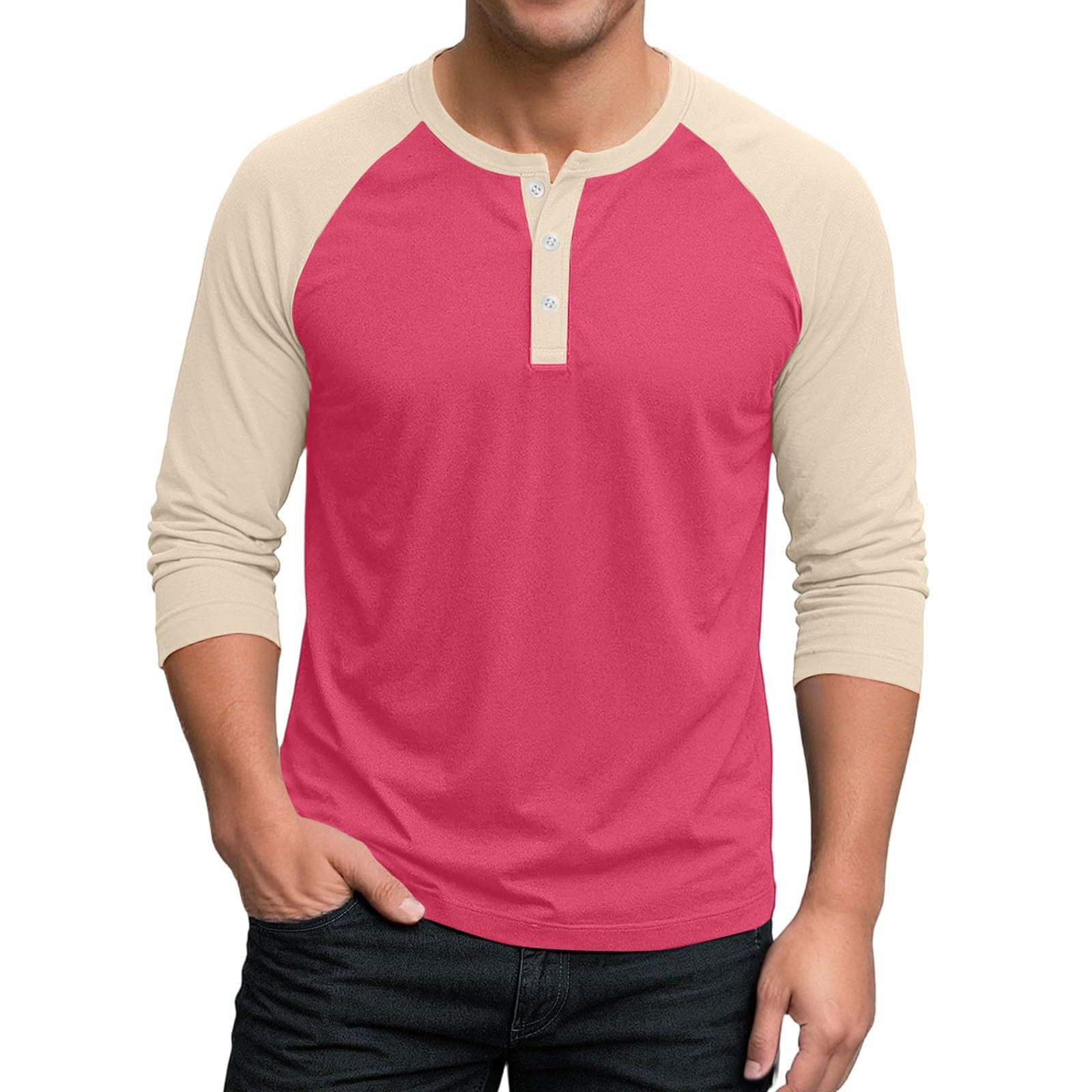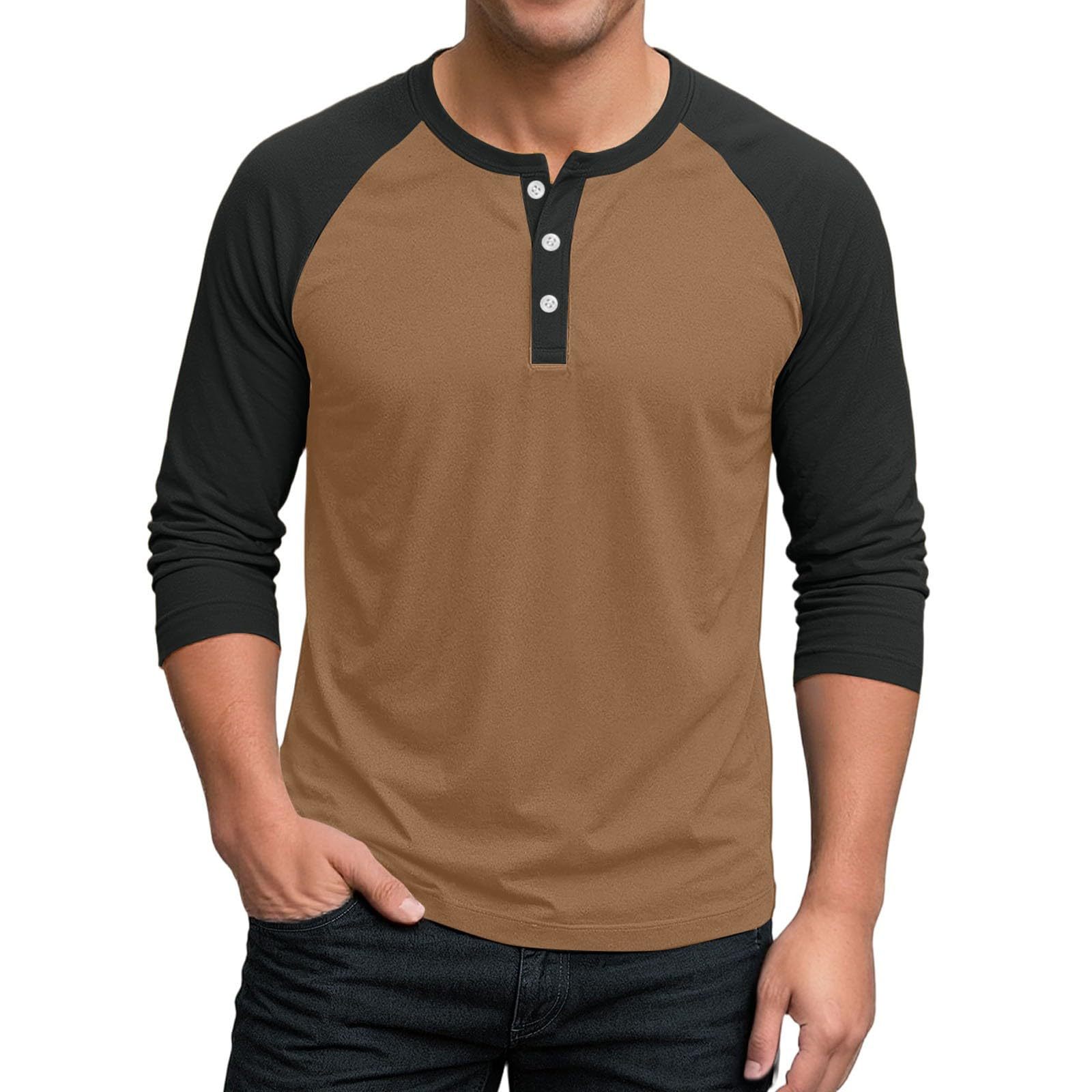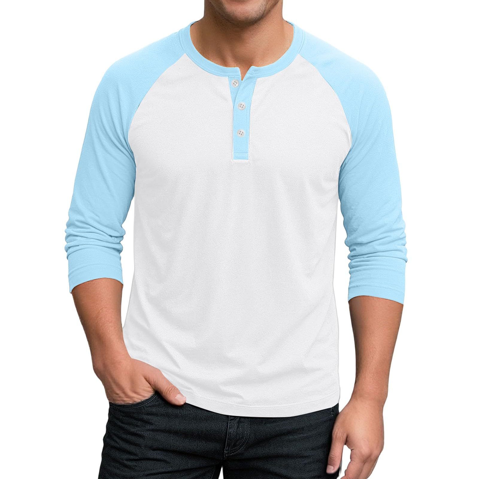 국경 간 남자 긴팔 티셔츠베이스 셔츠 컬러 매칭 3 버튼 라글란 슬리브 헨리 칼라 긴팔 티셔츠 남자 대외 무역 탑