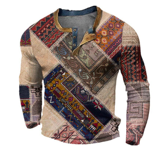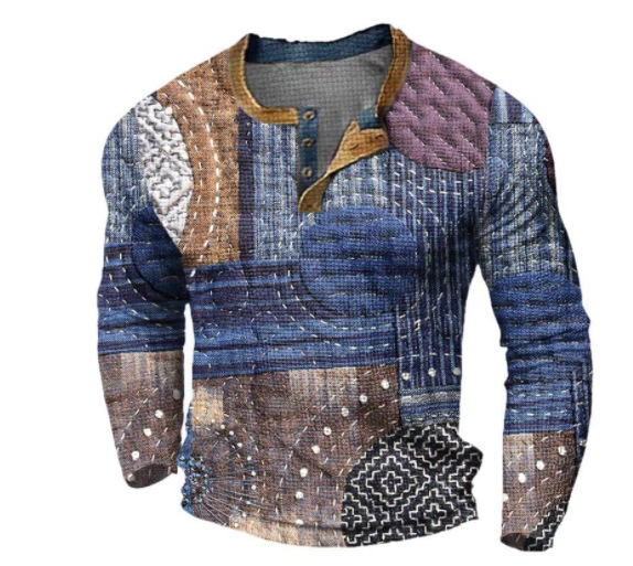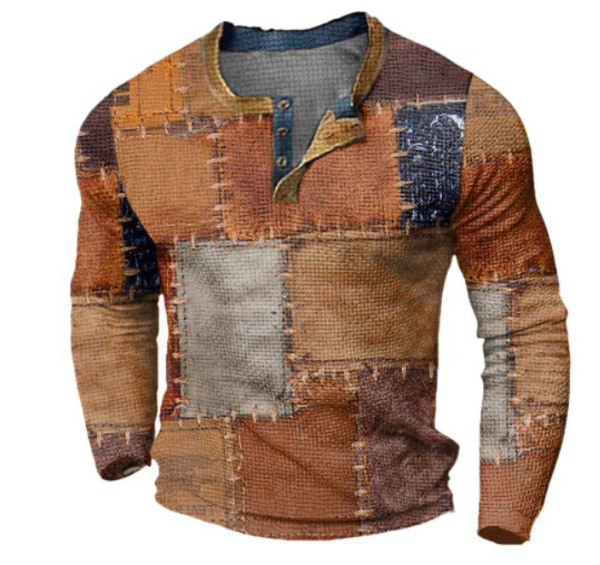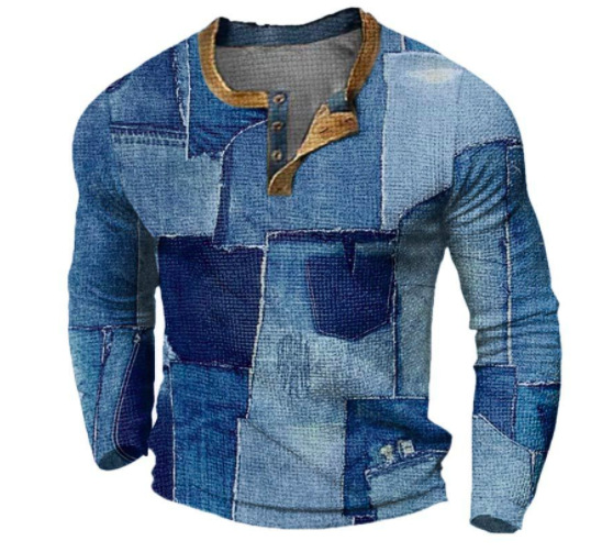 국경 간 남자 긴팔 티셔츠베이스 셔츠 컬러 매칭 3 버튼 라글란 슬리브 헨리 칼라 긴팔 티셔츠 남자 대외 무역 탑스토어 가기