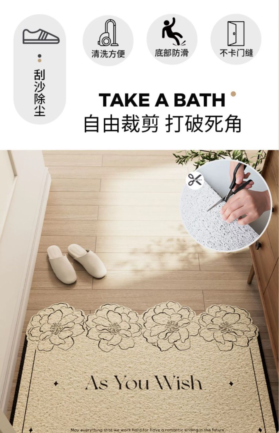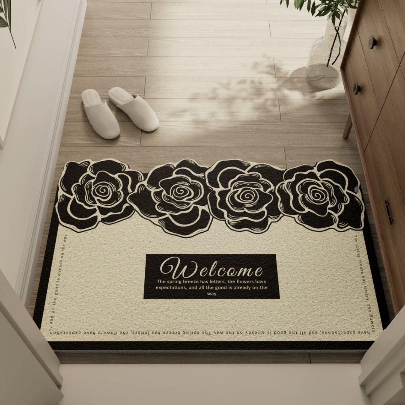 가벼운 고급 입구 실크 링 바닥 매트 입구 문 비 슬립 클리핑 발 매트 입구 문 스크래핑 진흙 고무 먼지 방지 마모 방지 바닥 매트스토어 가기