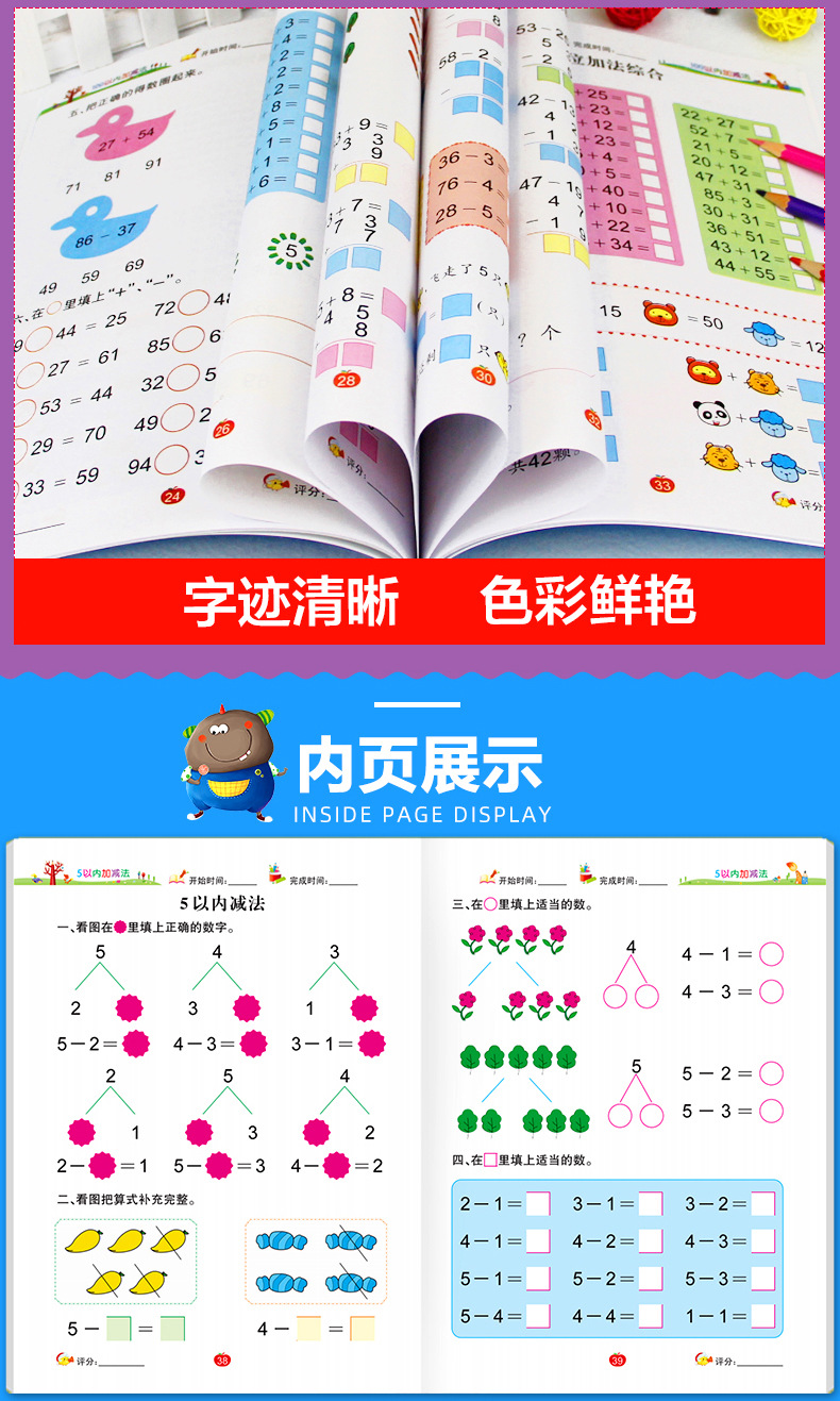 멍청한 곰 취학 전 수학 추가 및 뺄셈 운동 책 5-100 이내스토어 가기